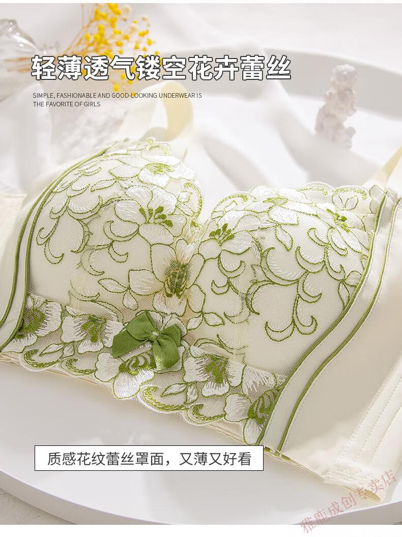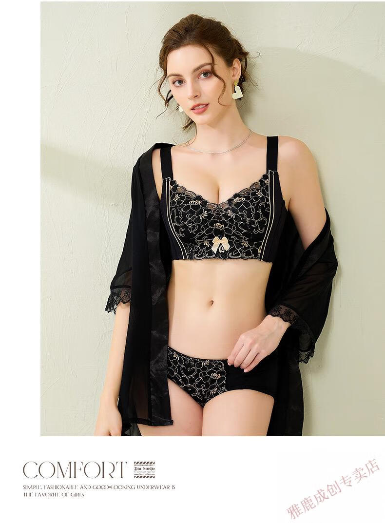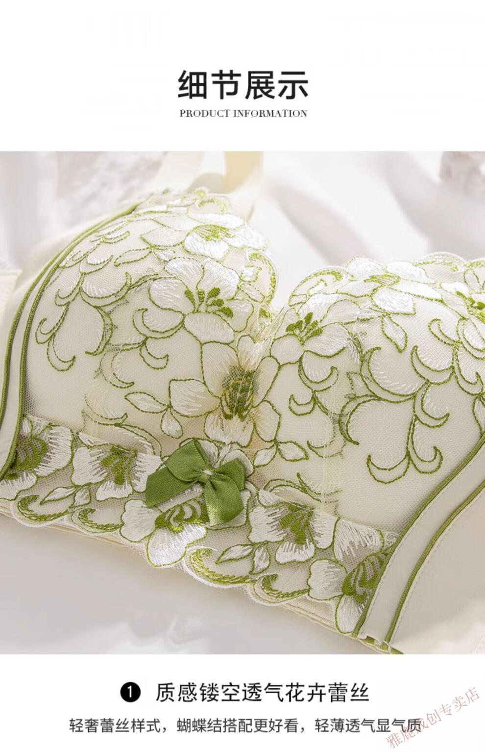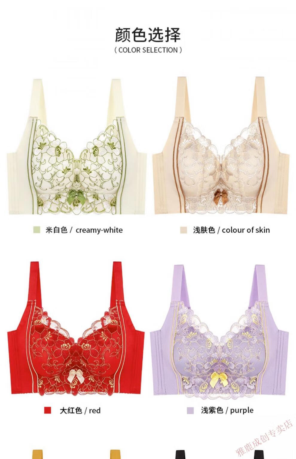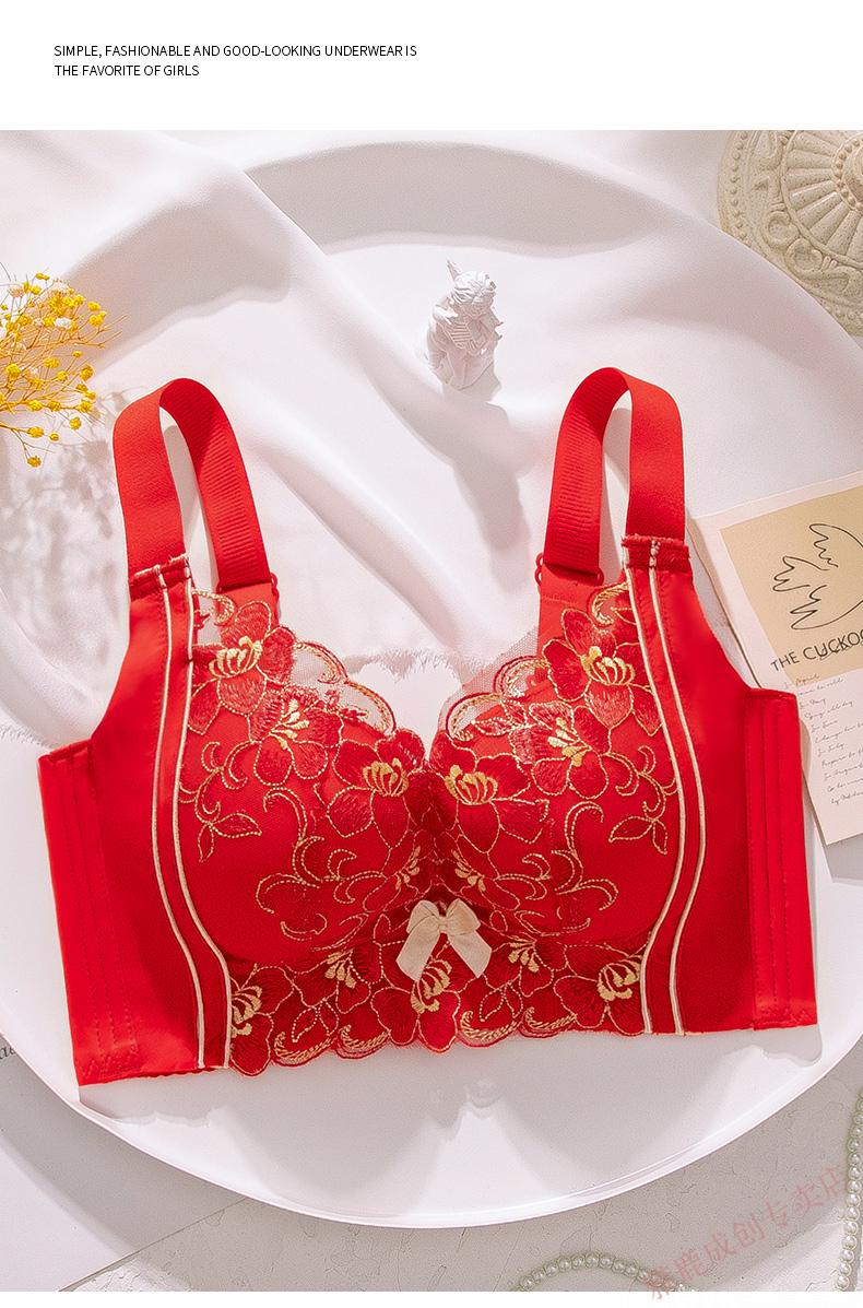 Yalu animal year bra set small breast push-up thick style auxiliary breasts without steel ring thick embroidery red bra set set red 90A 40