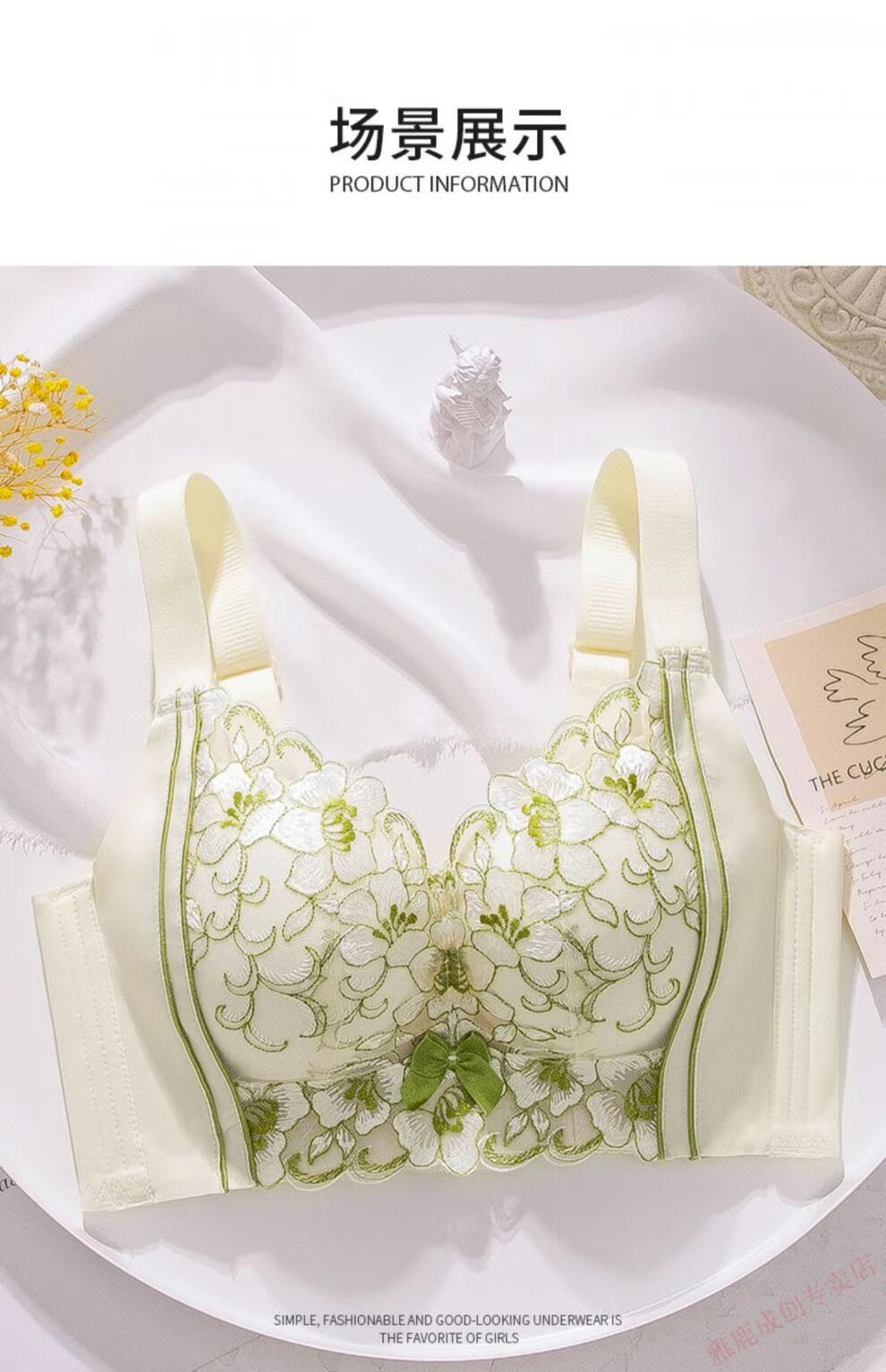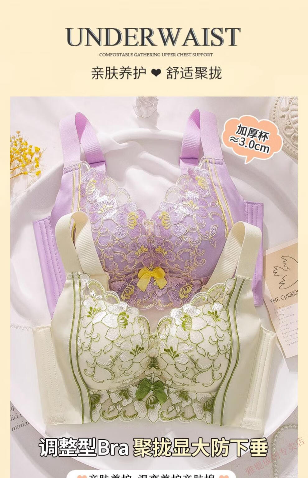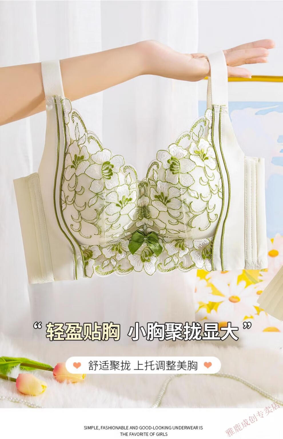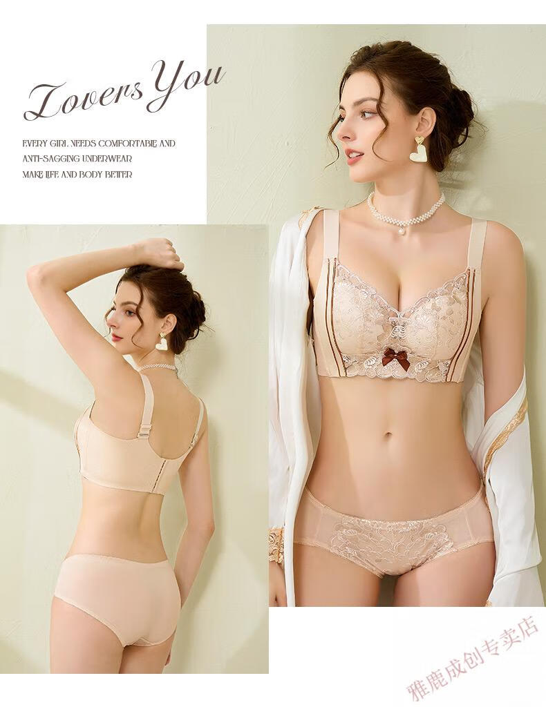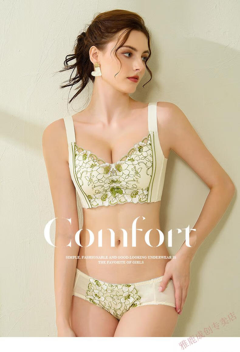 Yalu animal year bra set small breast push-up thick style auxiliary breasts without steel ring thick embroidery red bra set set red 90A 40