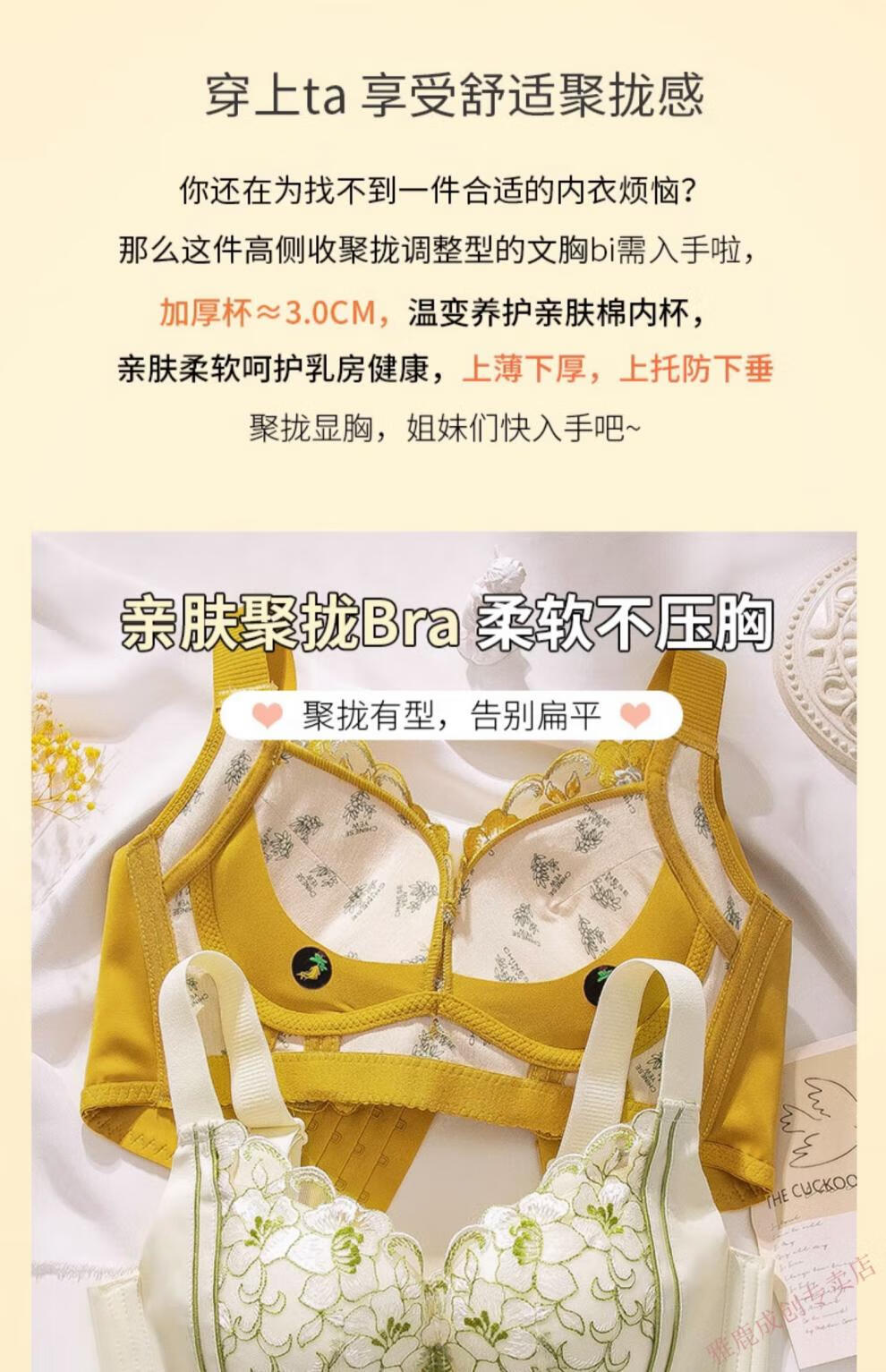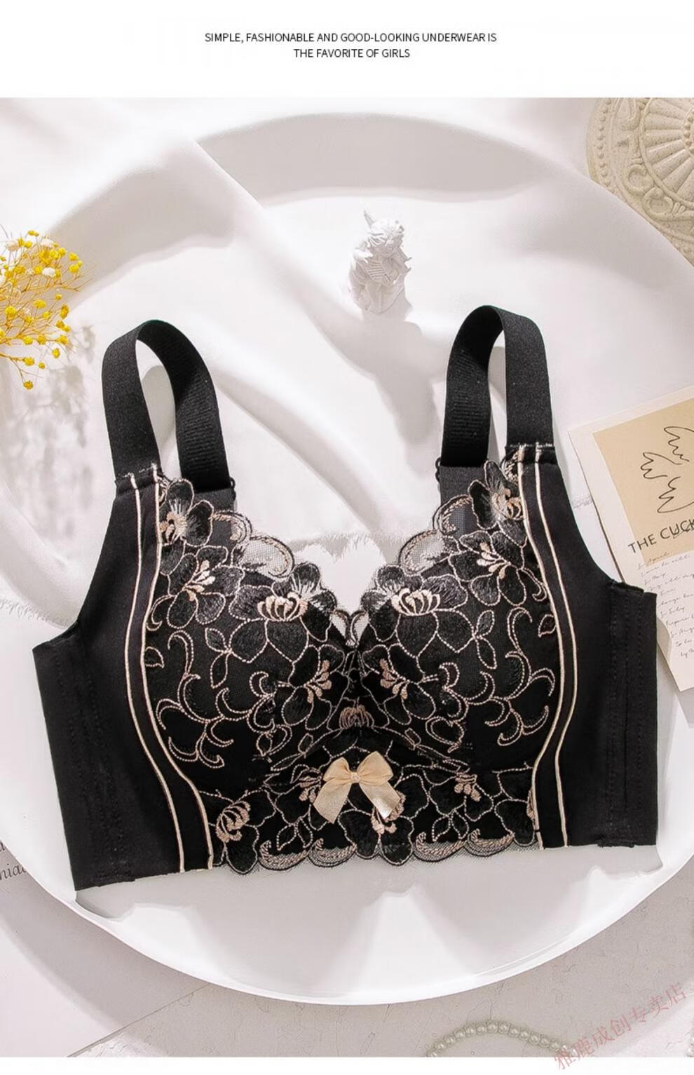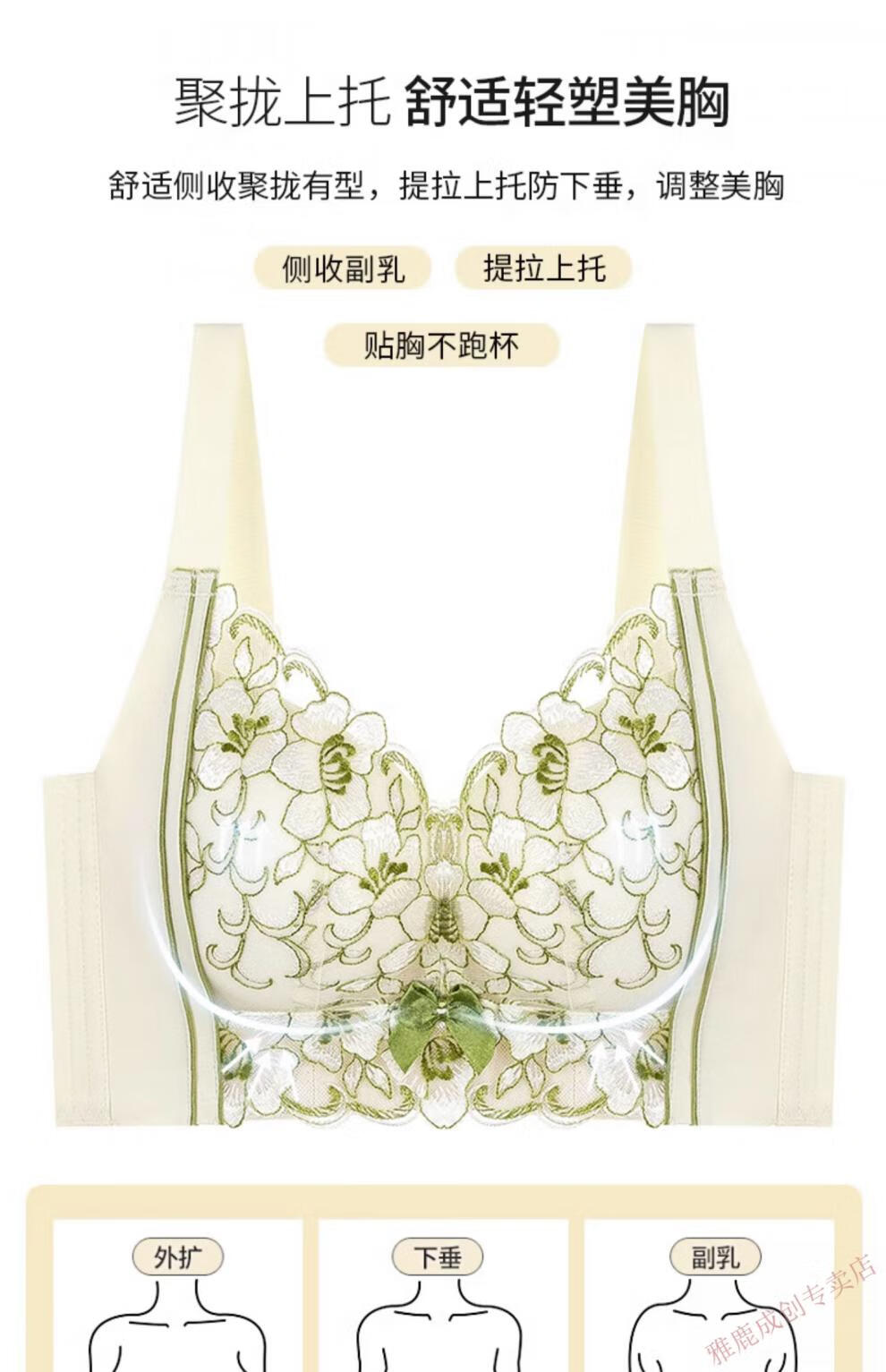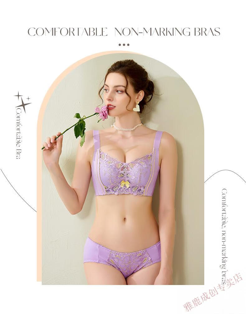 Yalu animal year bra set small breast push-up thick style auxiliary breasts without steel ring thick embroidery red bra set set red 90A 40
