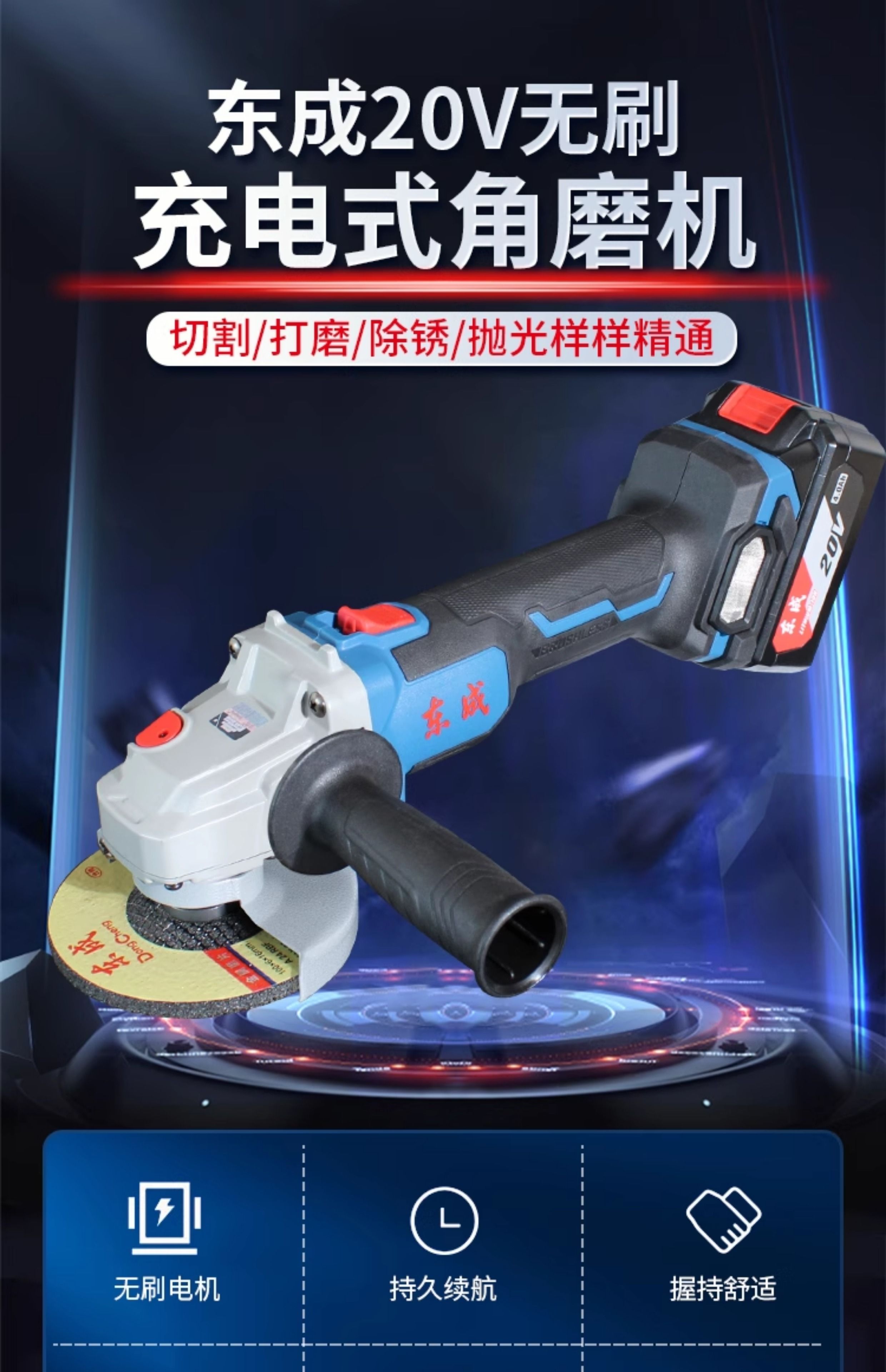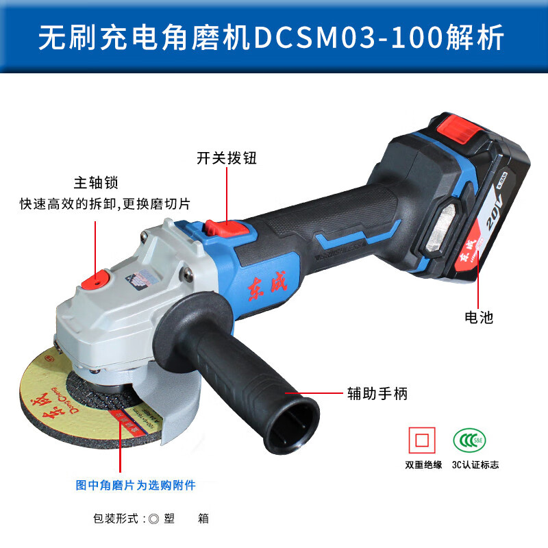 Dongcheng lithium battery angle grinder brushless rechargeable grinder multi-function electric cutting and polishing machine Dongcheng angle grinder 03-100 classic 6.0Ah two batteries + saw blade gift pack