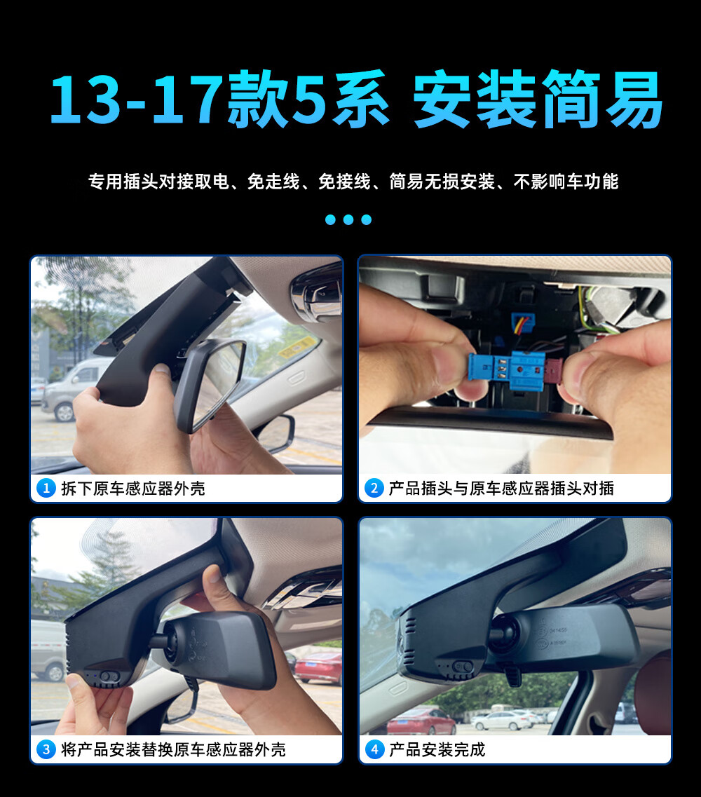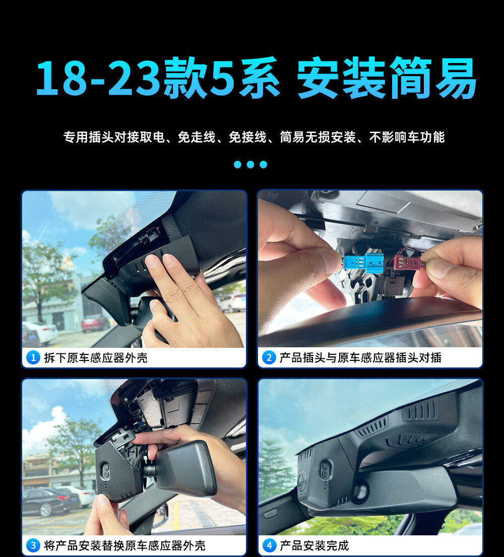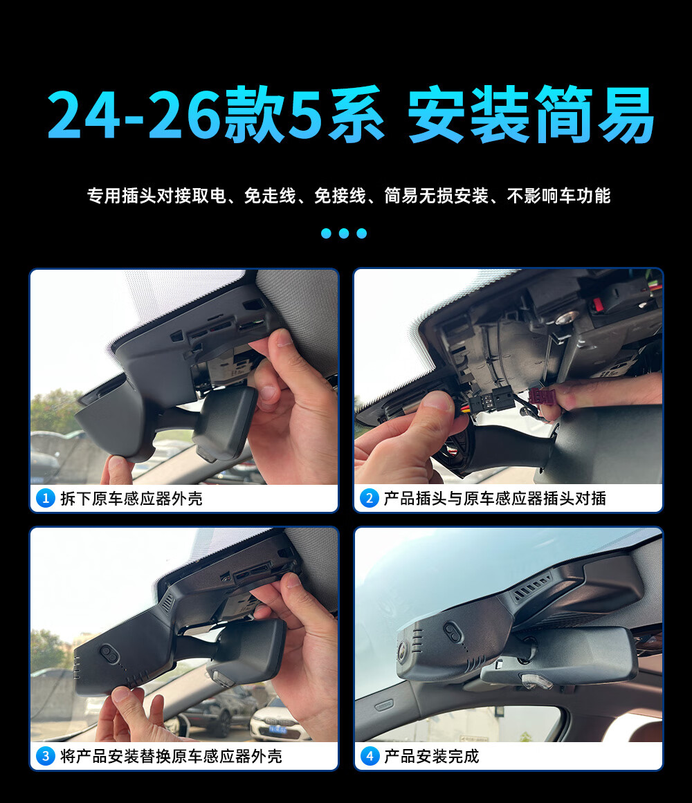 Lingzhou BMW 5 Series Driving Recorder Special Wire-Free BMW 530/525 Five Series Ultra-clear Night Vision Original Hidden Type 24-26 BMW 5 Series Special/Black (Single Lens) 1944P 3K + No Card