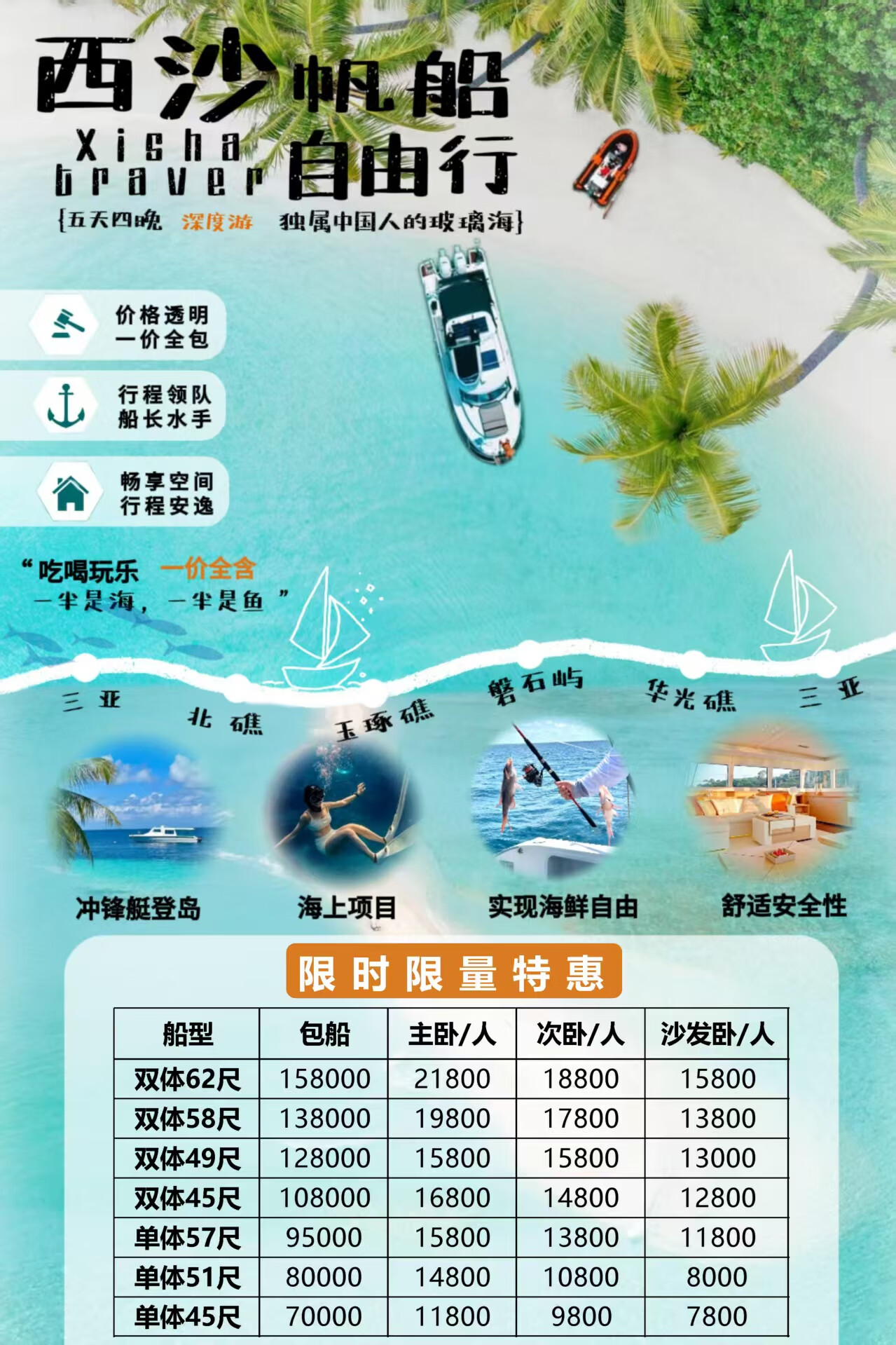 Sanya Xisha sailing trip + five days and four nights + all-inclusive + niche exploration French Lagoon 450 sofa with a deposit reserved for adults