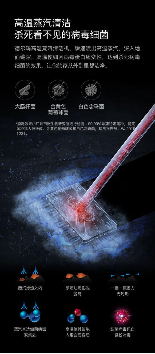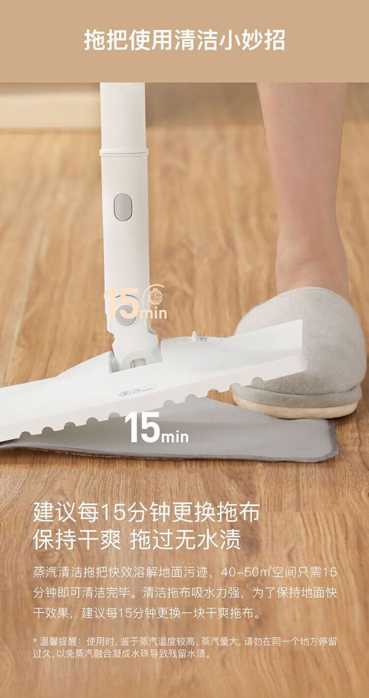 Deerma steam mop floor mop household electric mop high temperature steam cleaning machine kitchen cleaning ZQ610 Deerma steam mop floor mop household electric mop high temperature