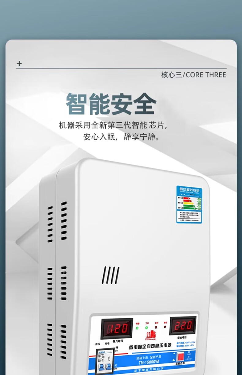 Jiabao Zhengniu voltage regulator 220V fully automatic household 15000W high power low voltage air conditioning voltage regulator 15kw 6800W with wall mount