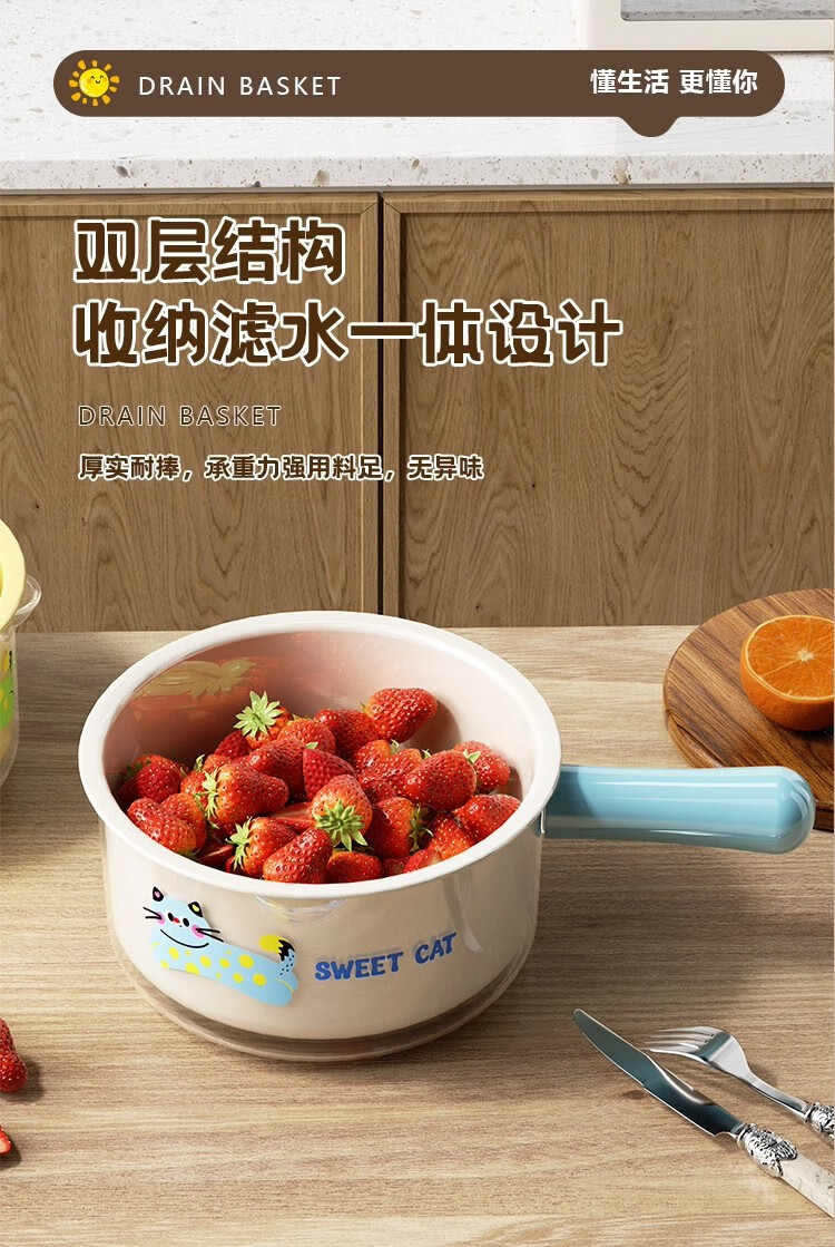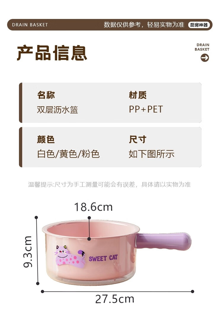 OEING German double-layer drain basket thickened kitchen drain basket water ladle washing basket washing basket drain double-layer design white double-layer quick drain丨preferred material strong and durable