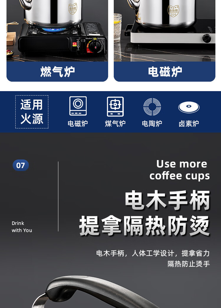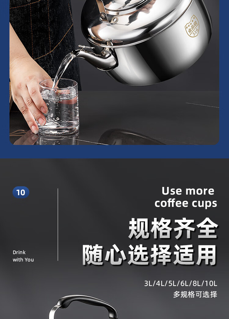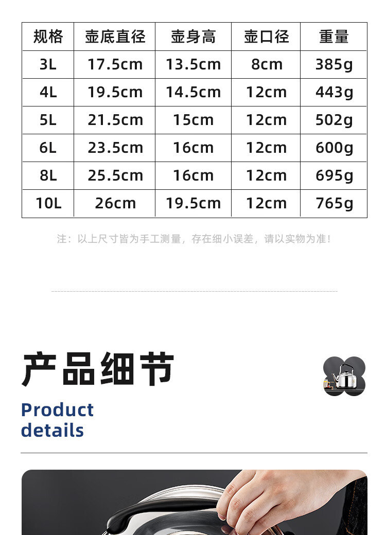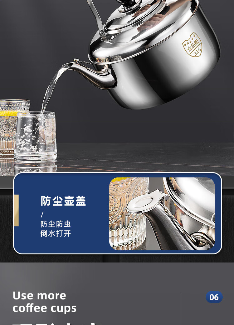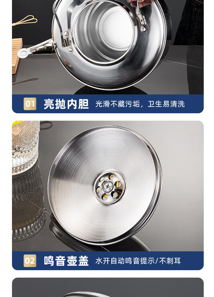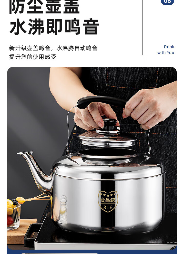 Qilicai 316 stainless steel kettle Mingyin household large kettle hot water kettle gas gas induction cooker durable 316 huge thick kettle enhanced version 3L