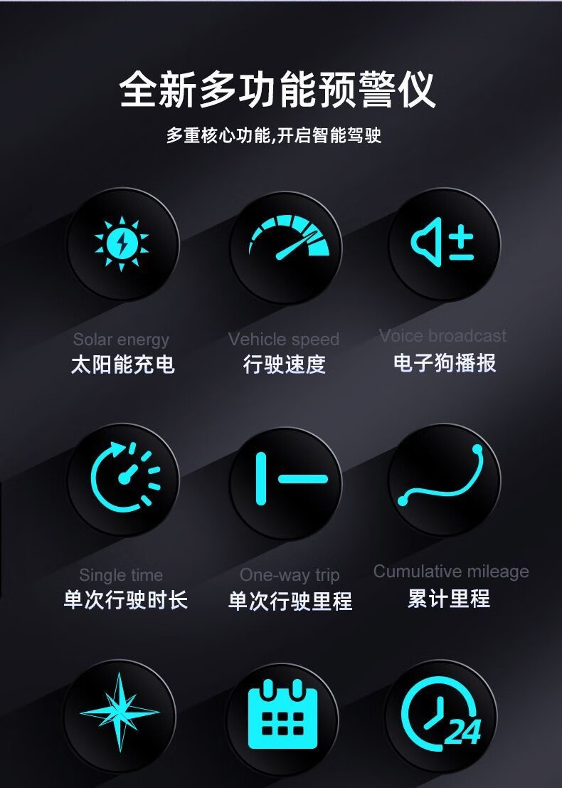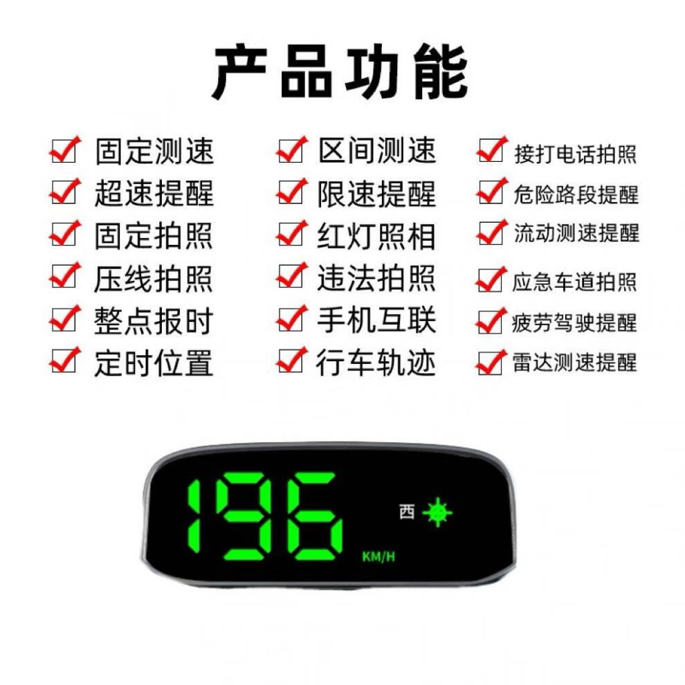 Car Driving Recorder Radar Speed Measurement Solar Car Safety Warning Instrument Audio-visual Navigation Machine Traffic Light Beidou GPS Dual Mode Colorful HUD Safety Warning Instrument