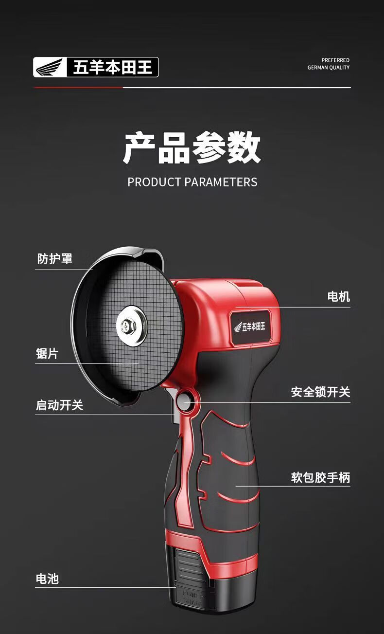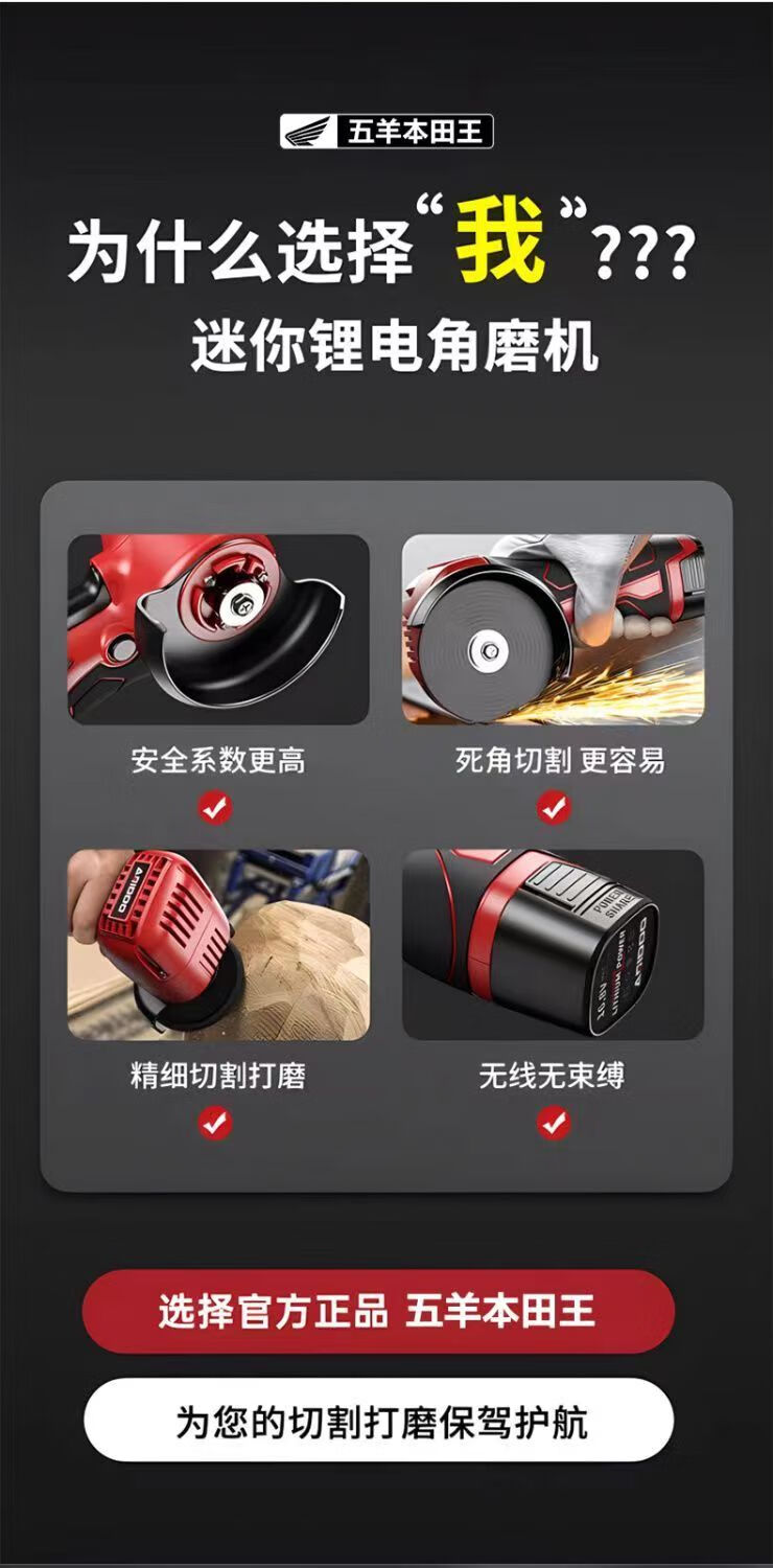 Yusenyi mini brushless angle grinder lithium battery rechargeable grinder grinder multi-functional small hand grinder angle grinder household classic model one battery one charge imported from Japan Wuyang Honda King high power