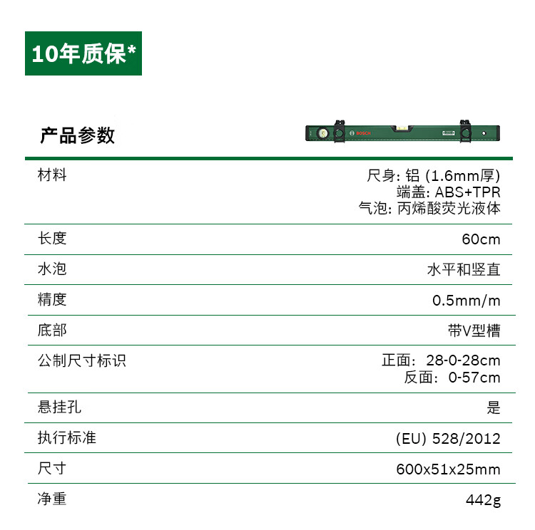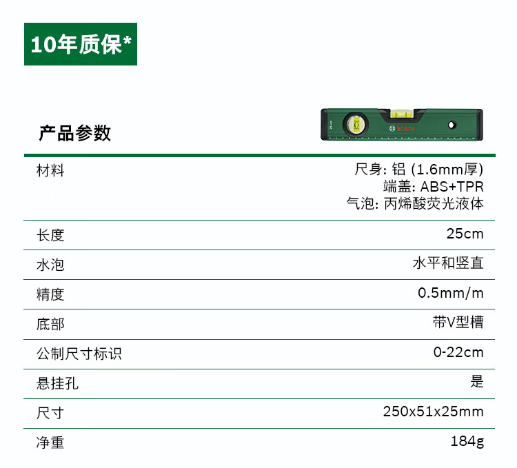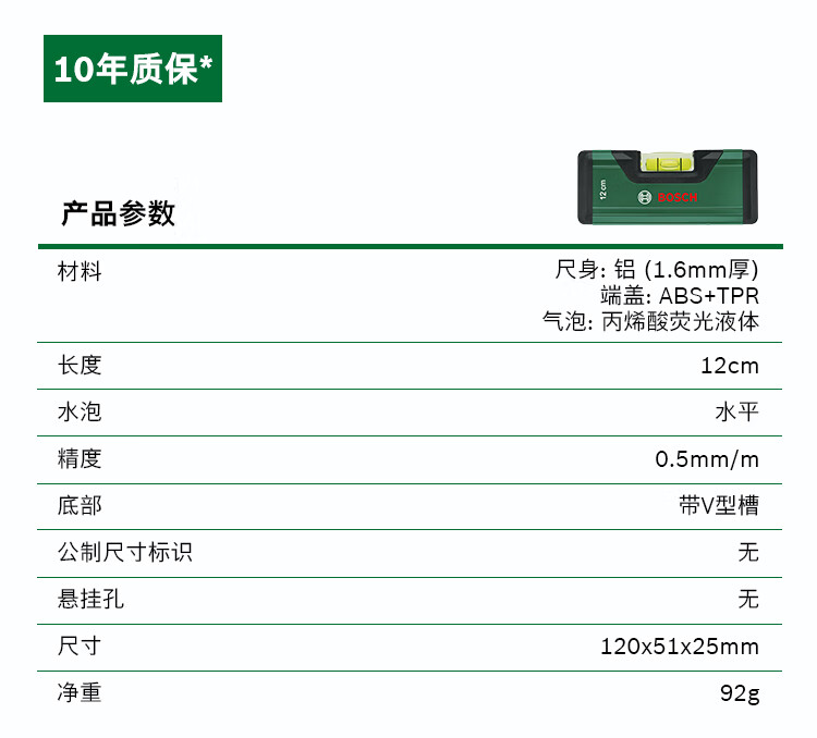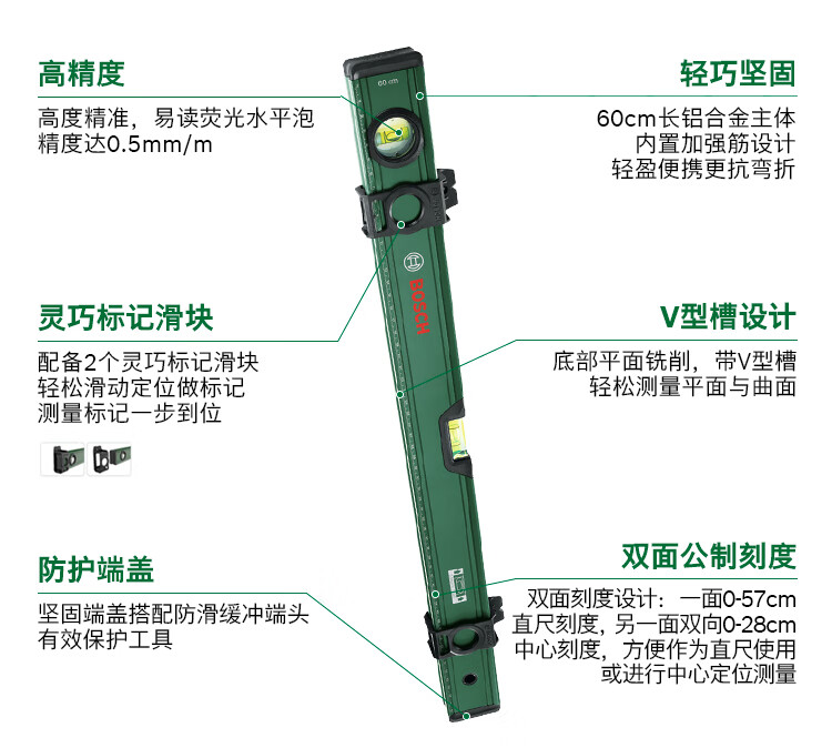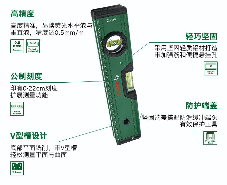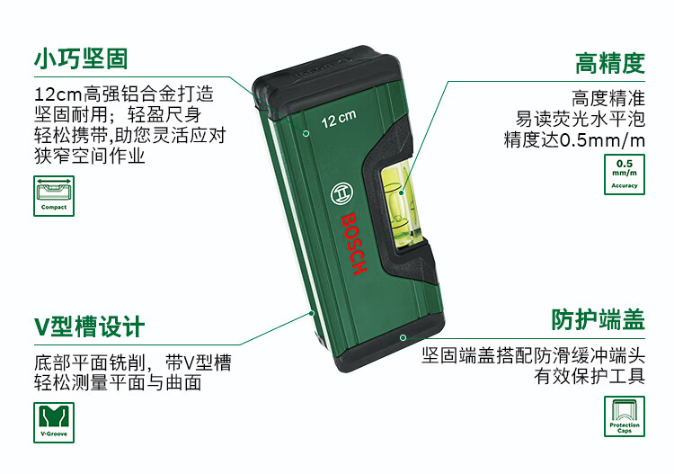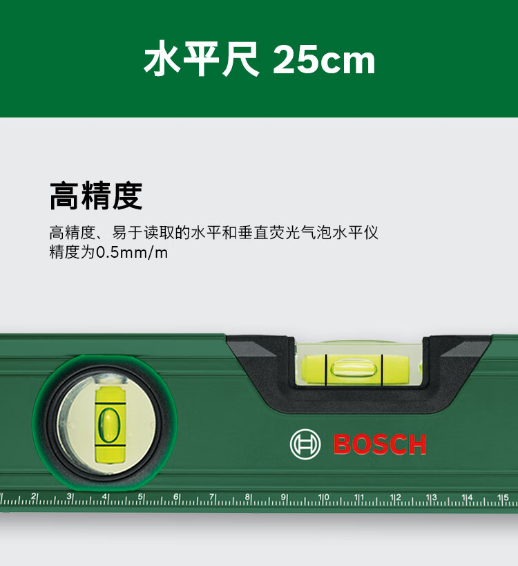 Bosch (BOSCH) level high-precision tilt angle balancer fan small tool aluminum alloy measuring ruler bubble level level 12cm