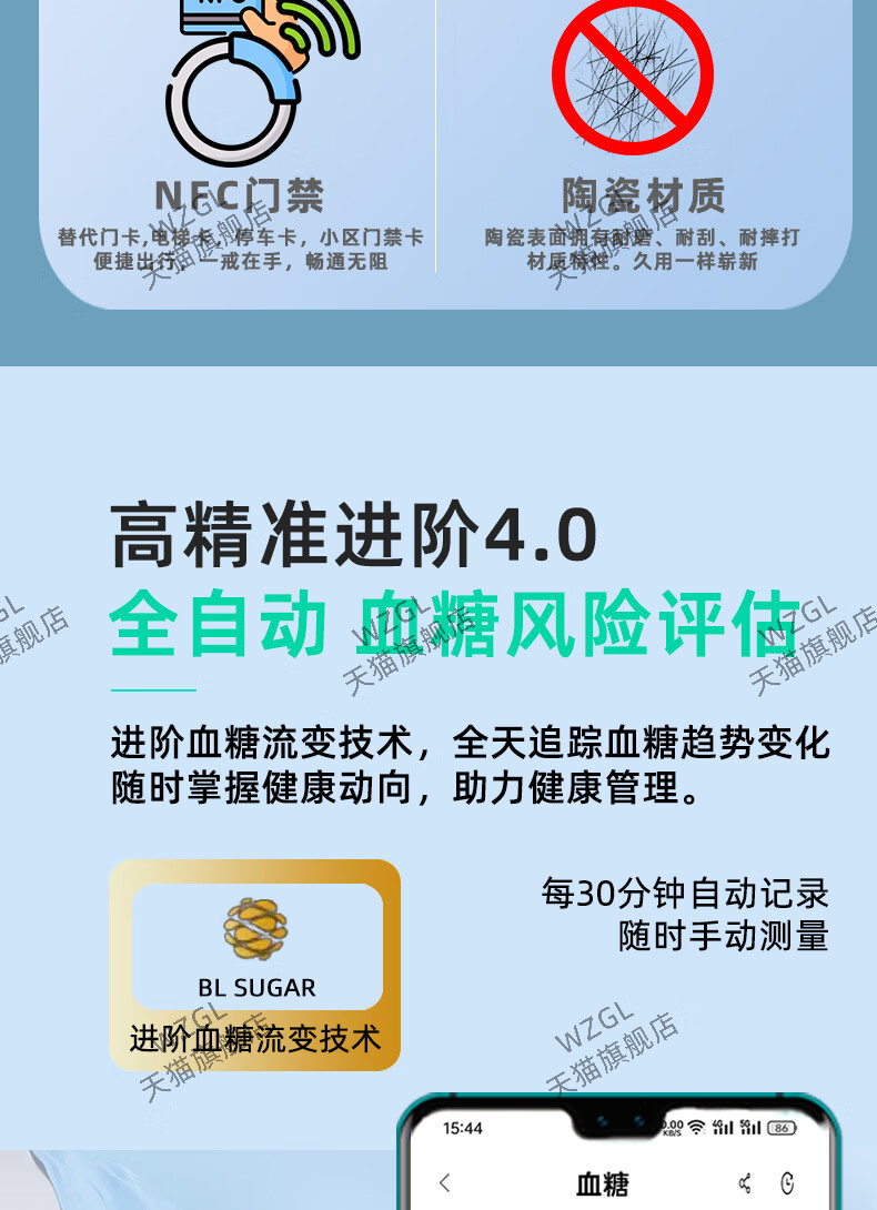 Huaqiangbei NFC access control is suitable for Xiaomi Samsung health dynamic monitoring blood sugar and blood pressure smart ring black technology intermediary ring sleep heart rate exercise multi-functional time ceramic NFC version charging compartment 24-hour automatic monitoring/blood sugar/blood No. 14 (diameter 23.4, finger circumference 73.5)