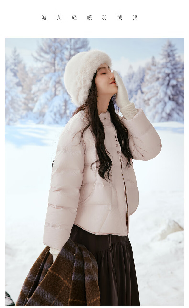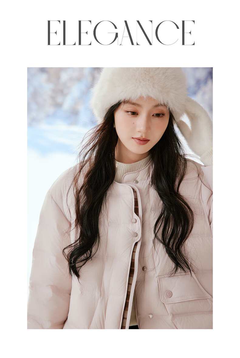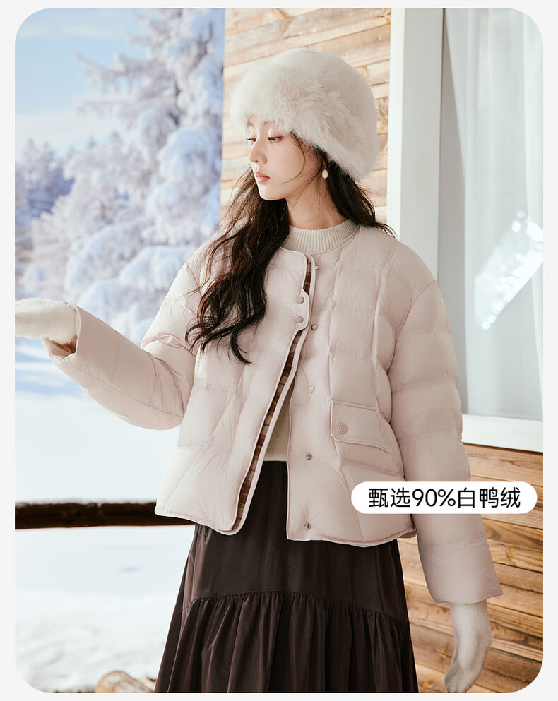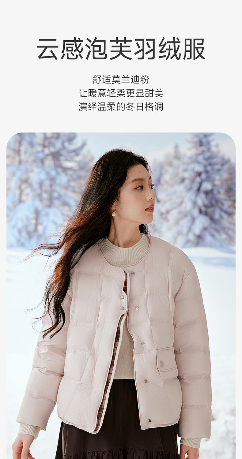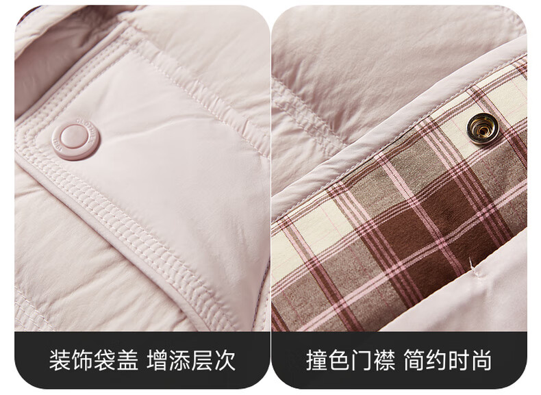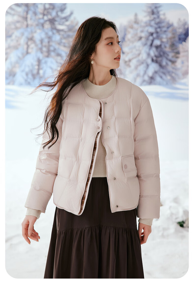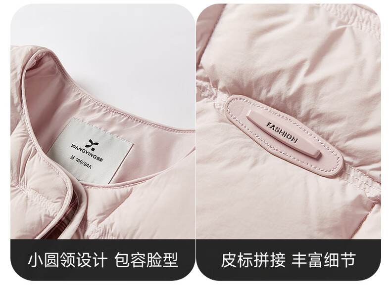 Xiangying Pink Lightweight Down Jacket Women's Short 2025 Winter New Plaid Splicing 90 White Duck Down Round Neck Jacket Light Pink S 155/80A/85-95 Jin