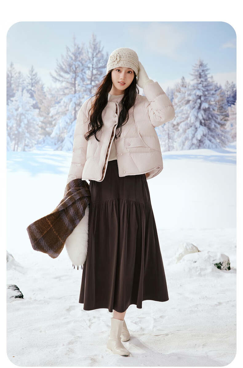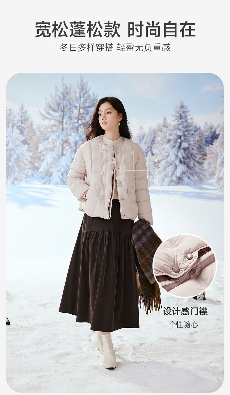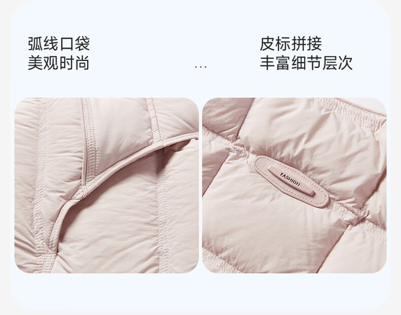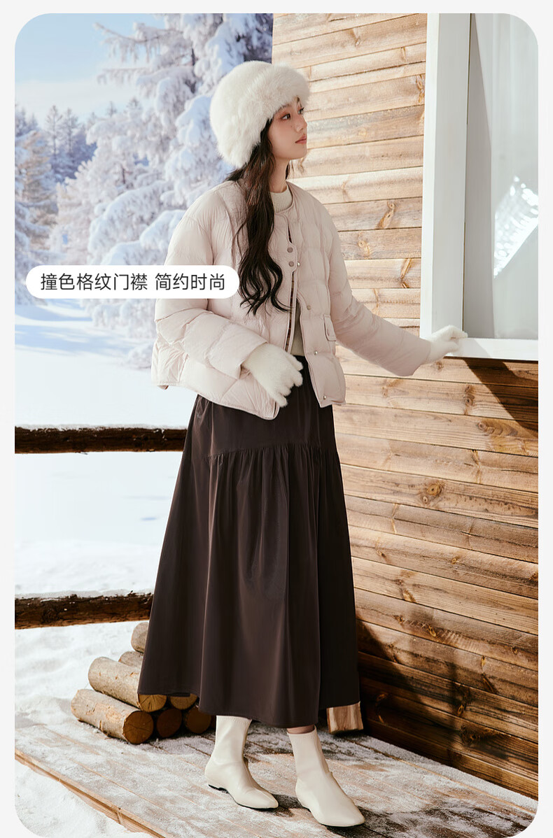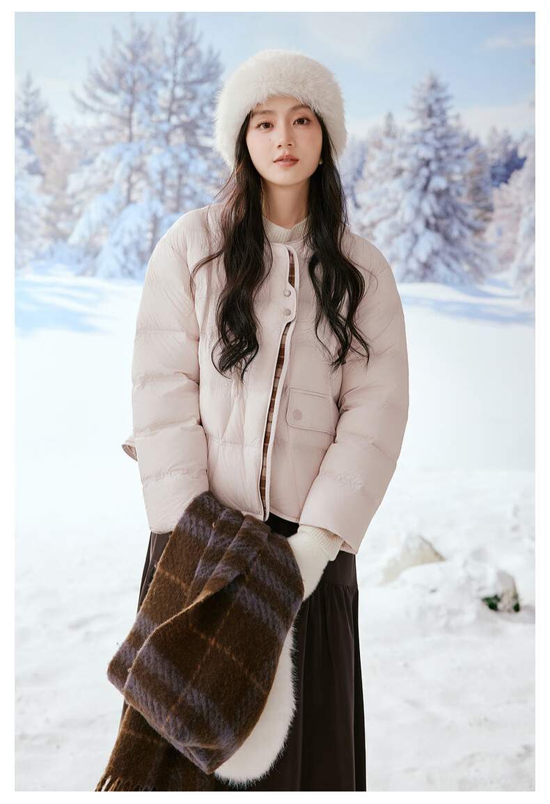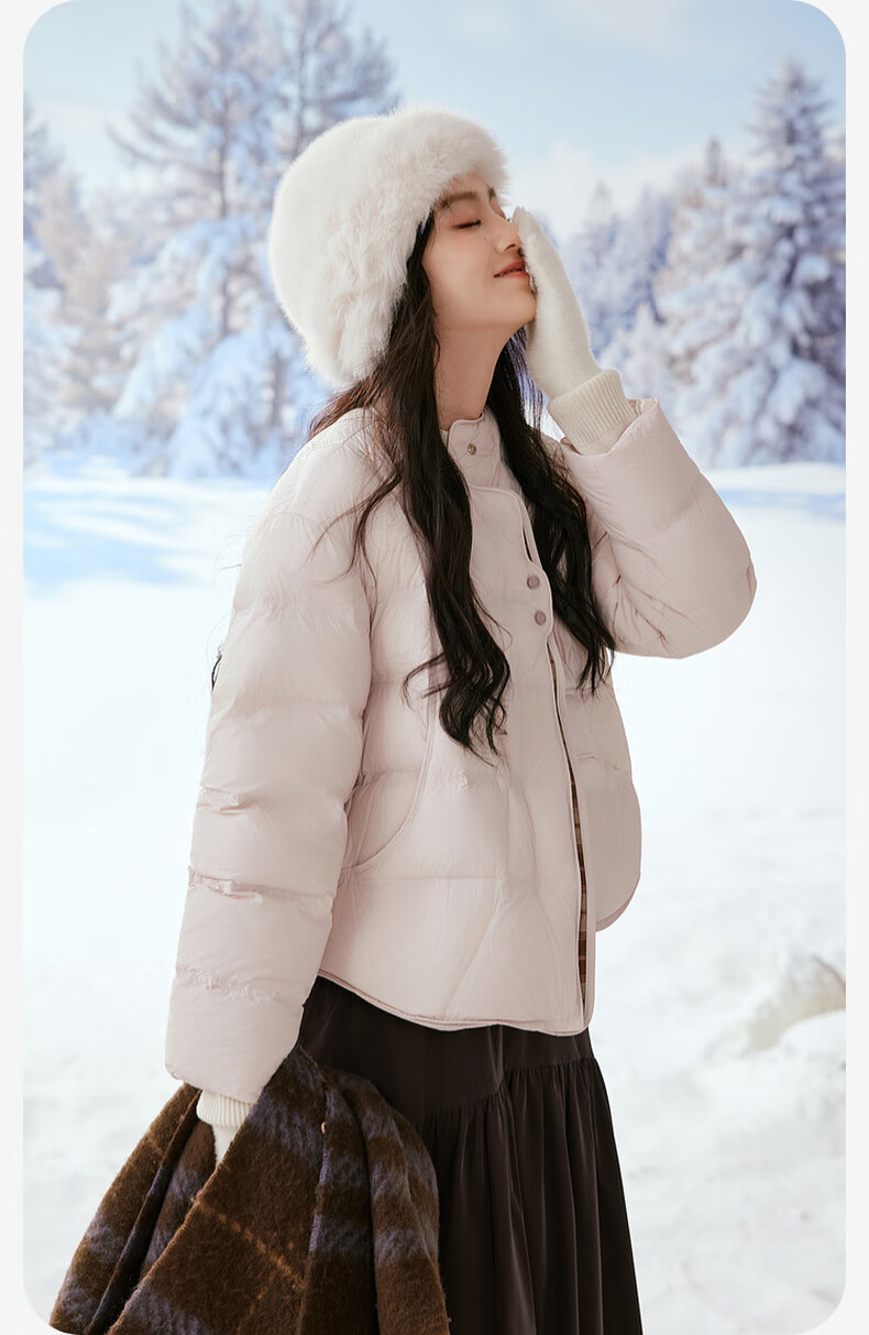 Xiangying Pink Lightweight Down Jacket Women's Short 2025 Winter New Plaid Splicing 90 White Duck Down Round Neck Jacket Light Pink S 155/80A/85-95 Jin
