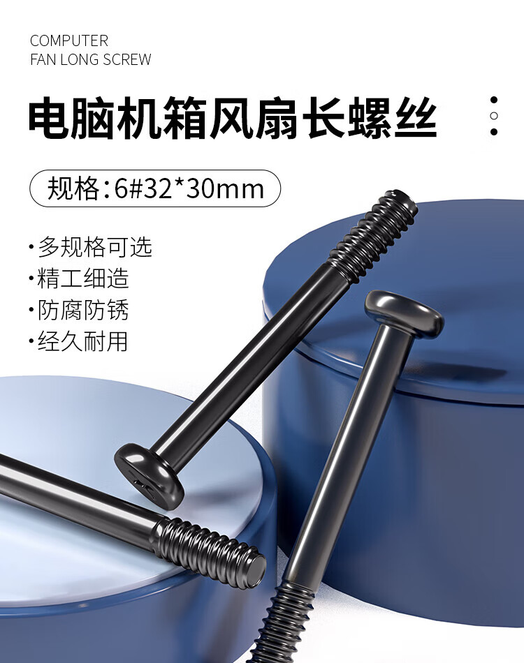 Neem Art Shop computer case fan universal cold radiator long screw 6#32 30 case cooling fan fixing screw black screw (12 pieces) without nut