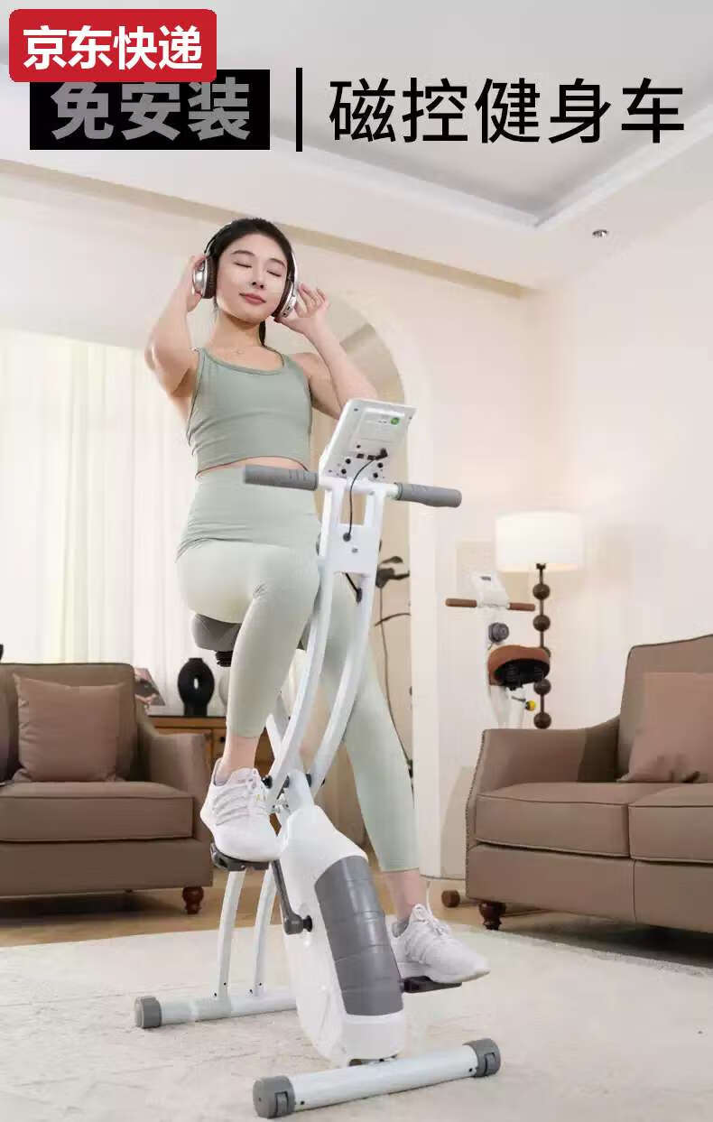 TKHE imported from Germany Ironman Sports Foldable Exercise Bike Magnetic Control Fitness Indoor Pedal Bicycle Home Sports Small Cool Gray White - Magnetic Control Light Sound Foldable with Rollers - Plus