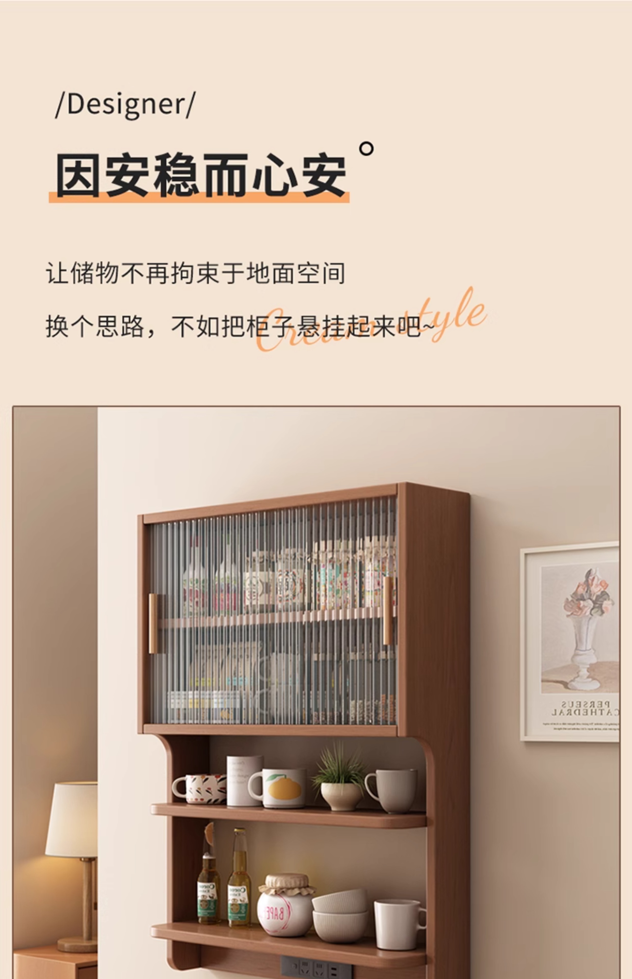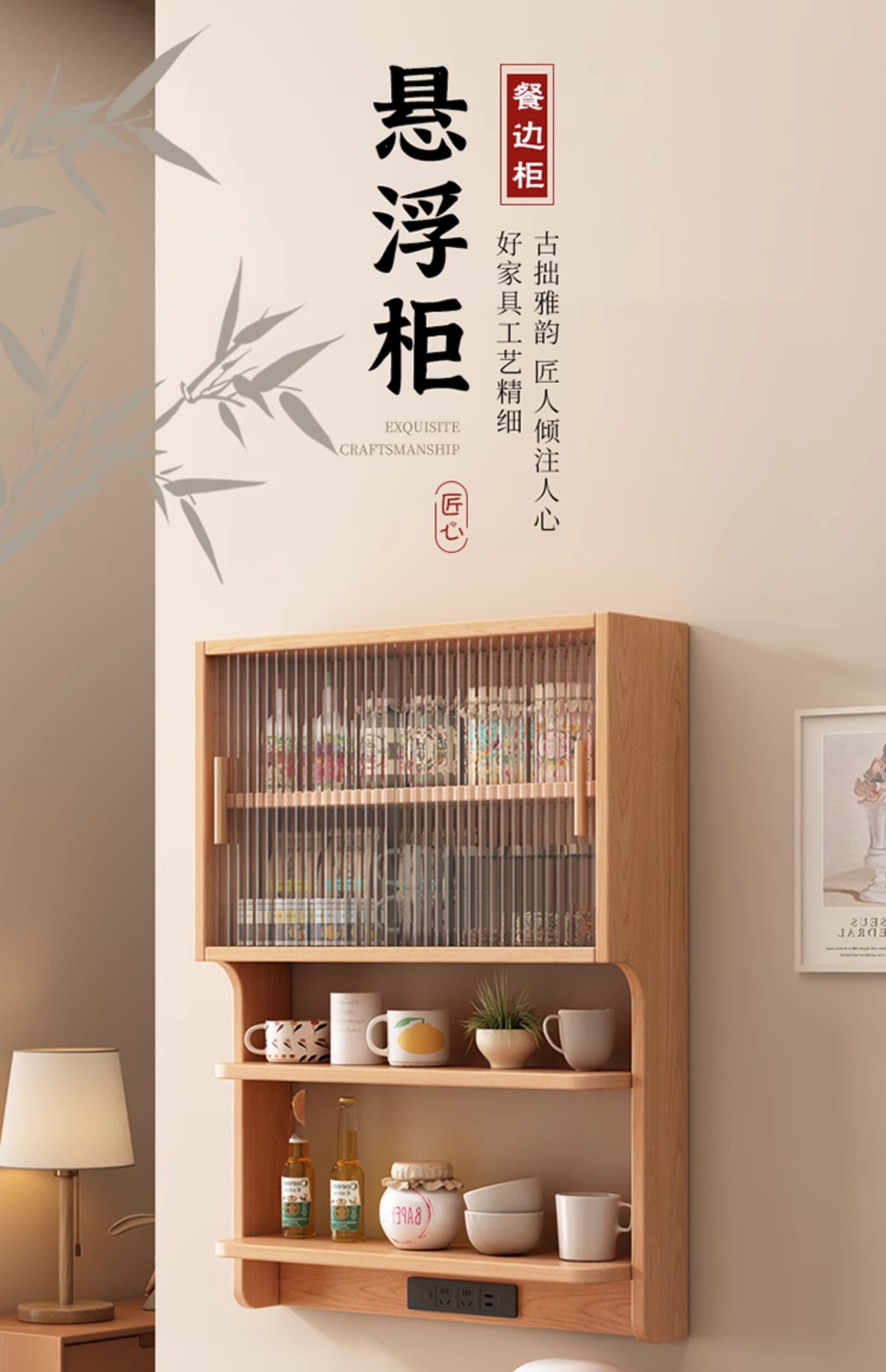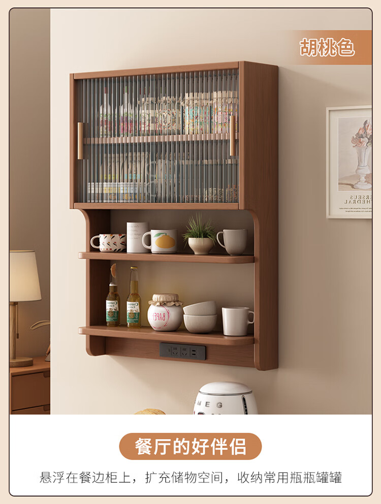 Chengmeixuan solid wood suspended sideboard dining table integrated restaurant small apartment wall cabinet wall storage cabinet storage cabinet solid wood color solid wood length 78*width 17*height 91CM