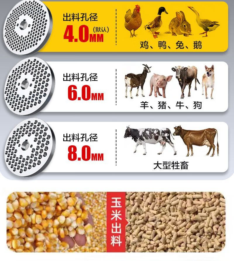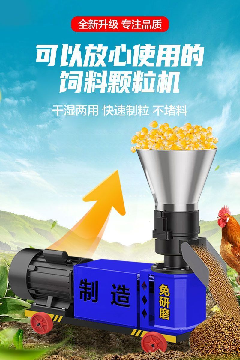 Pupan Feed Pellet Machine Home Breeding Assistant Wet and Dry Pelletizer Chicken, Duck, Fish, Goose, Pig Straw Feed Pelletizer Type 190 Rotary 2 Pressure Wheel 5.5KW (220V)