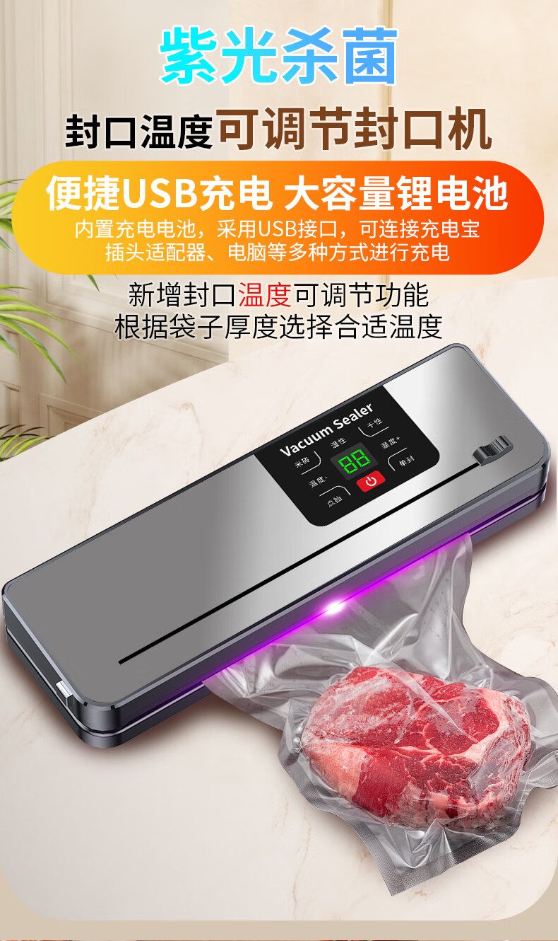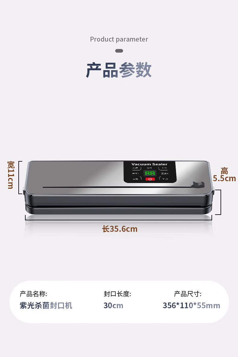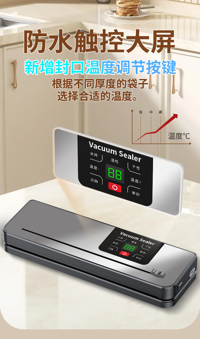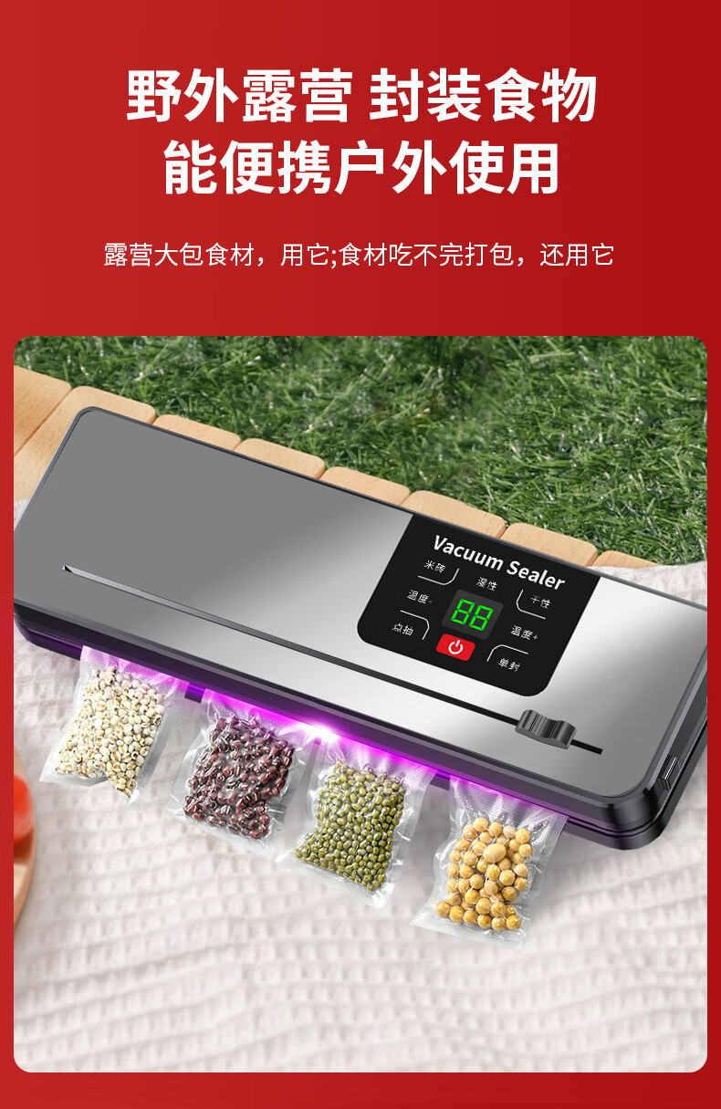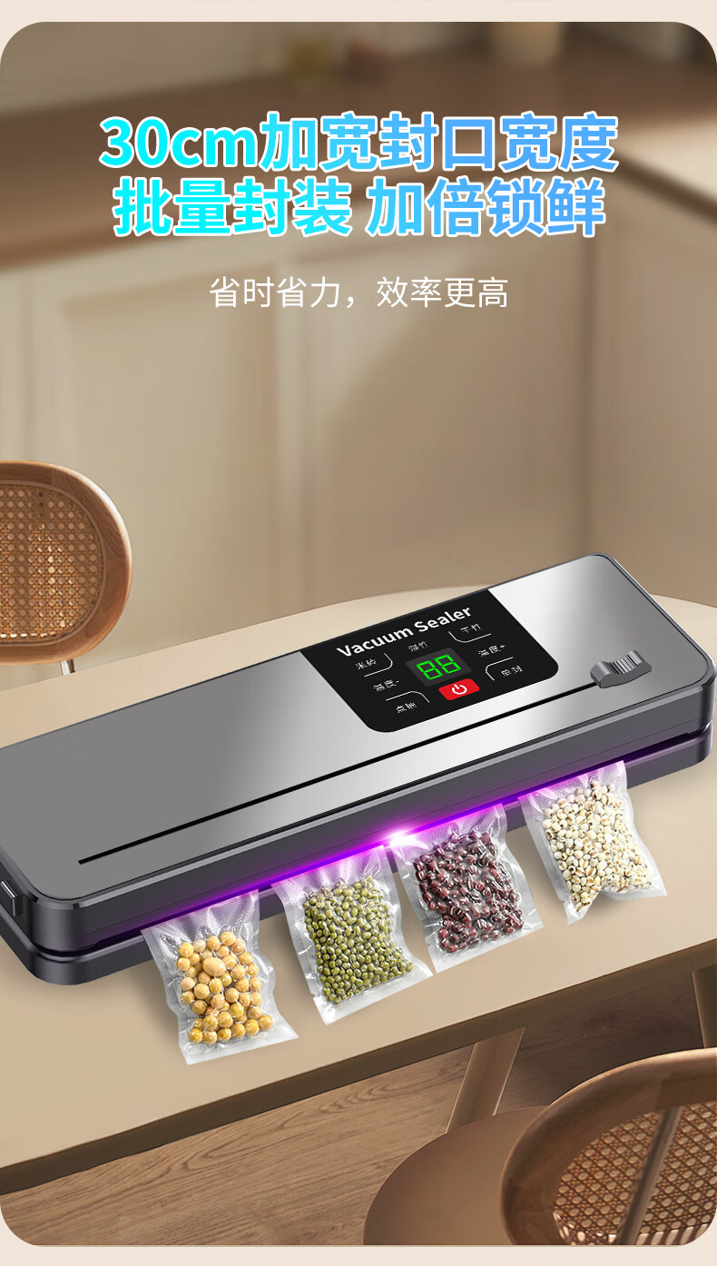 Jingyan vacuum machine sealing machine wet and dry plastic sealing machine vacuum machine sealing all-in-one machine household food fully automatic large suction vacuum packaging machine vacuum preservation compression small cutter style supreme gray digital display large suction + dry and wet universal + extended sealing 30cm