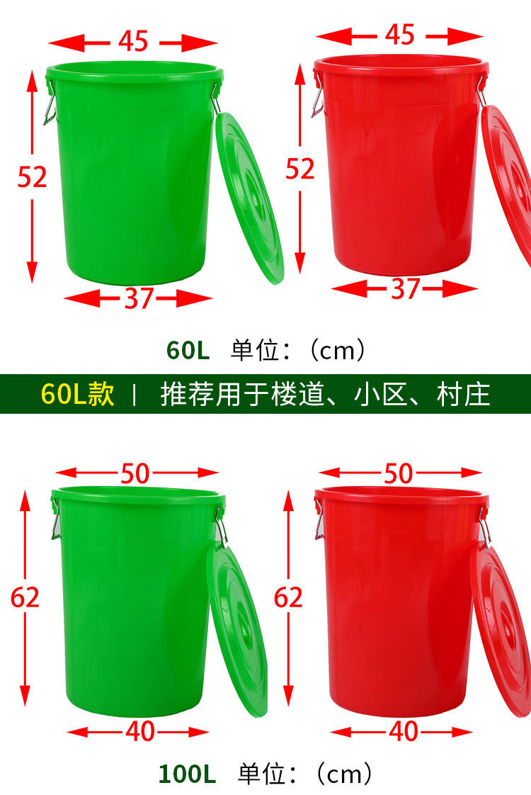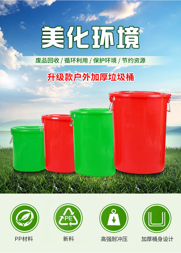 Trash can round plastic thickened large with lid outdoor four categories green kitchen waste perishable garbage 60K green without lid fishbone diagram