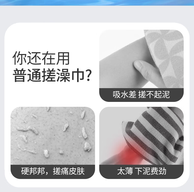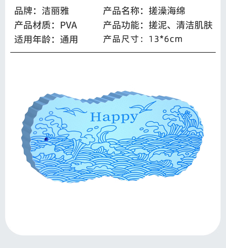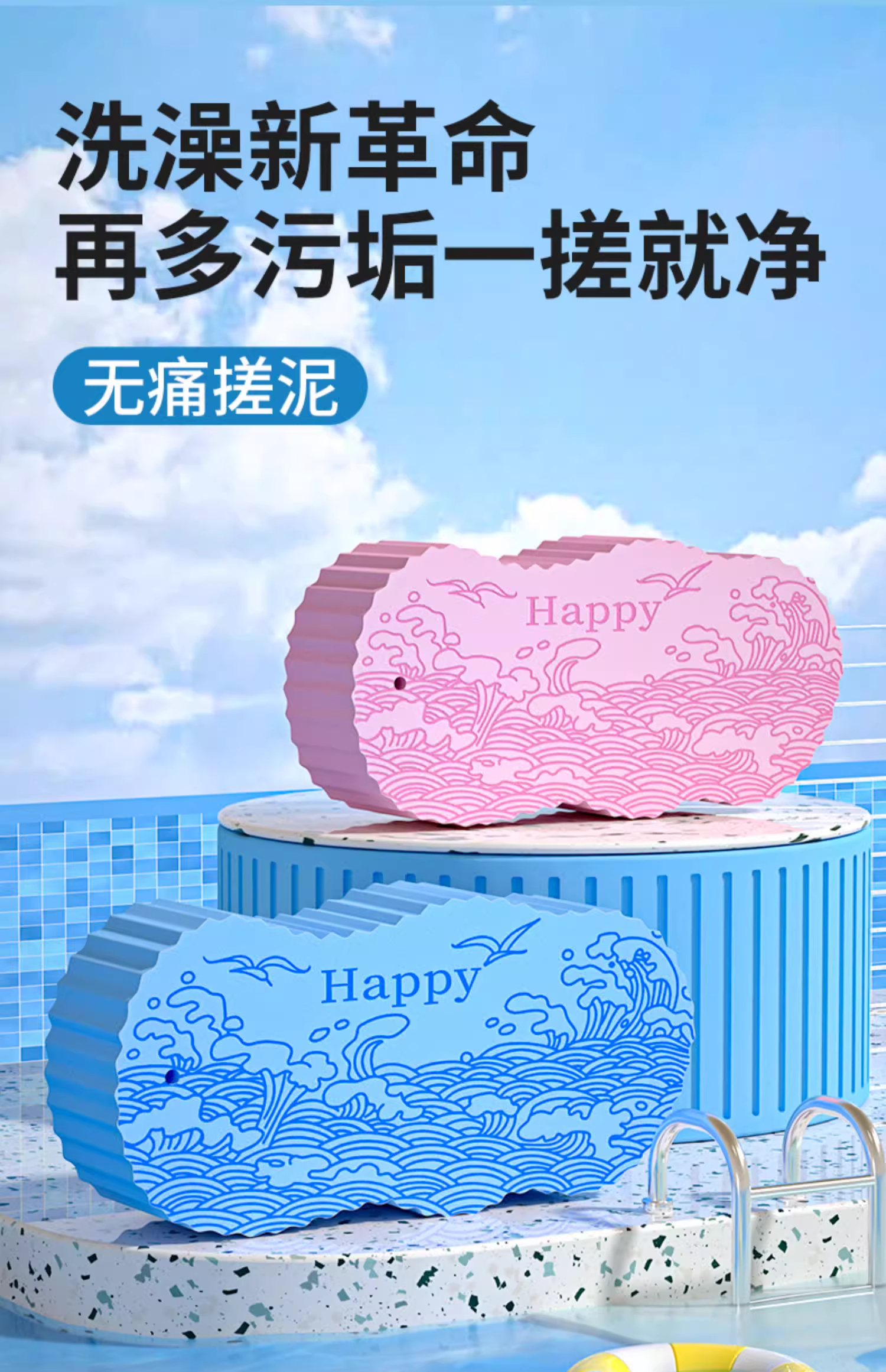 Jie Liya (Grace) sponge bath towel for men and women, adult bathing and mud rubbing artifact, painless and soft, does not hurt the skin, blue wave style 3D three-dimensional bath sponge