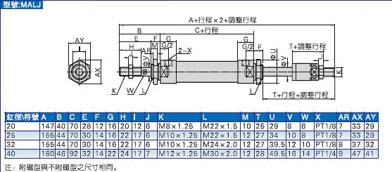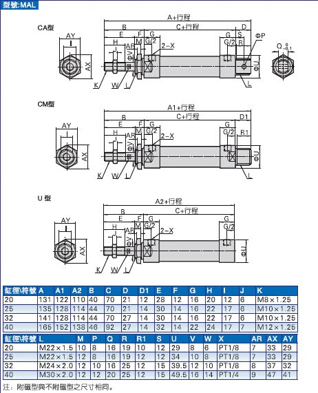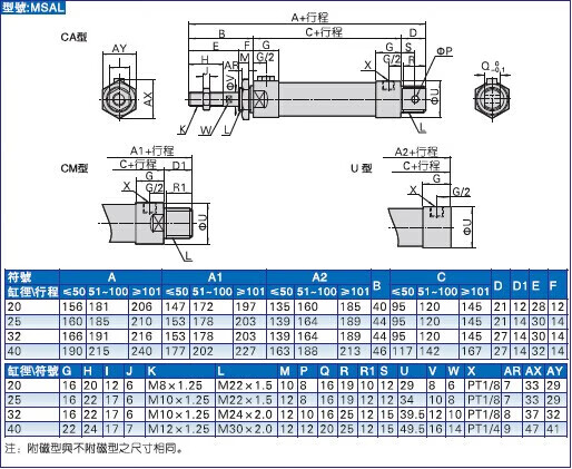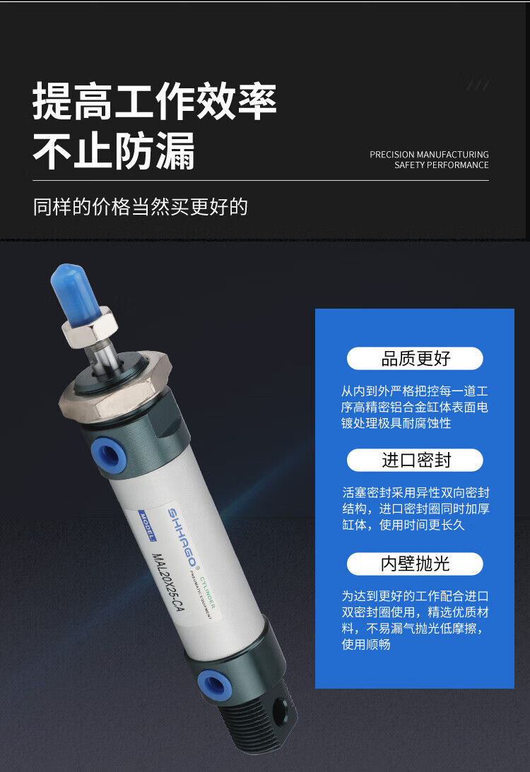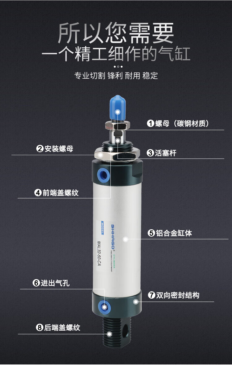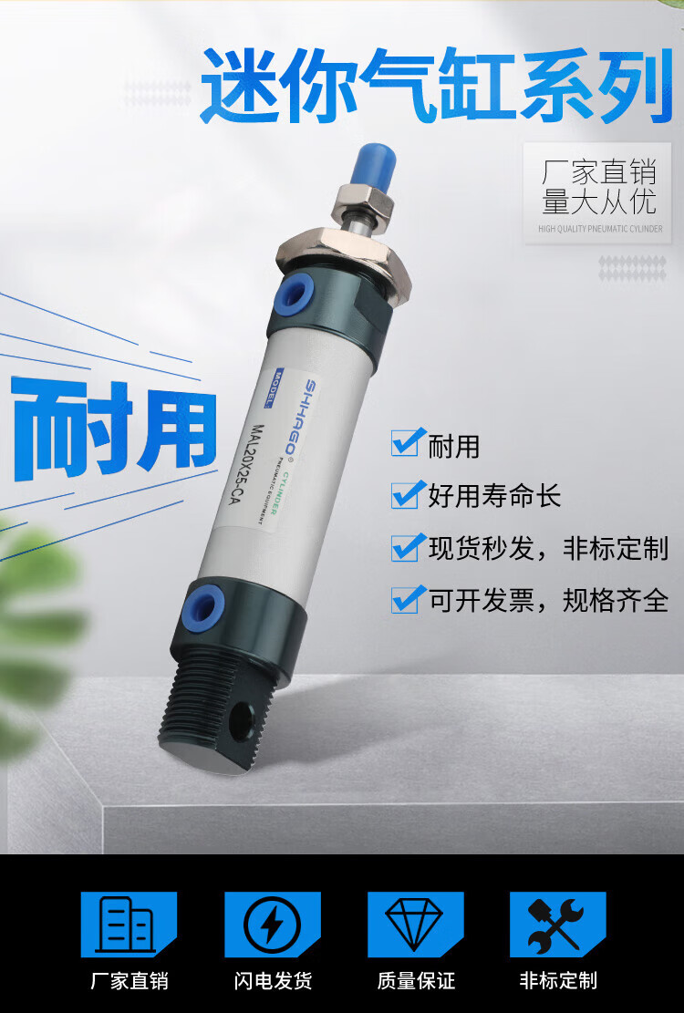 Customized aluminum alloy mini cylinder small pneumatic MAL321620255075100CA type gas MAL25X100-CA