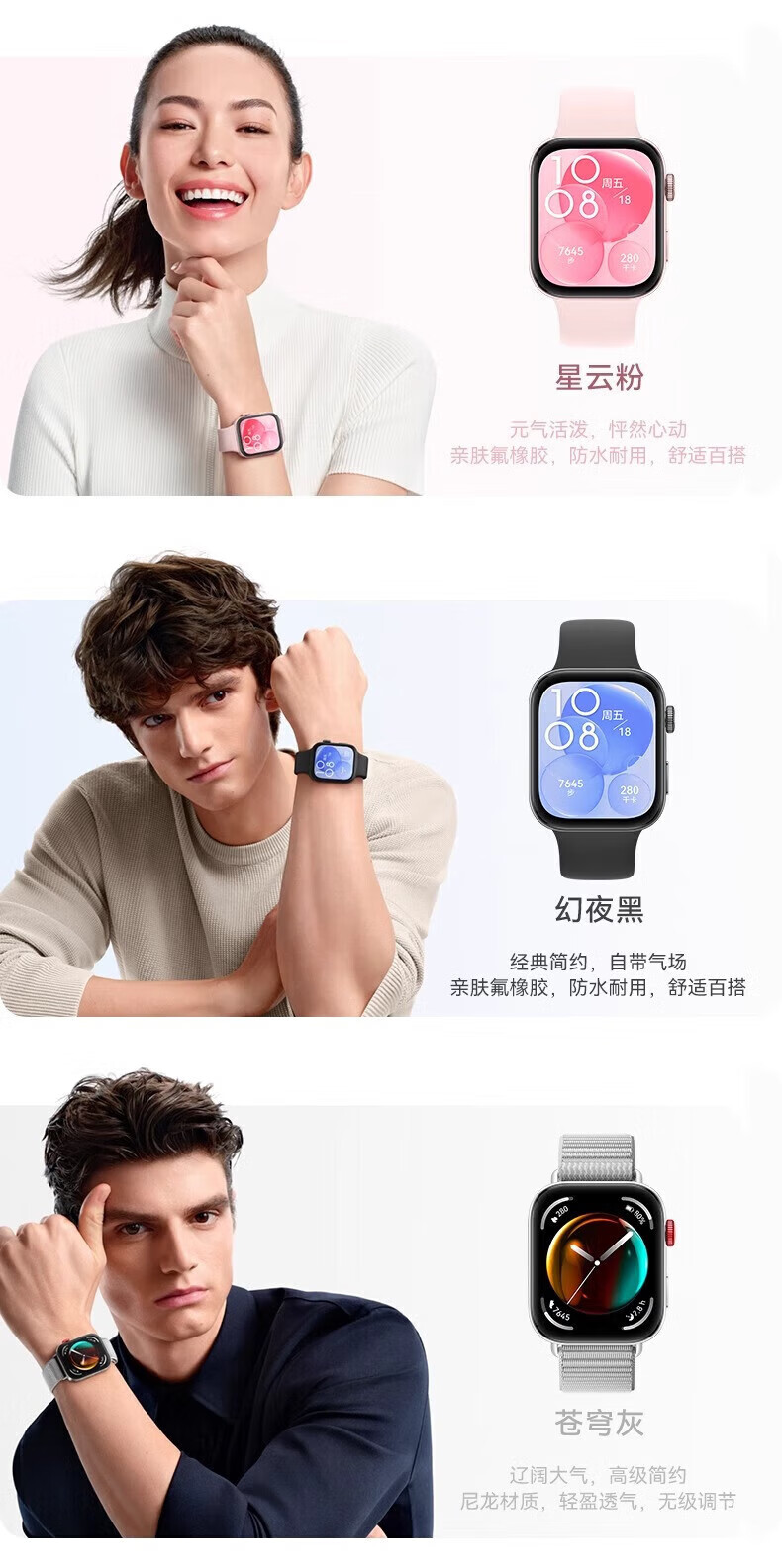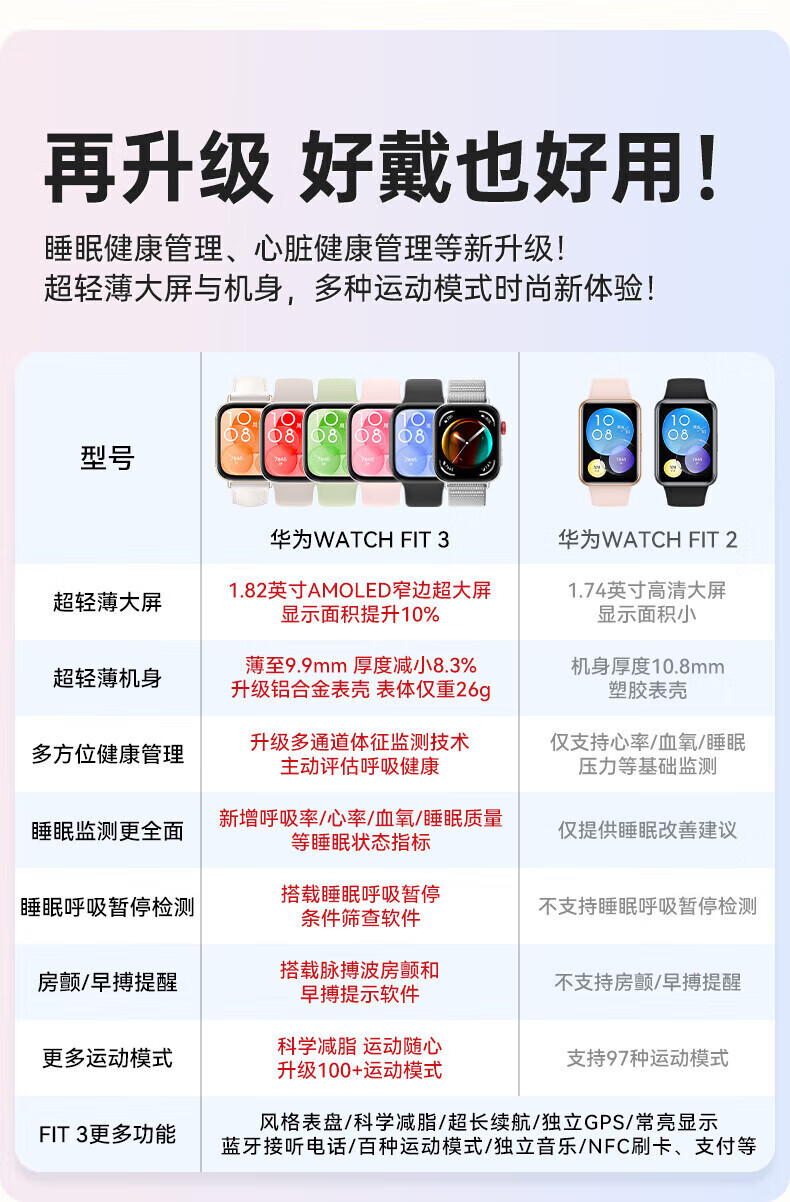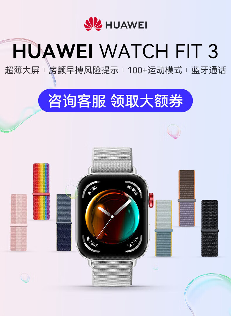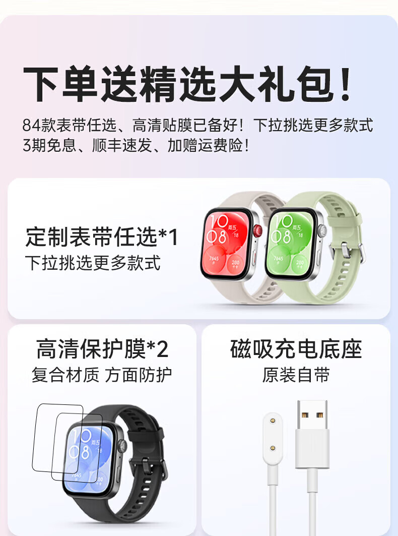 Huawei Valentine's Day Gift Huawei Watch WATCH FIT 3 Smart Sports Bracelet Women's Waterproof Bluetooth Call Long Life Sleep Monitoring Couple Watch Sky Gray + Strap + Film *6