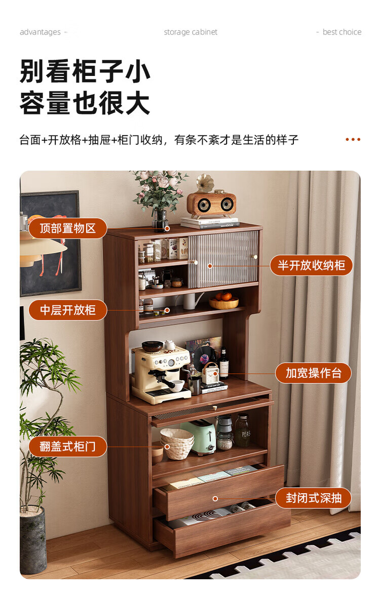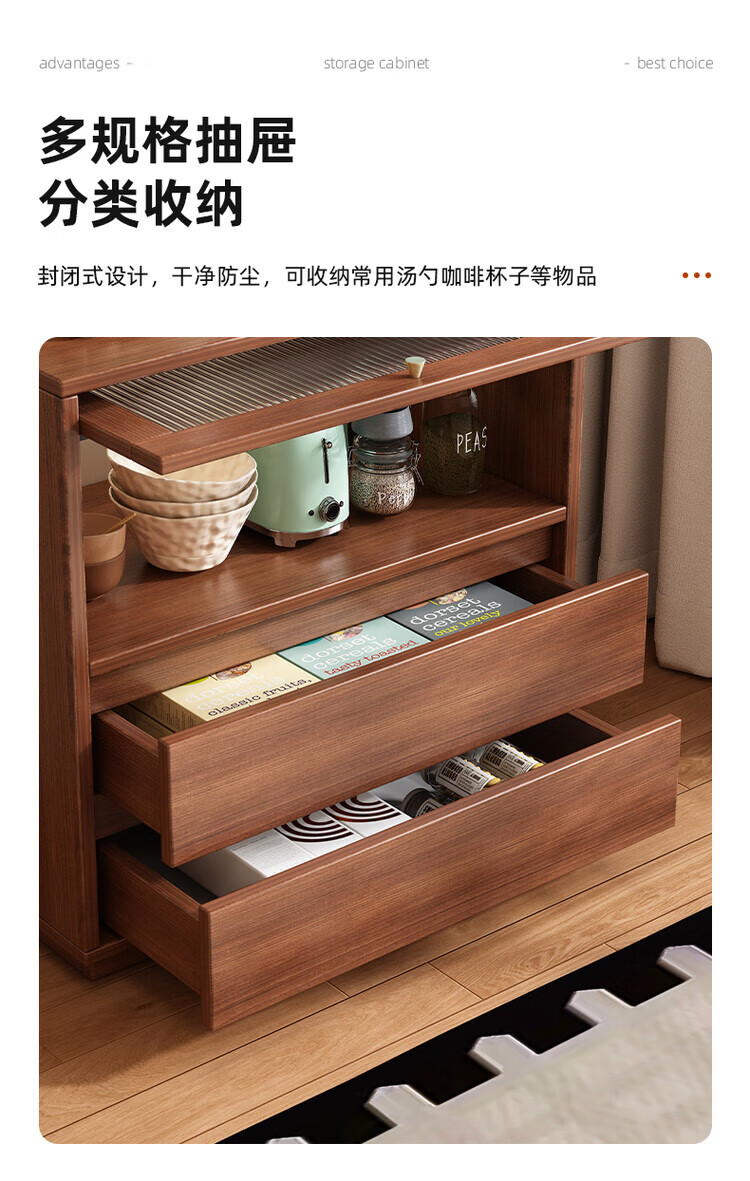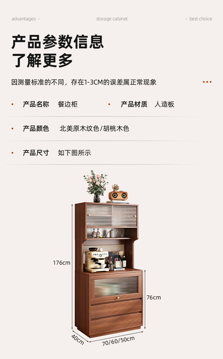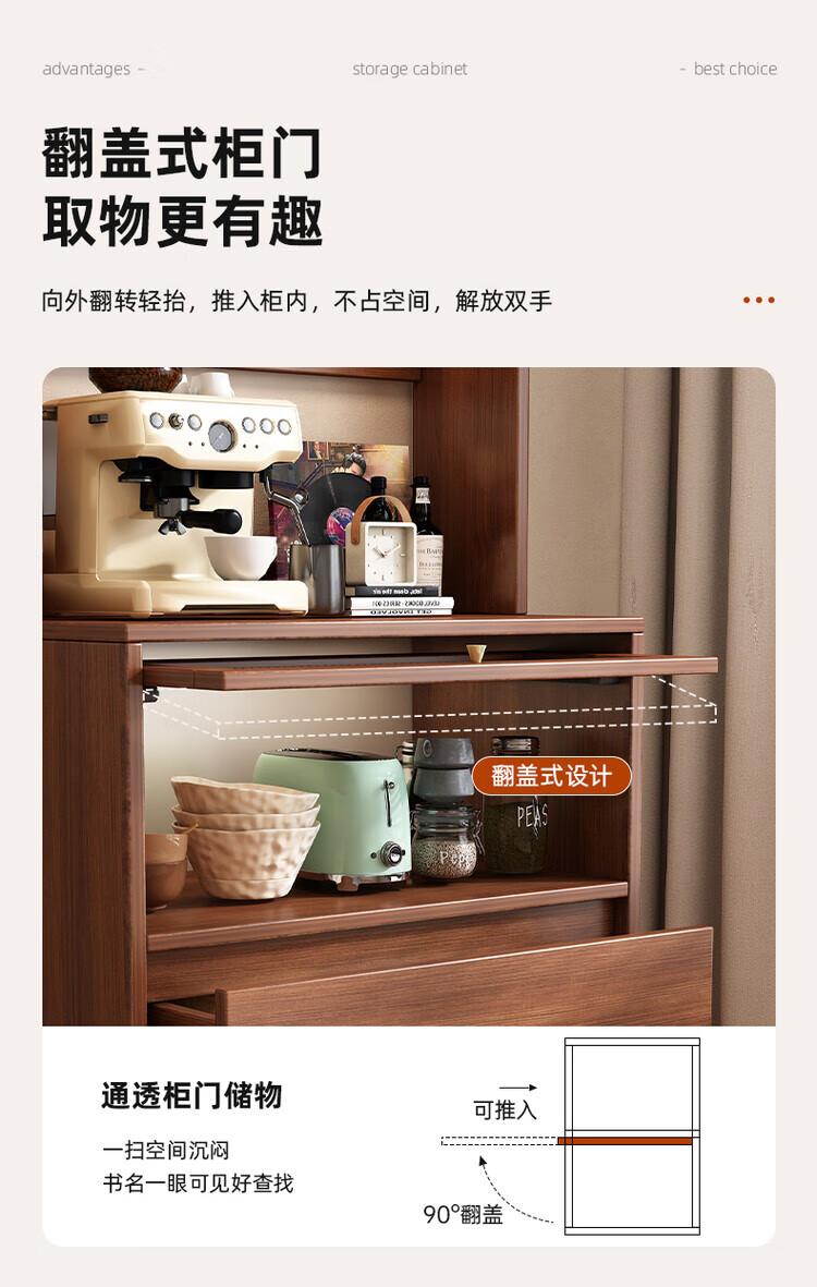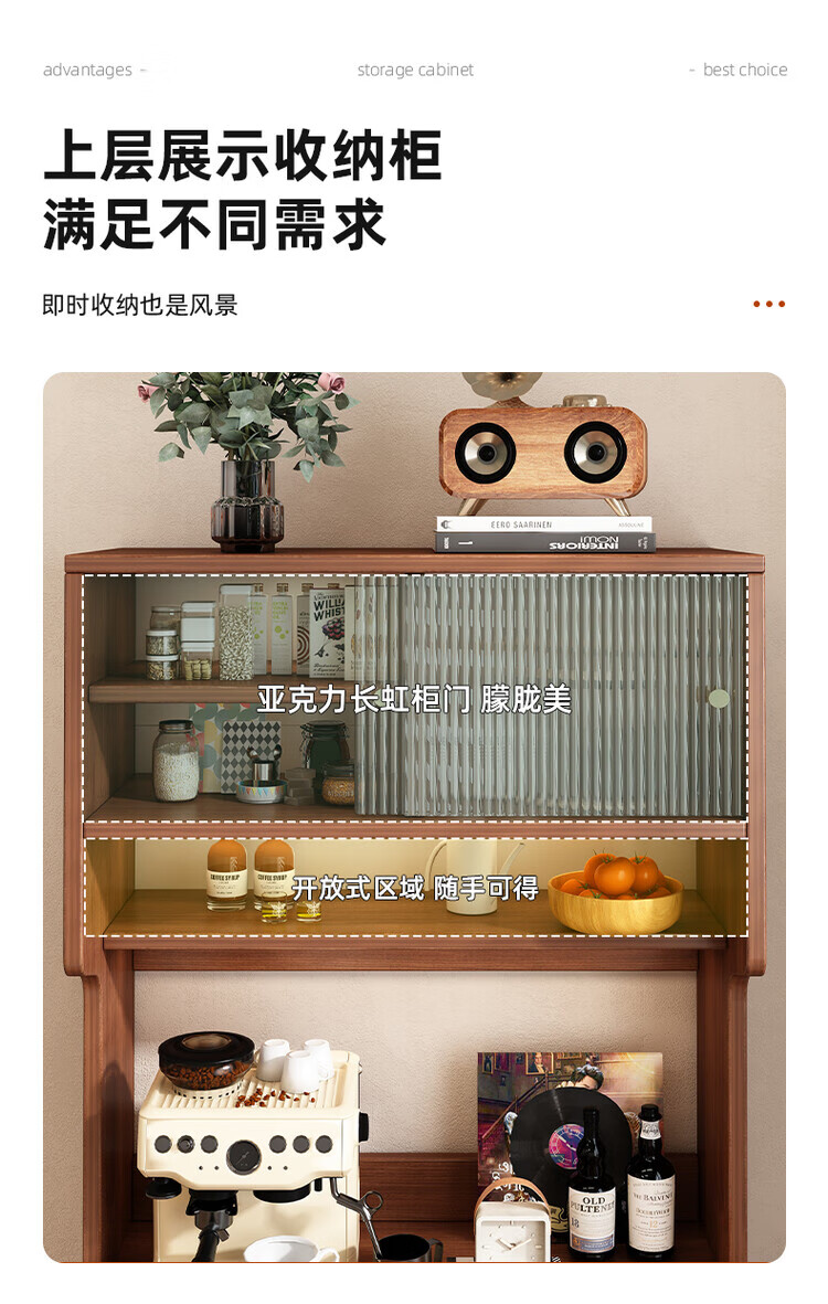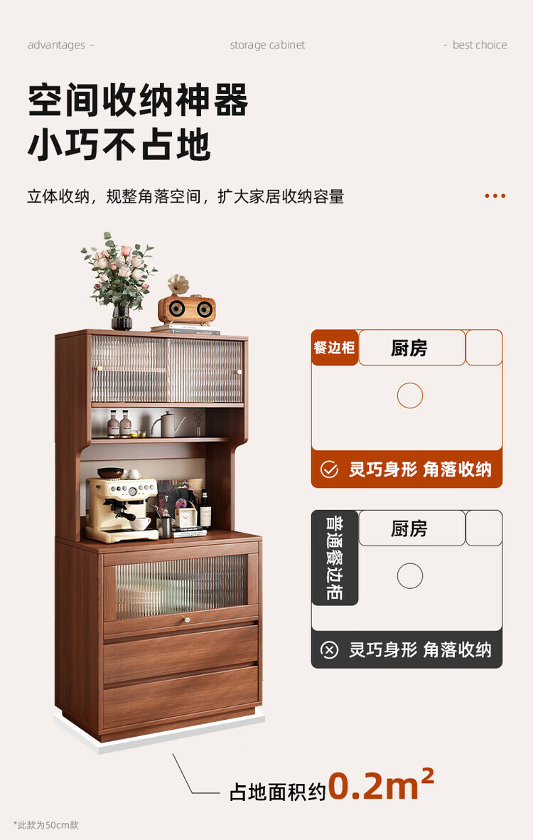 Tea cabinet, side cabinet, storage cabinet, narrow cabinet against the wall, household small water bar, antique style dining cabinet, storage cabinet, short cabinet, door-to-door delivery, walnut color 50*40*76cm, 15MM thickened