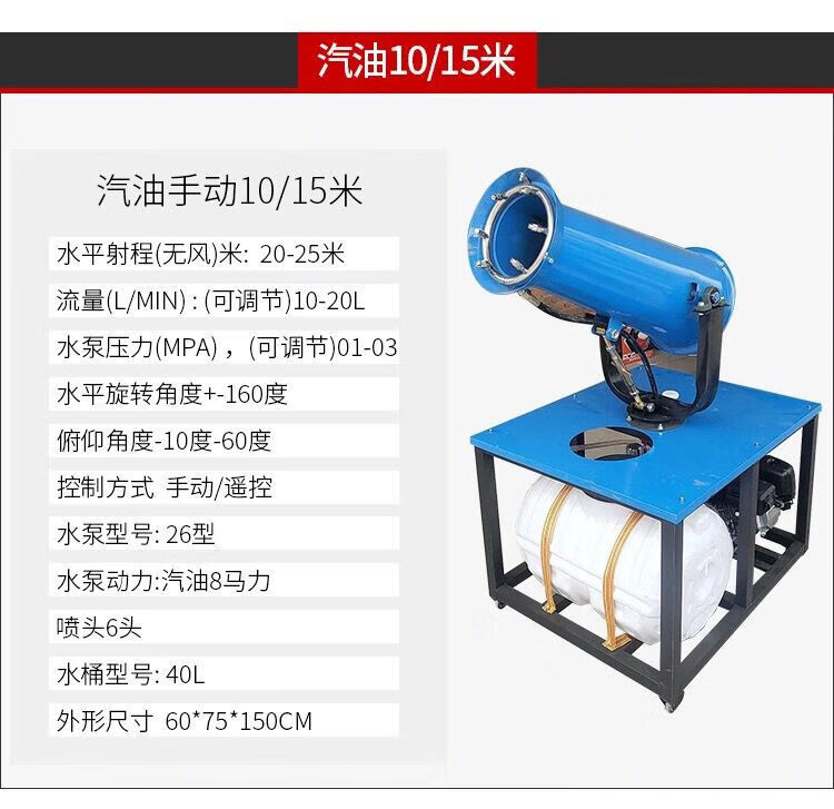 BEYZK fog cannon machine high-pressure vehicle-mounted fog cannon machine construction site dust removal sprayer dust reduction equipment fully automatic cannon fog machine gasoline manual (range 18 meters)