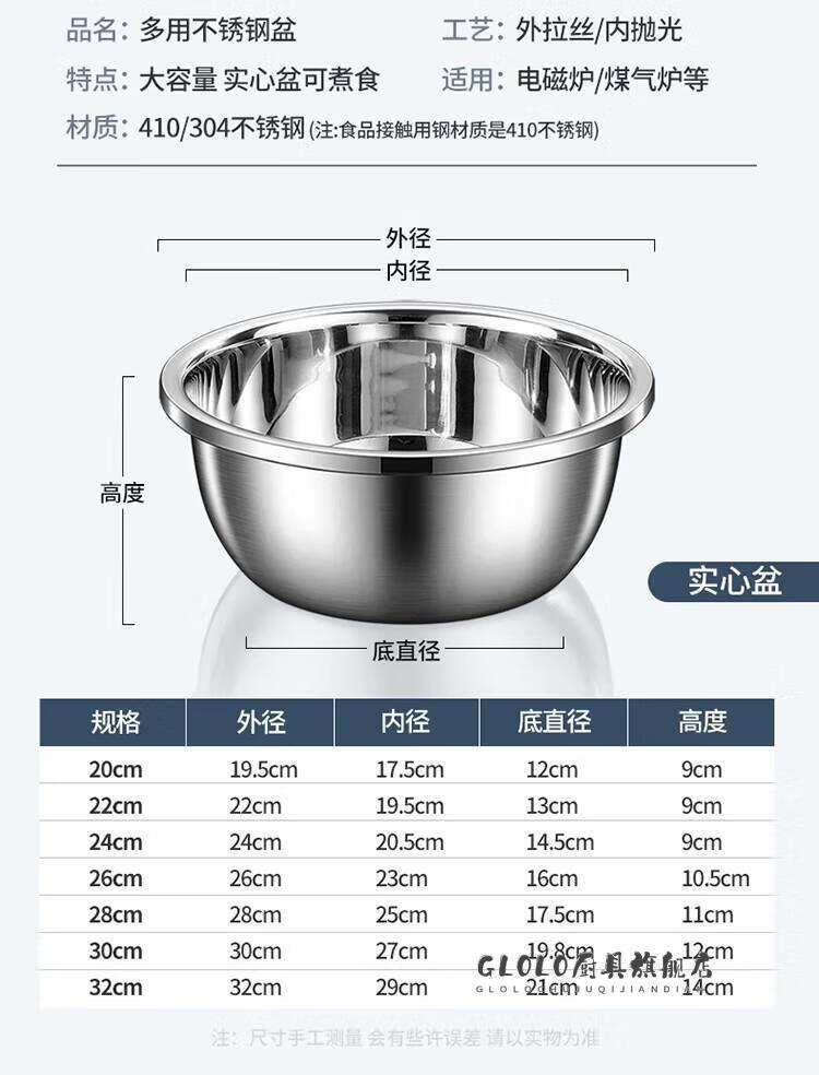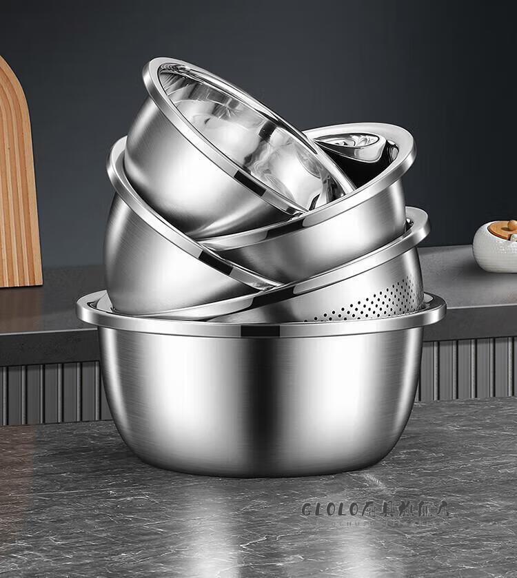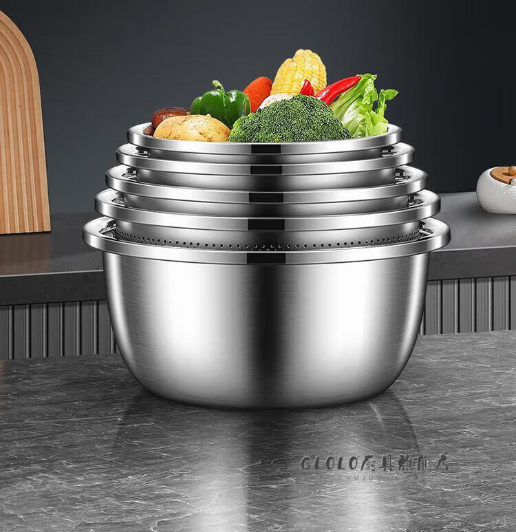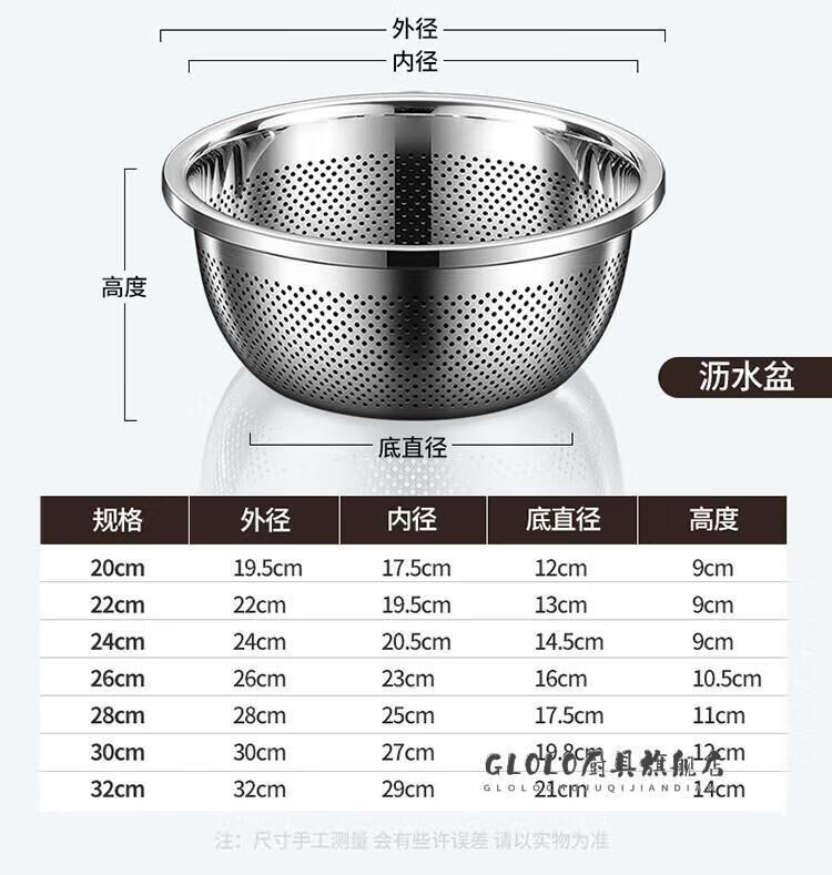 KSHK high quality 304 stainless steel drain basket, vegetable basin, rice washing basin, fruit basket, extra large rice washing basin, extra thick drain basin 20cm