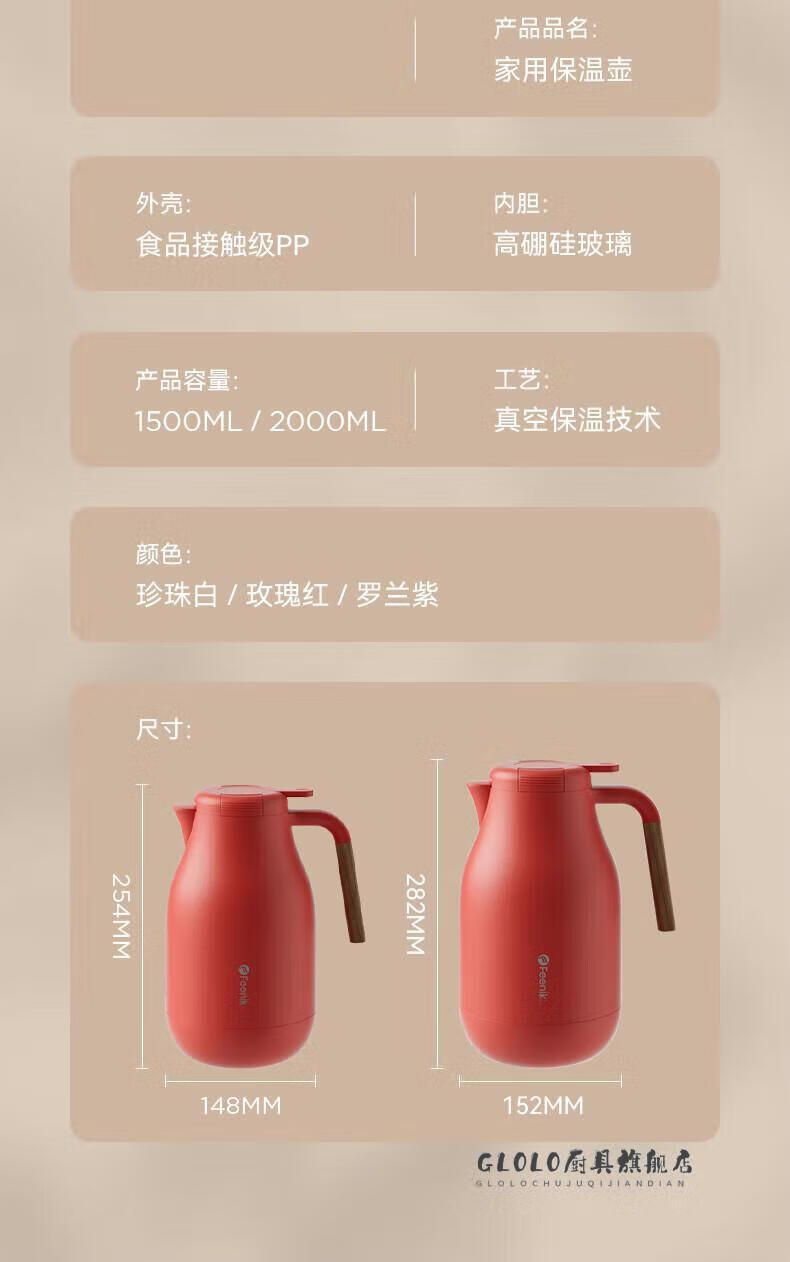 KSHK High Quality Large Capacity Thermos Bottle Household Thermos Bottle School Dormitory Thermos Kettle Thermos Bottle Thermos Customized Rose Red - 1500ml