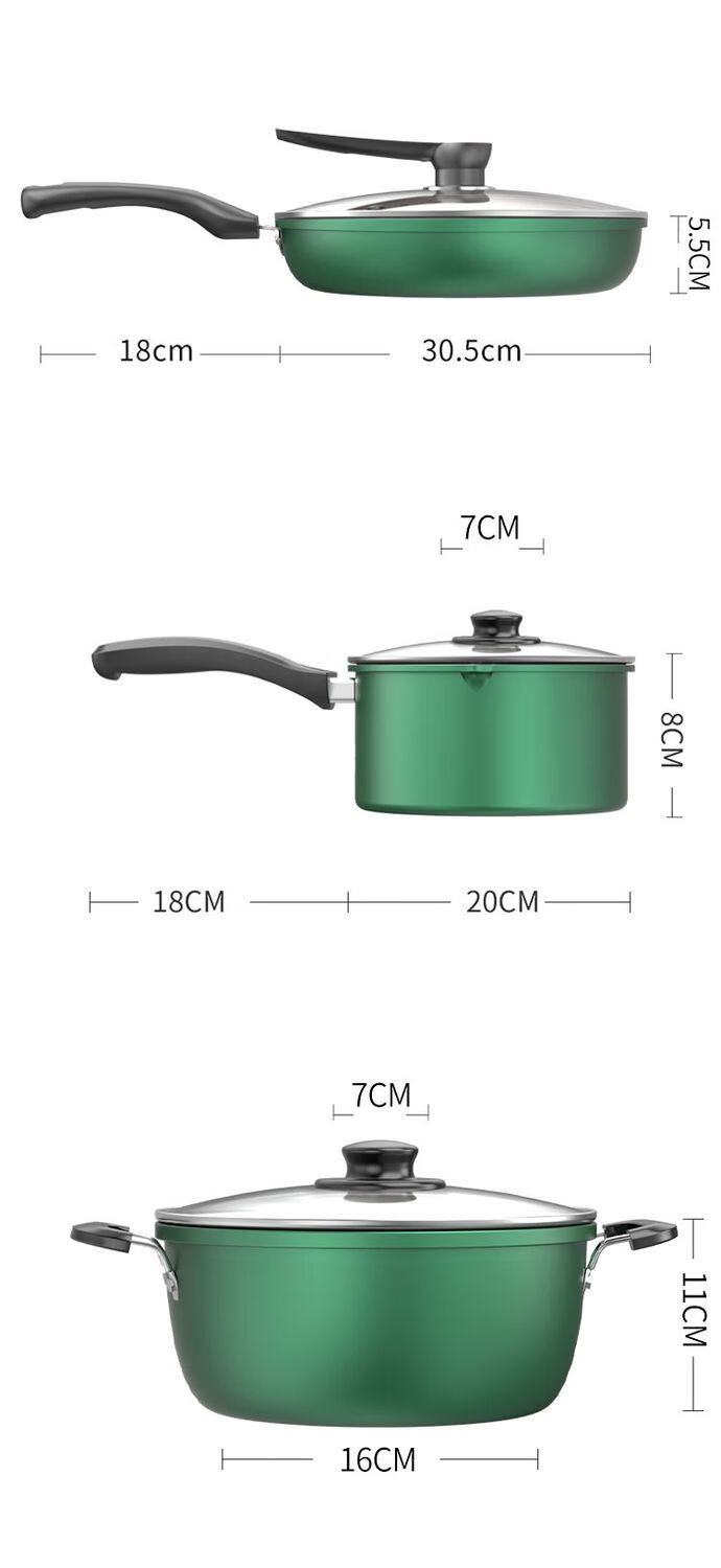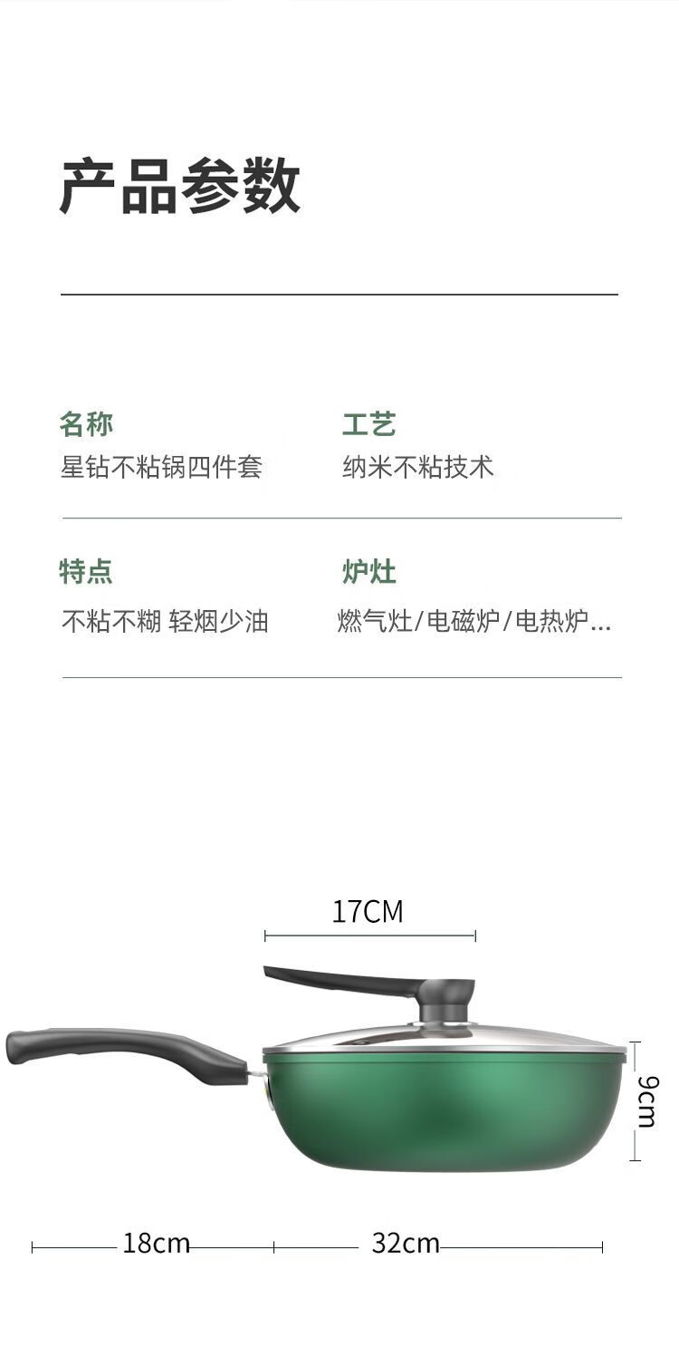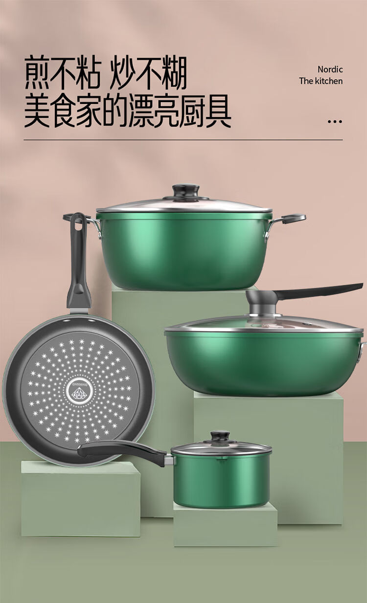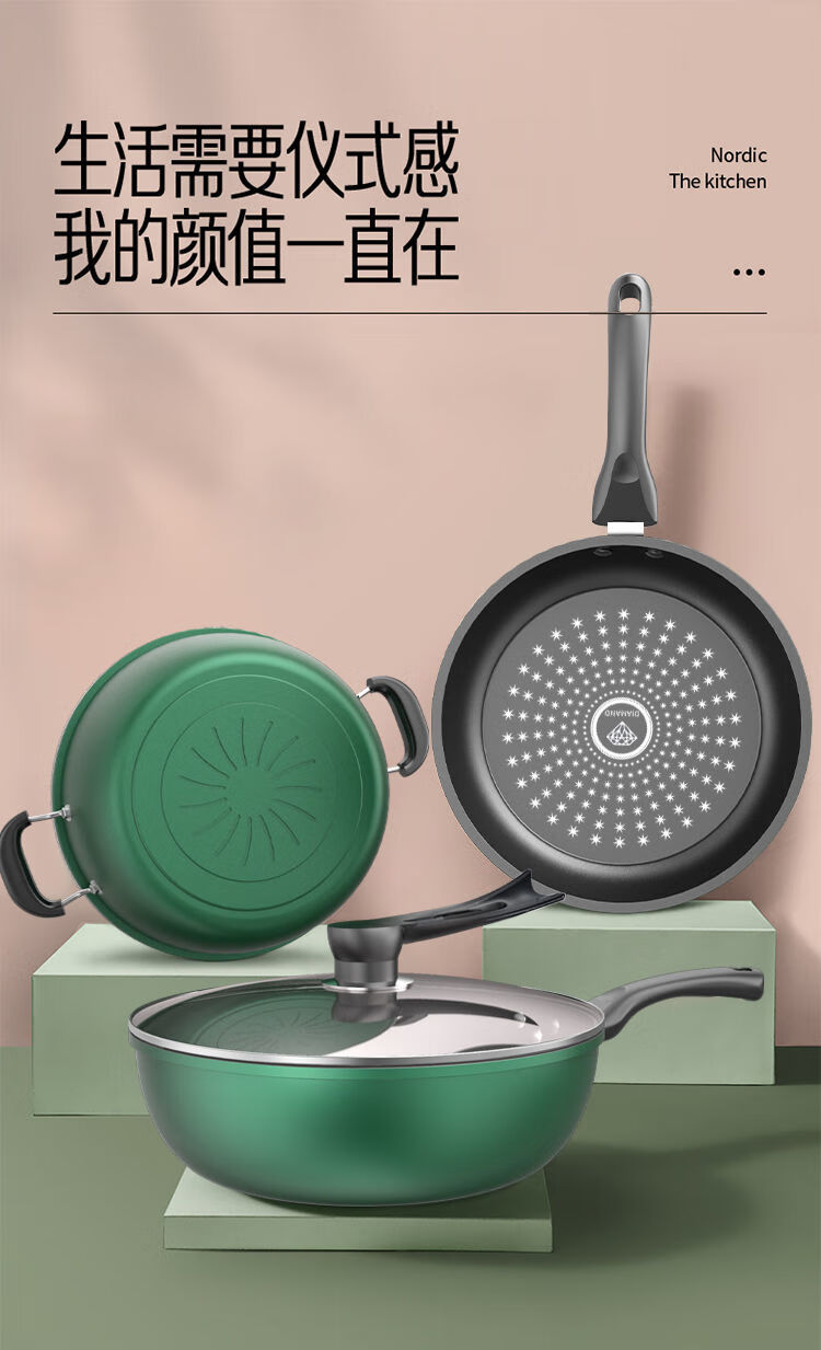 Lanqi Oujing Diamond non-stick pot four-piece set household multi-function pot soup pot gas induction cooker pot double cover wok + soup pot + frying pan