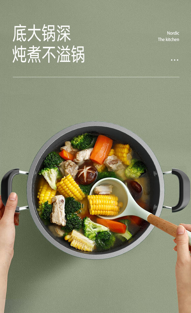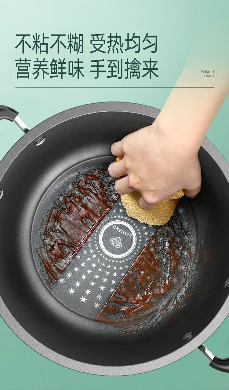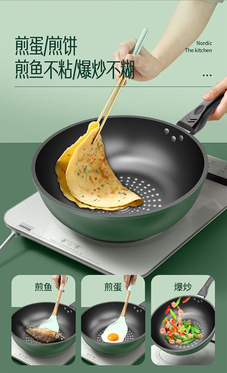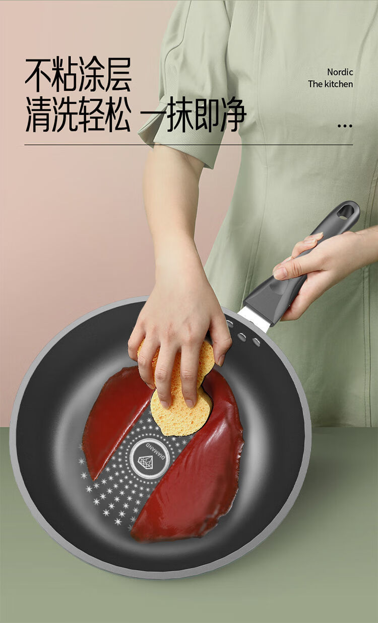 Lanqi Oujing Diamond non-stick pot four-piece set household multi-function pot soup pot gas induction cooker pot double cover wok + soup pot + frying pan
