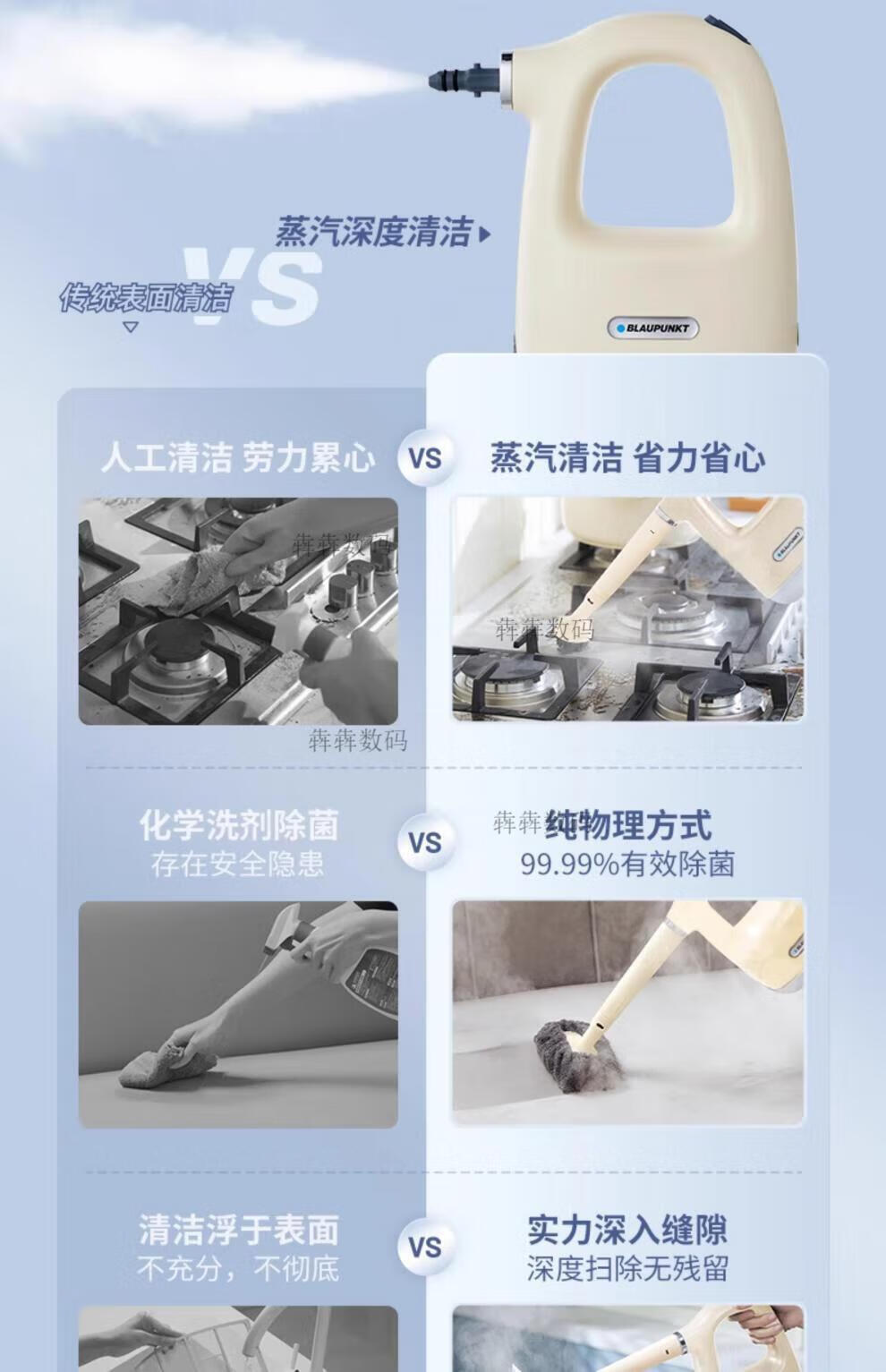 BLAUPUNKT Germany BLAUPUNKT handheld multi-functional high temperature and high pressure steam cleaner household kitchen steam cleaning machine all-in-one warm apricot yellow full set + BLAUPUNKT water-cooled fan