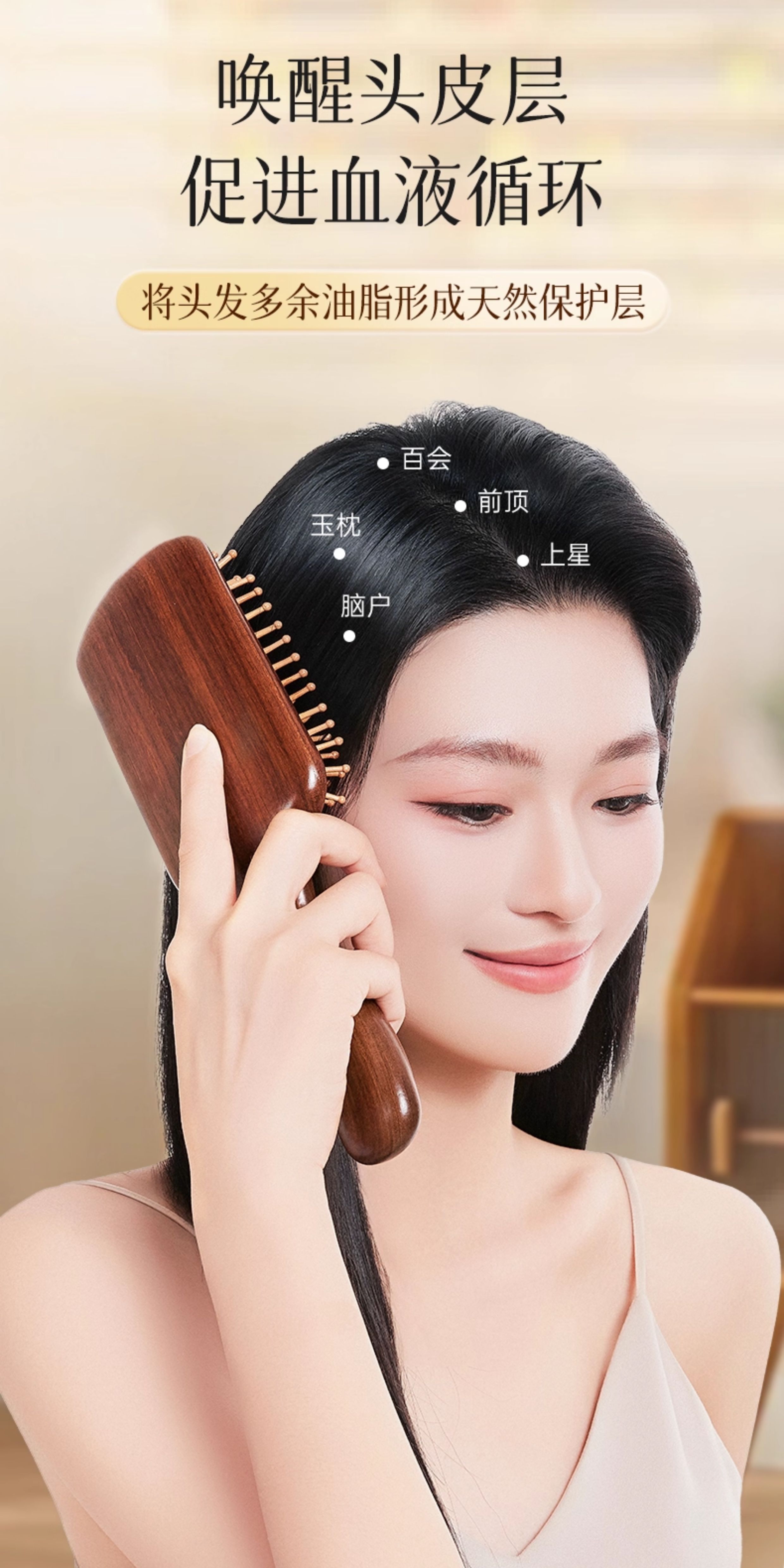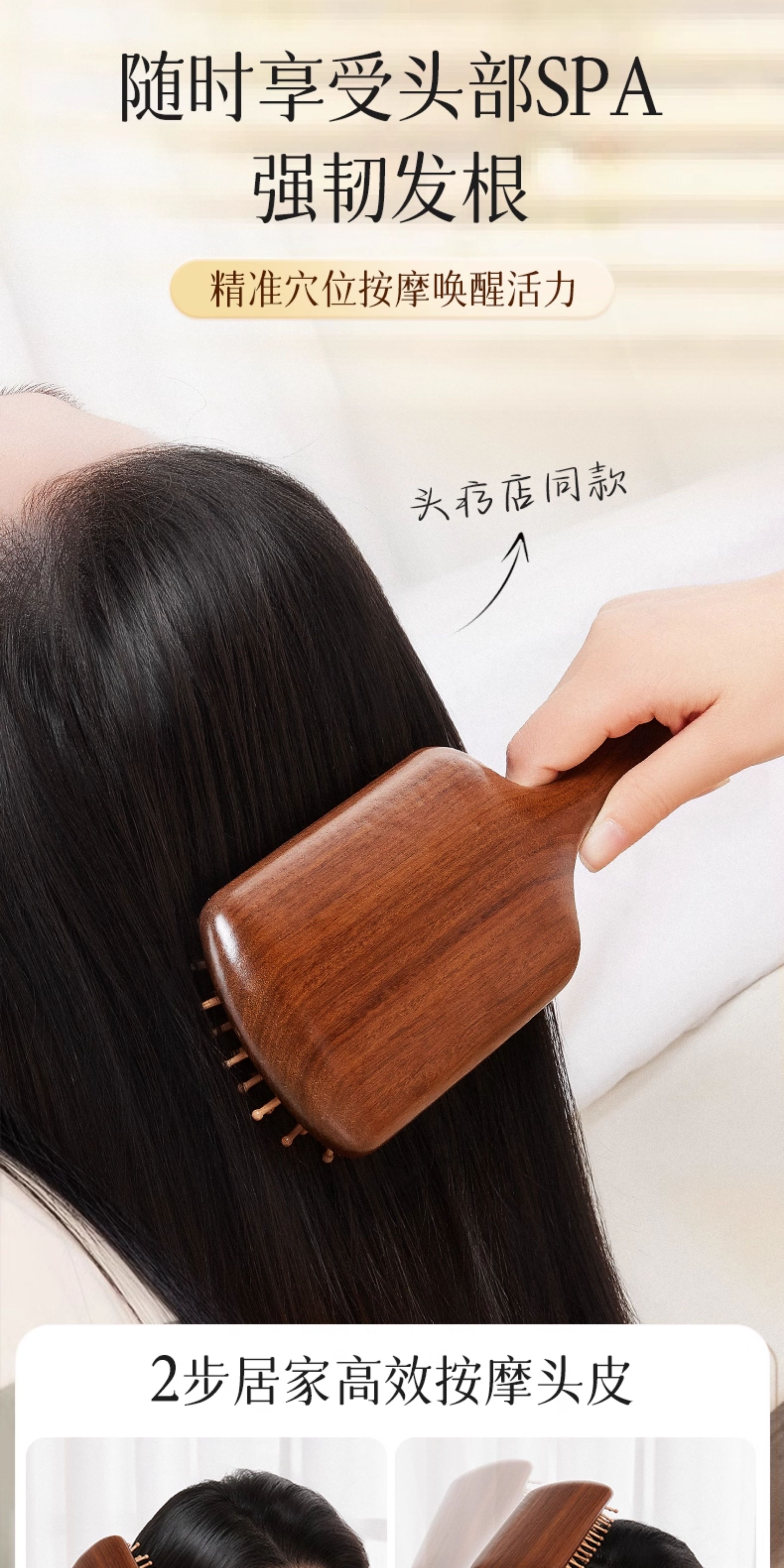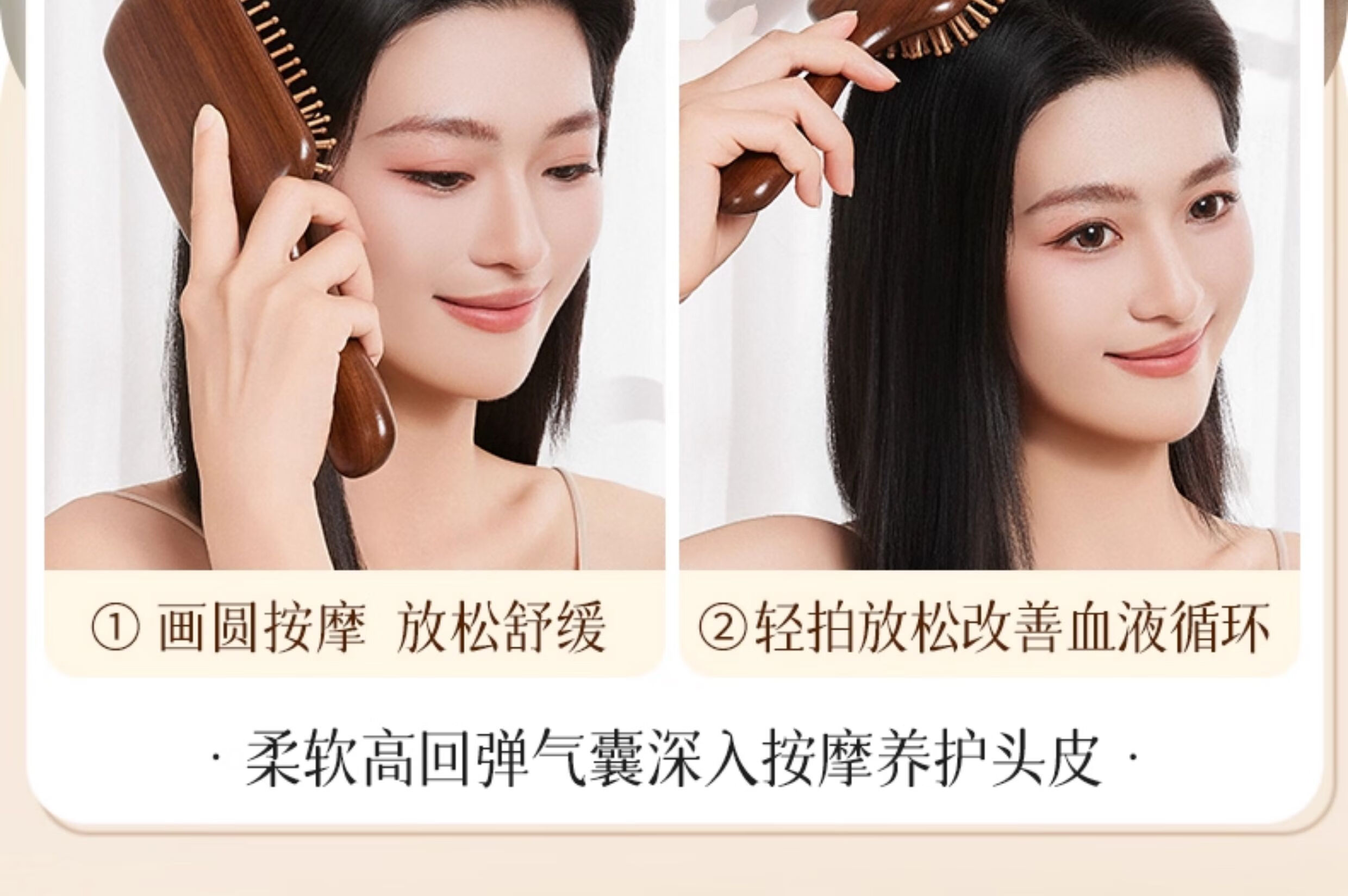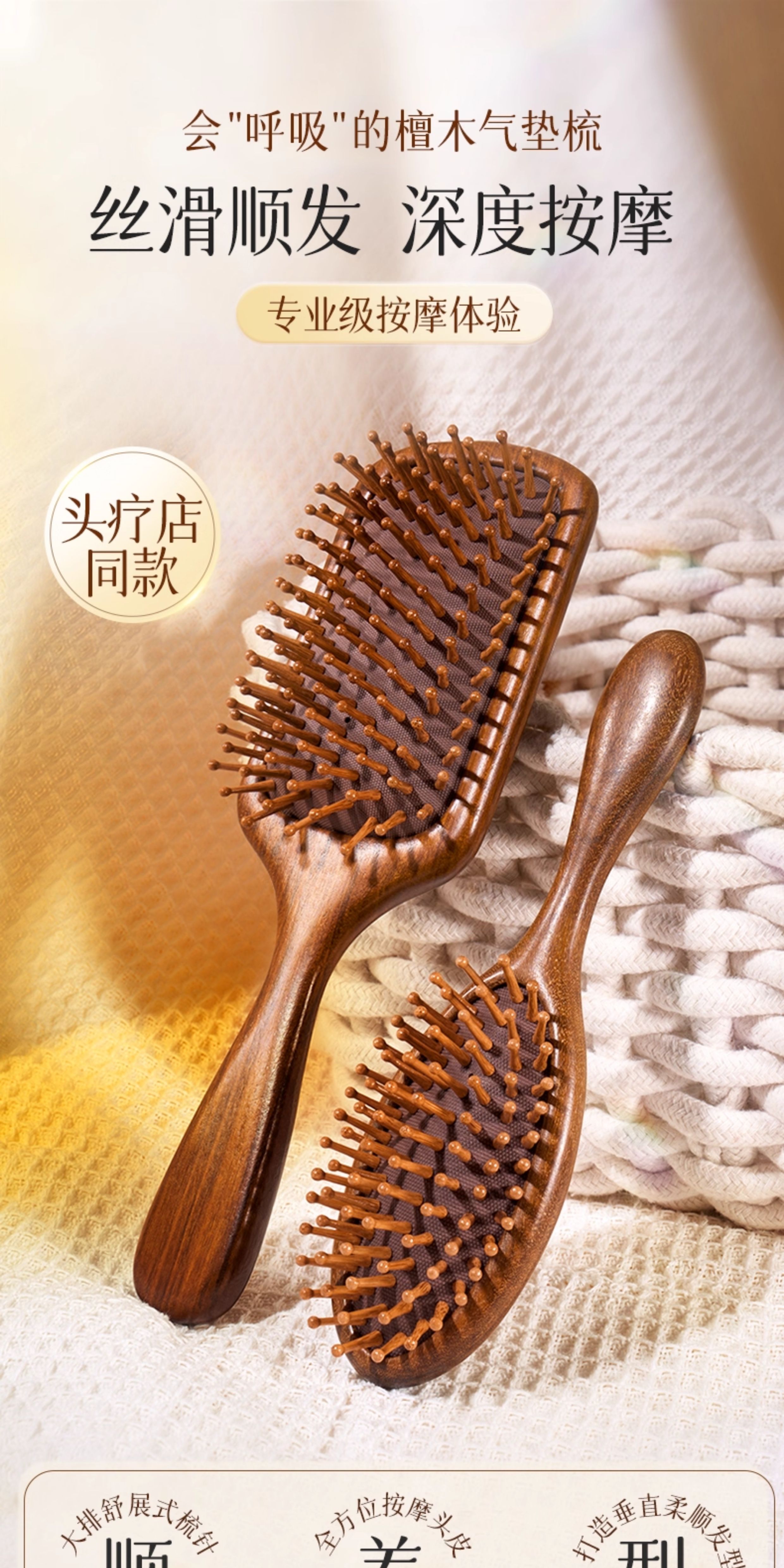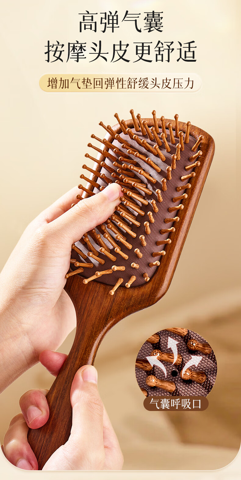 High-quality sandalwood air cushion comb for men and women, scalp massage and meridian dredge, household anti-static fluffy skull comb, smooth with just one comb. Selected red sandalwood round style.