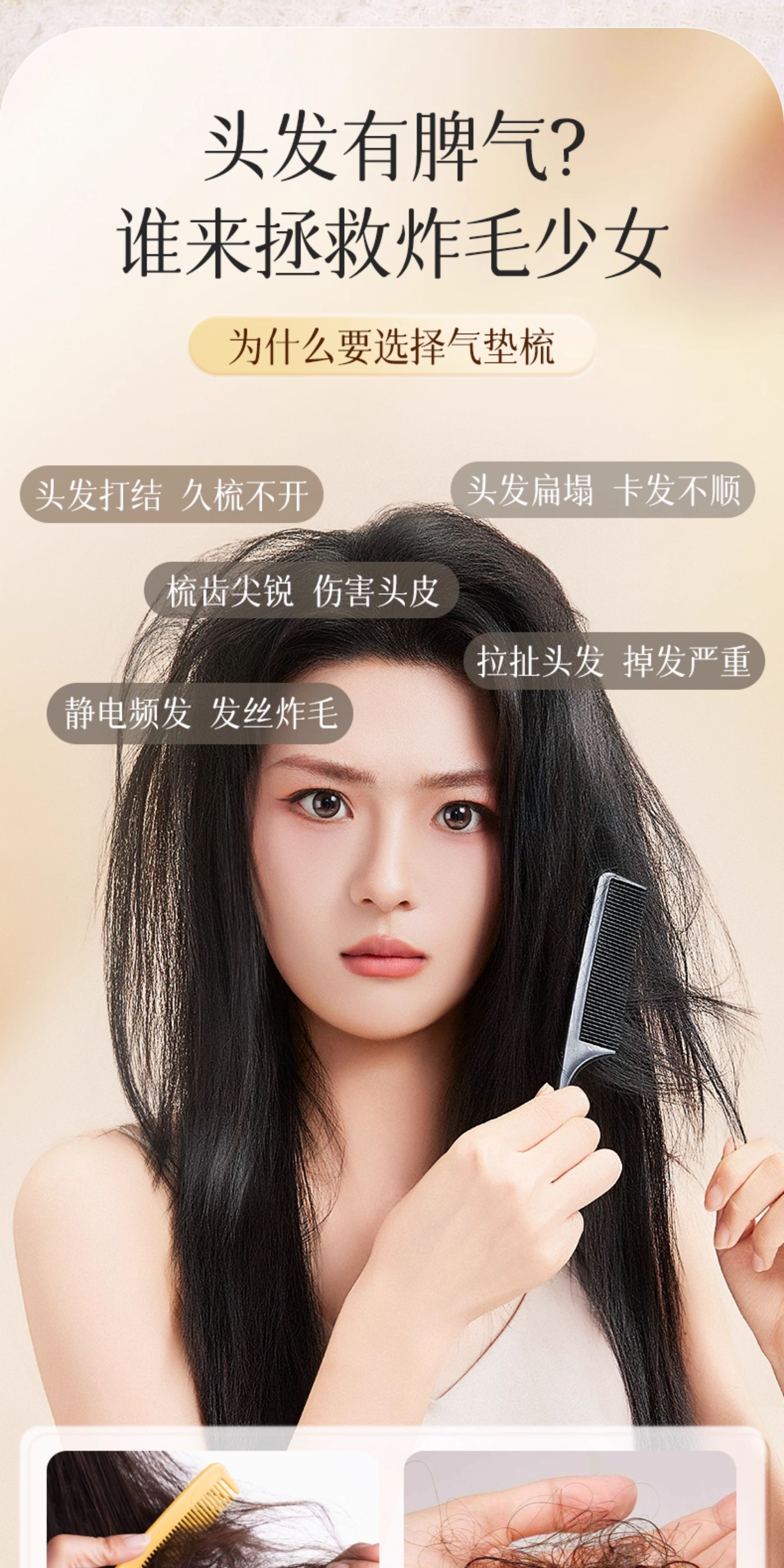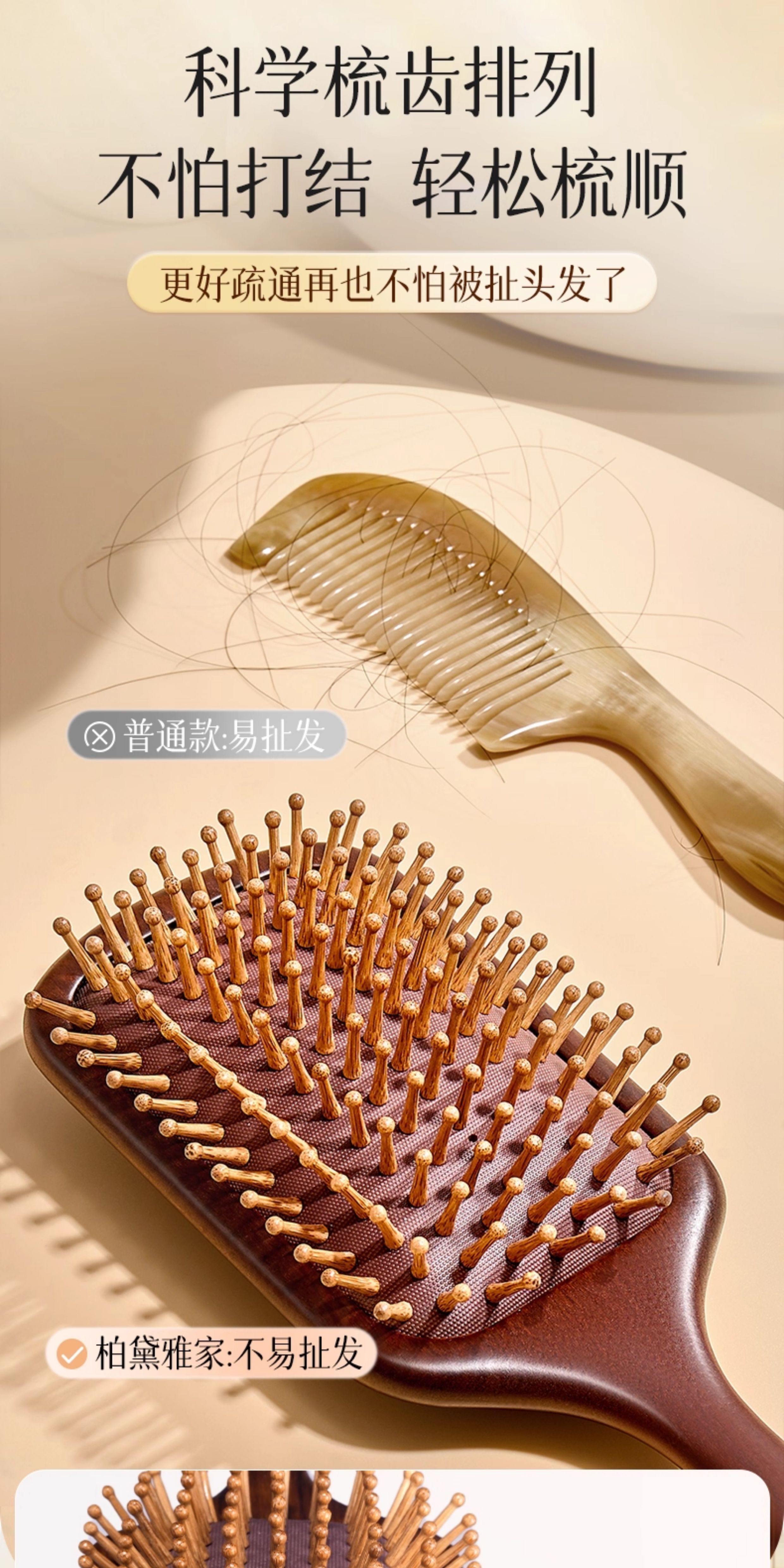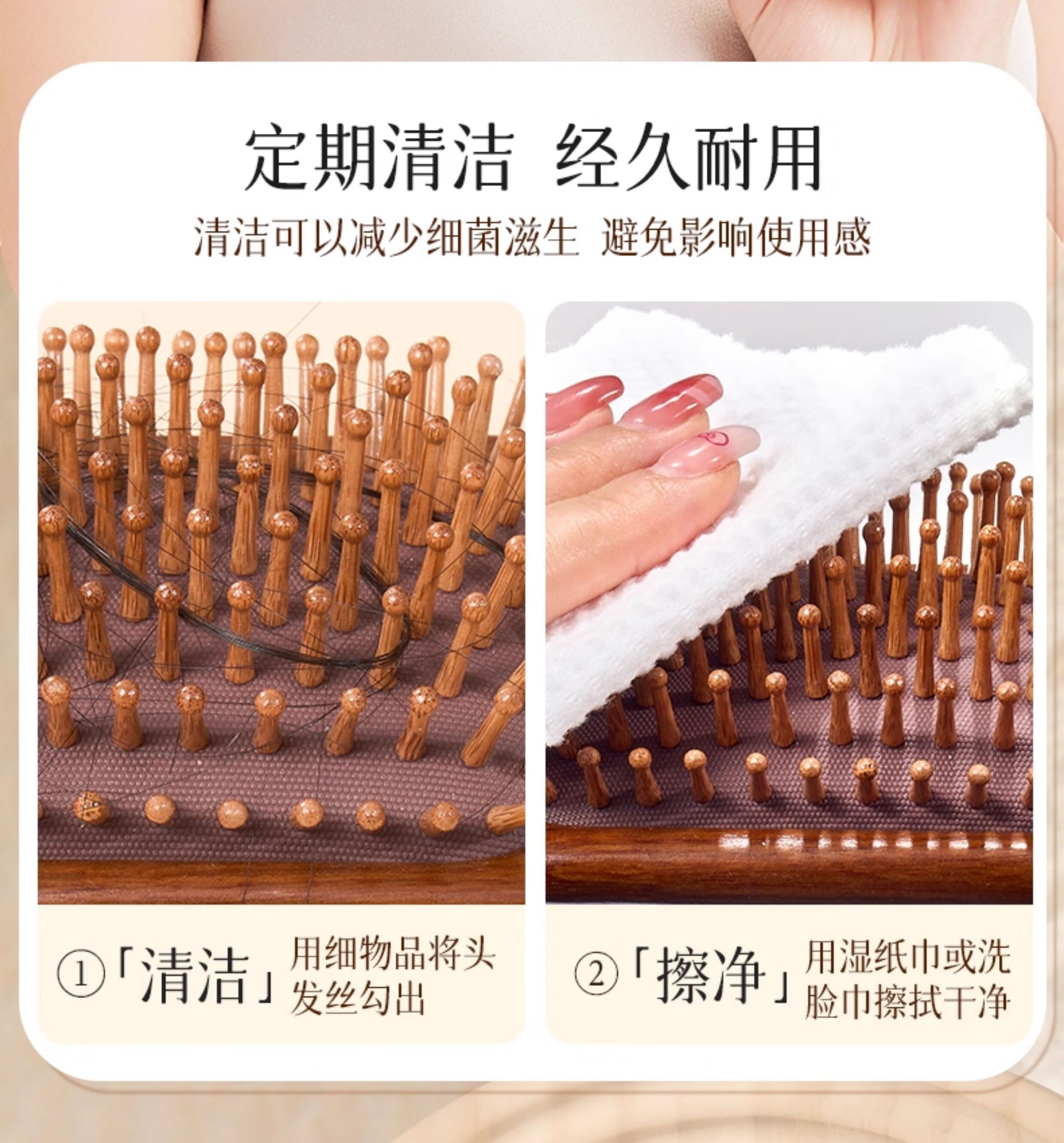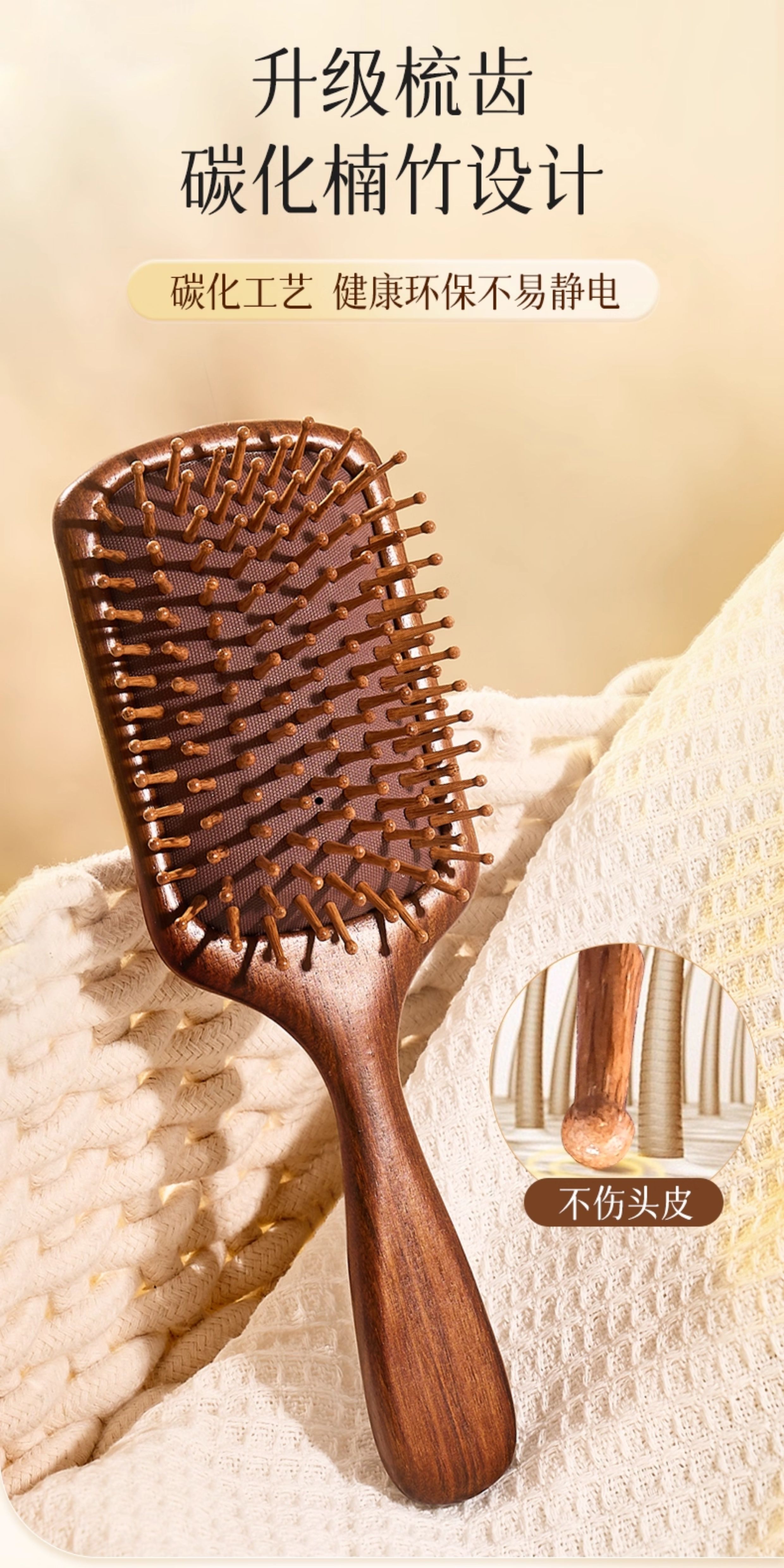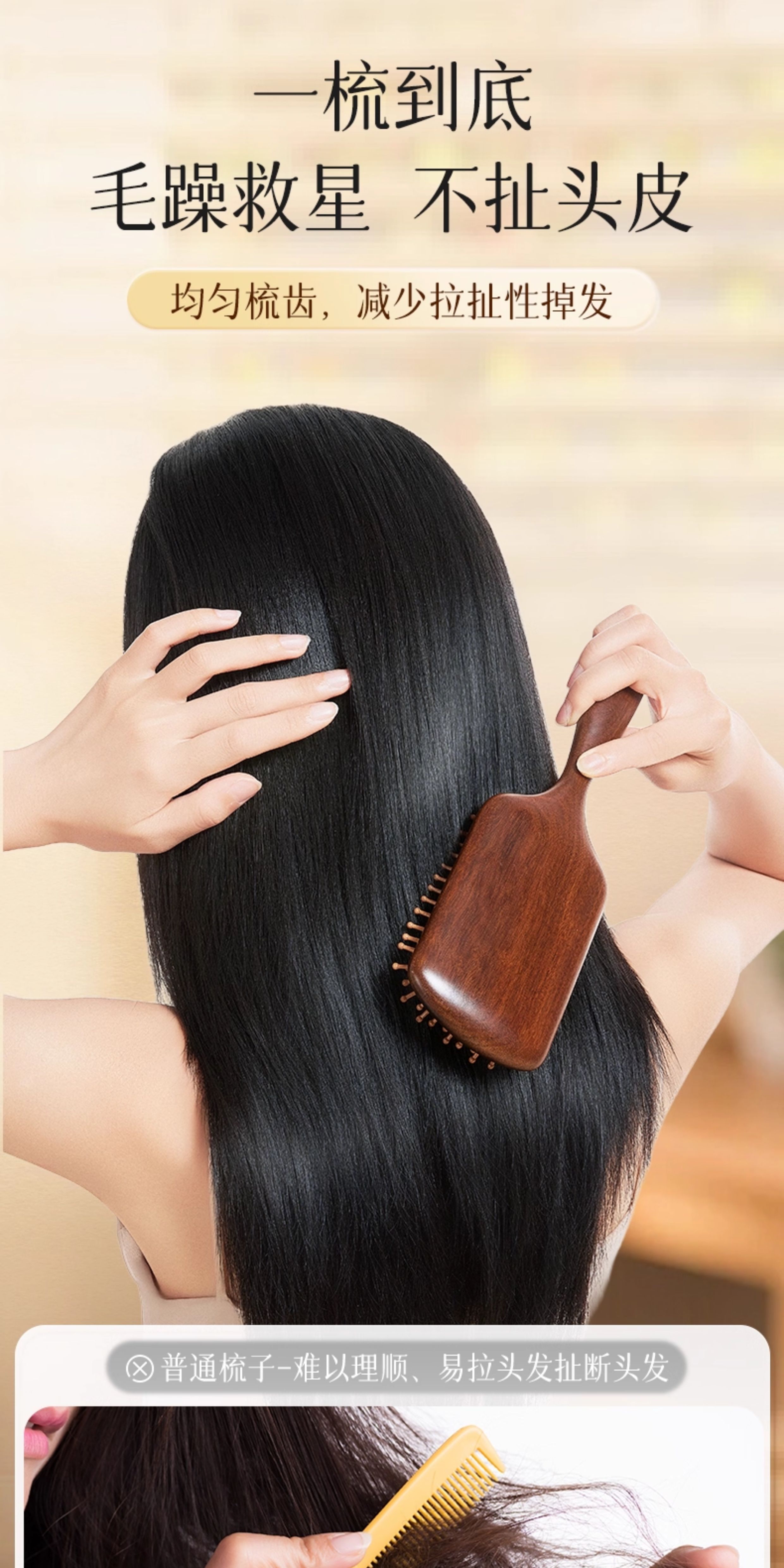 High-quality sandalwood air cushion comb for men and women, scalp massage and meridian dredge, household anti-static fluffy skull comb, smooth with just one comb. Selected red sandalwood round style.
