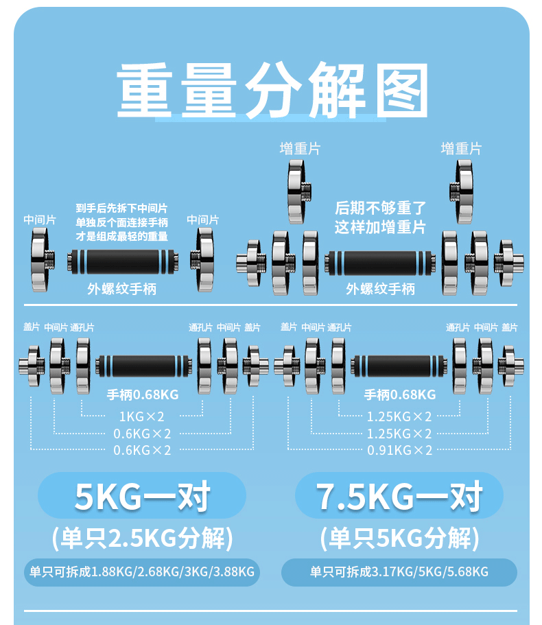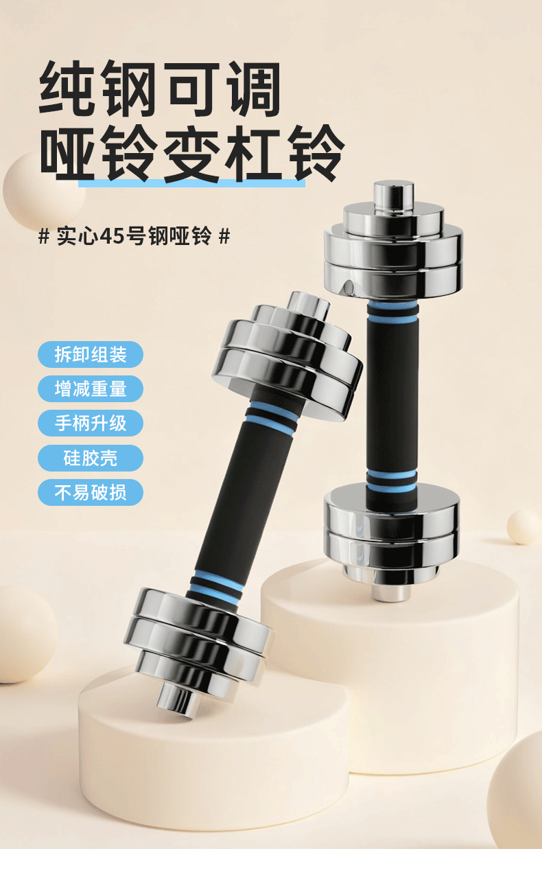 Pure steel dumbbells detachable for men's fitness home electroplating adjustable weight combination non-slip solid arm muscle training special edition 3kg*2 no adjustment function
