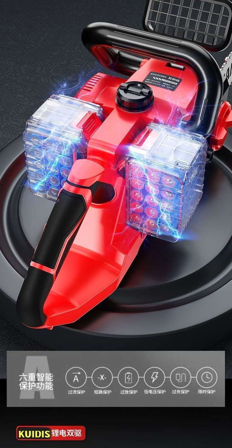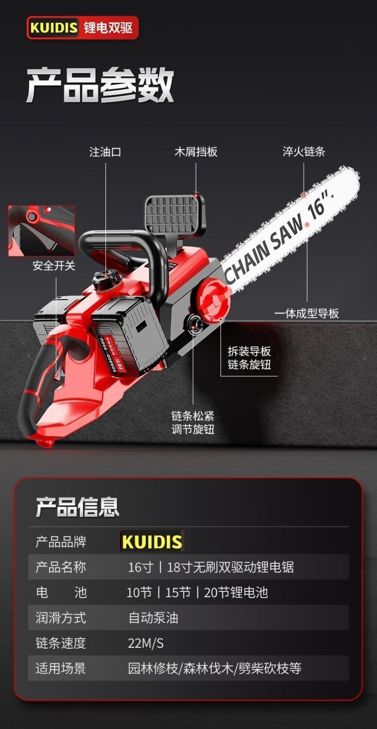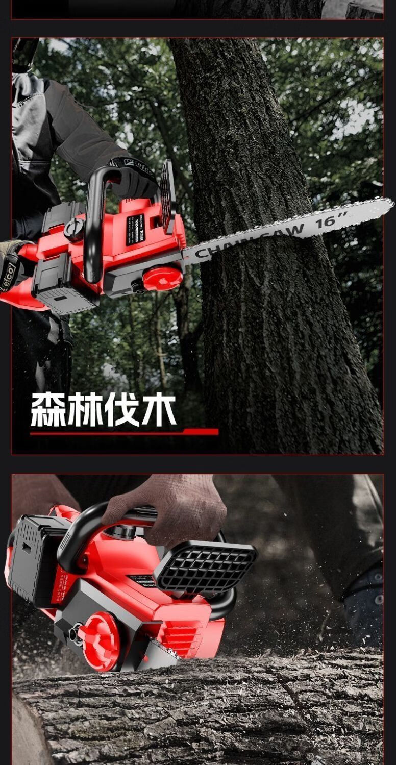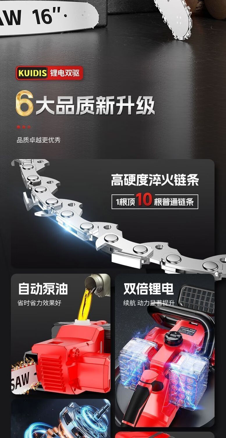 High-end electric chainsaw rechargeable high-power lithium-electric chain saw dual-drive multi-functional portable lithium electric chain saw felling saw high-end dual-core drive-16 inches high power-20 sections 2 electric 2 chains