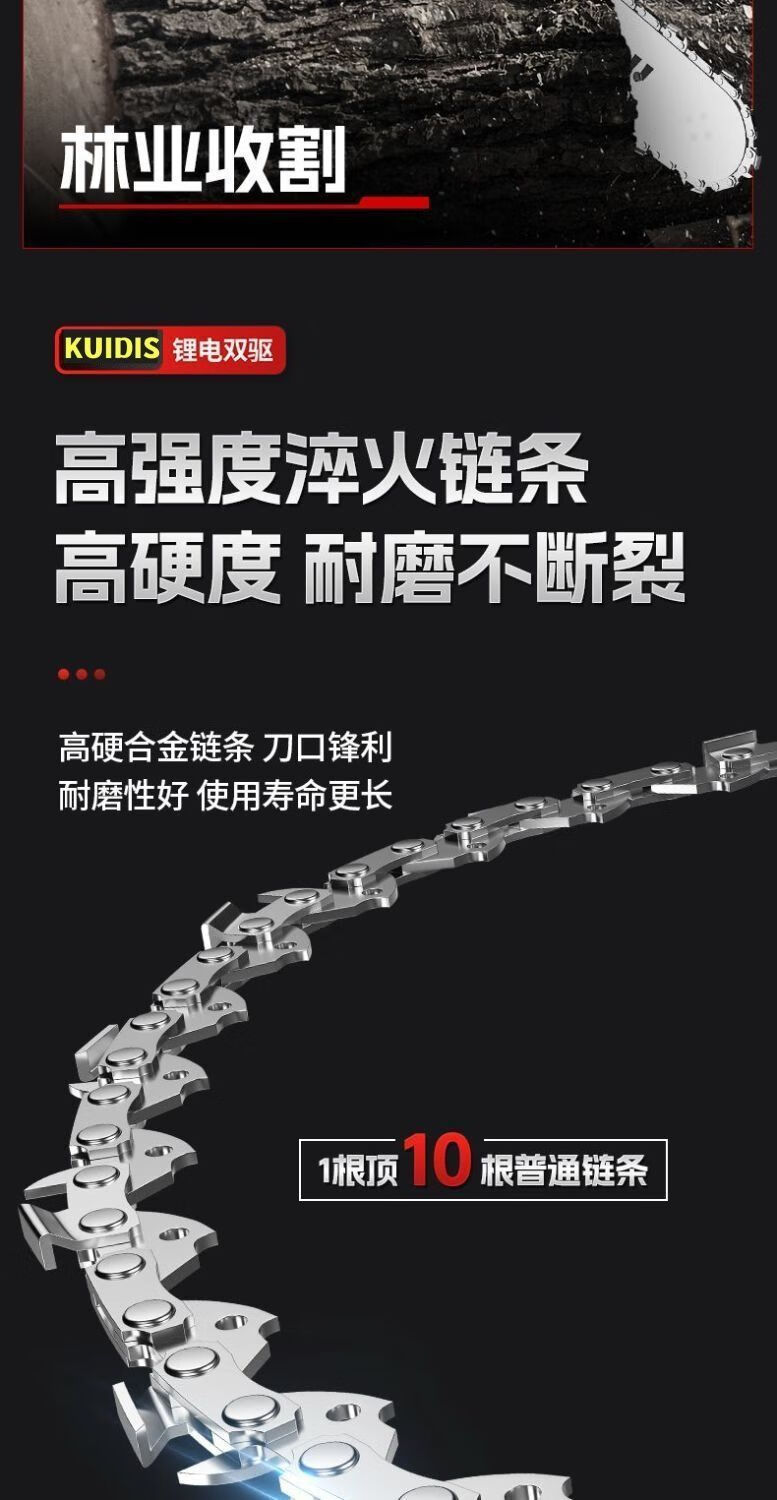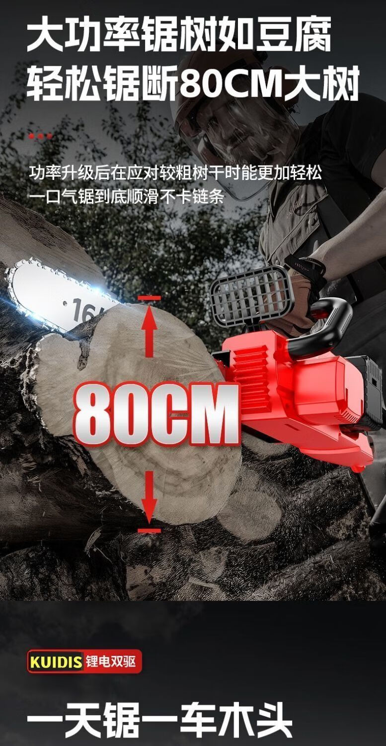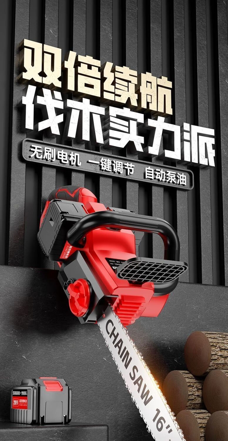 High-end electric chainsaw rechargeable high-power lithium-electric chain saw dual-drive multi-functional portable lithium electric chain saw felling saw high-end dual-core drive-16 inches high power-20 sections 2 electric 2 chains
