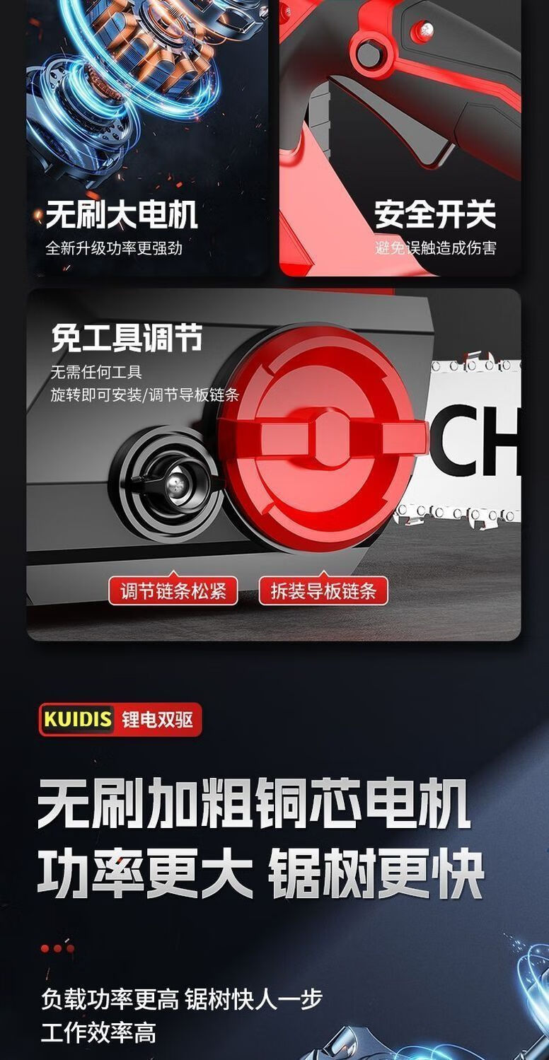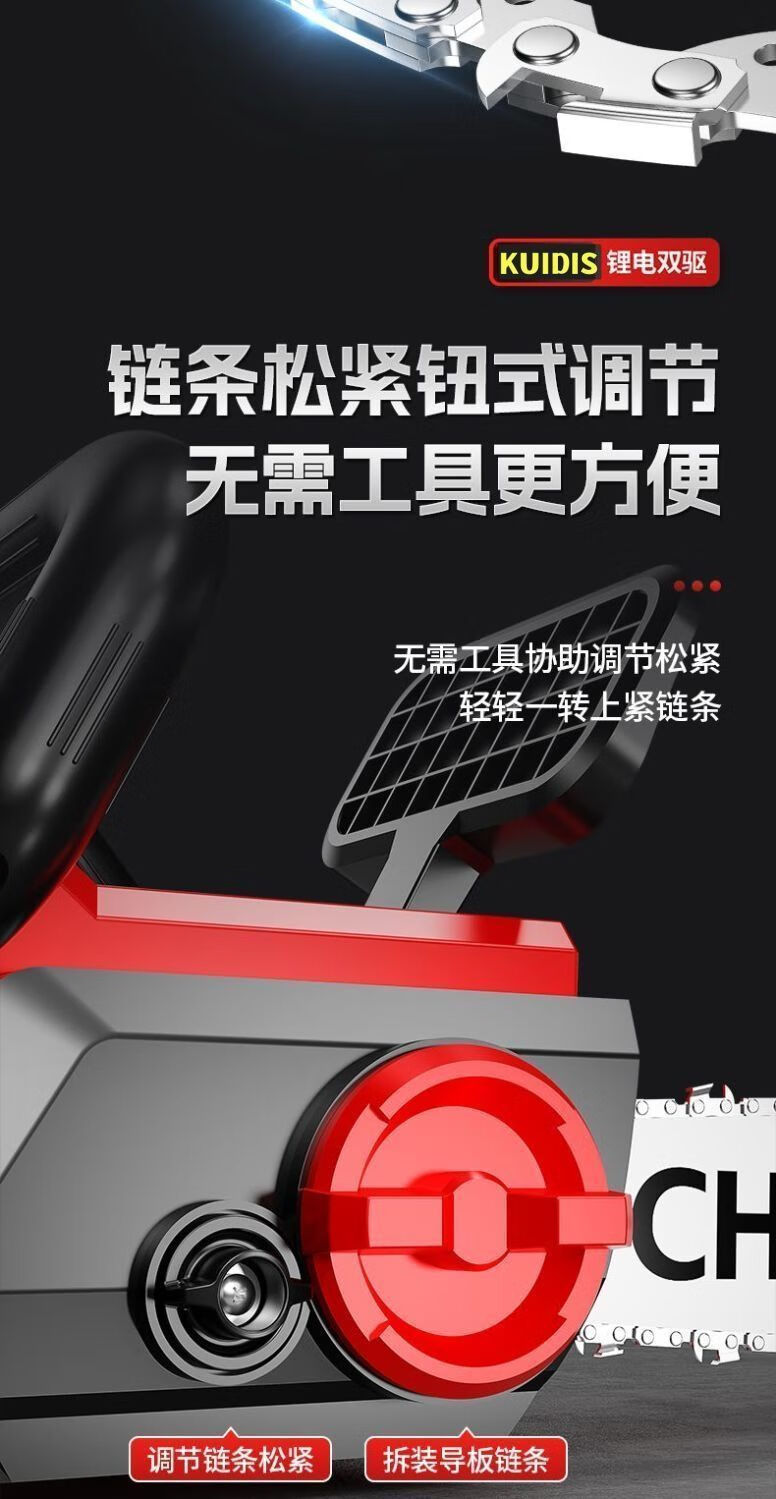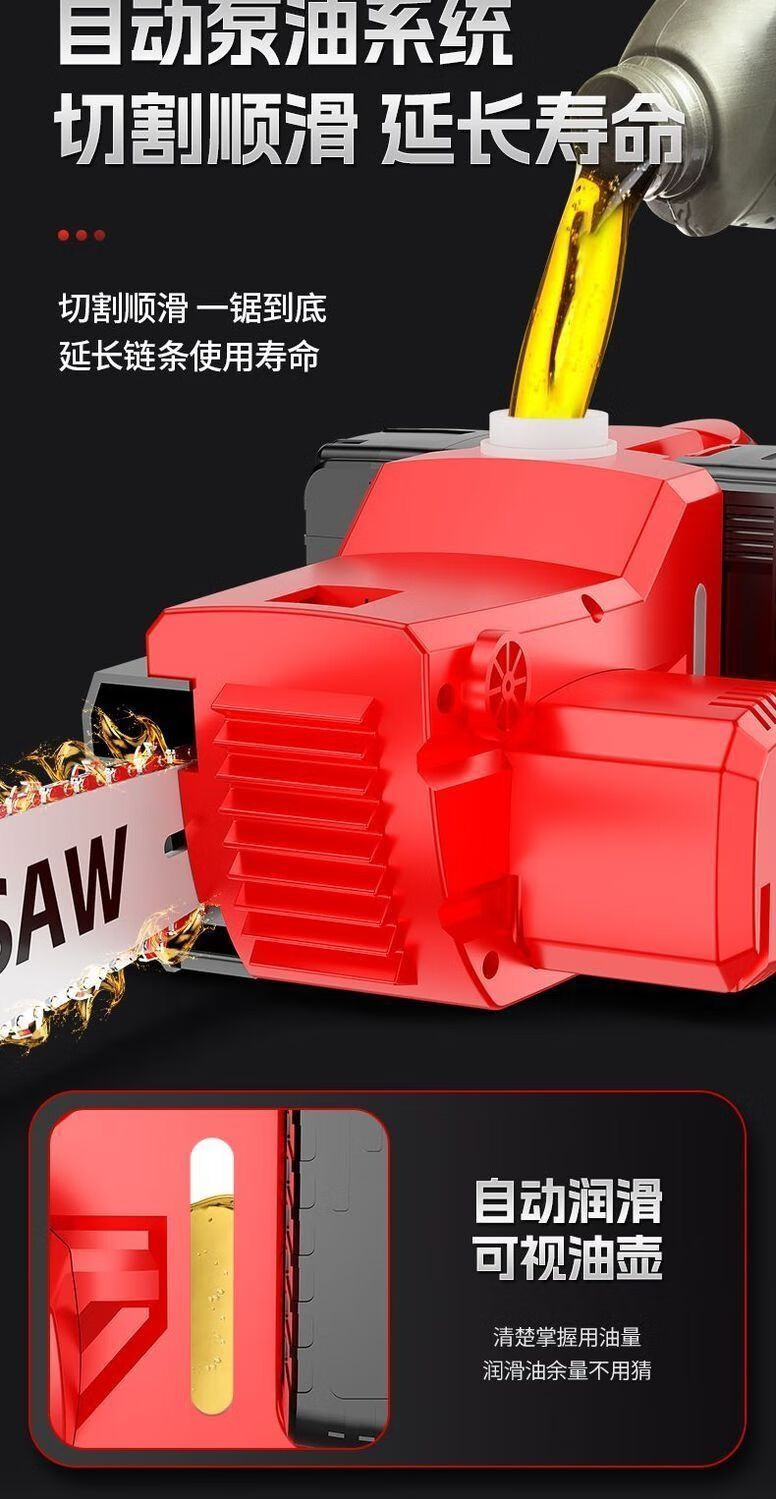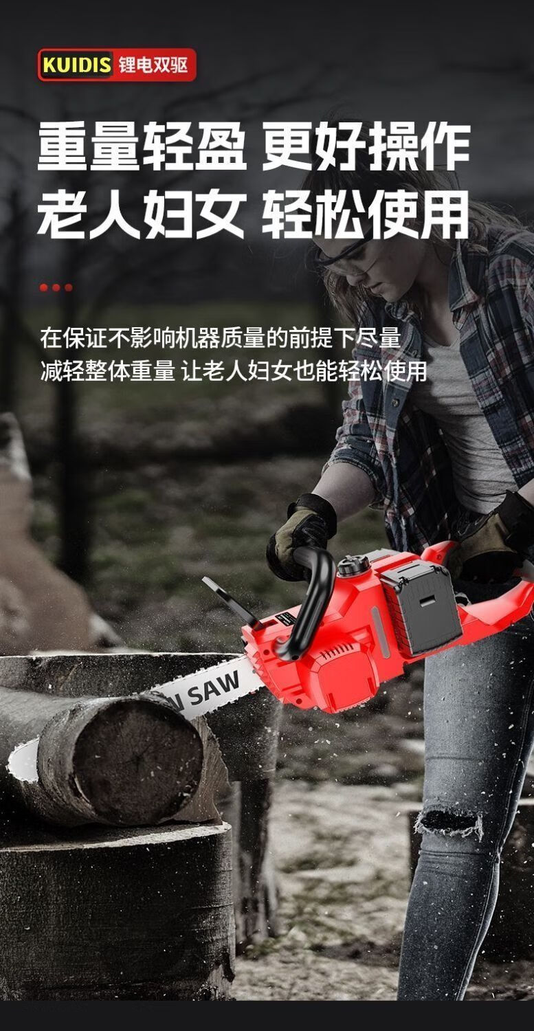 High-end electric chainsaw rechargeable high-power lithium-electric chain saw dual-drive multi-functional portable lithium electric chain saw felling saw high-end dual-core drive-16 inches high power-20 sections 2 electric 2 chains