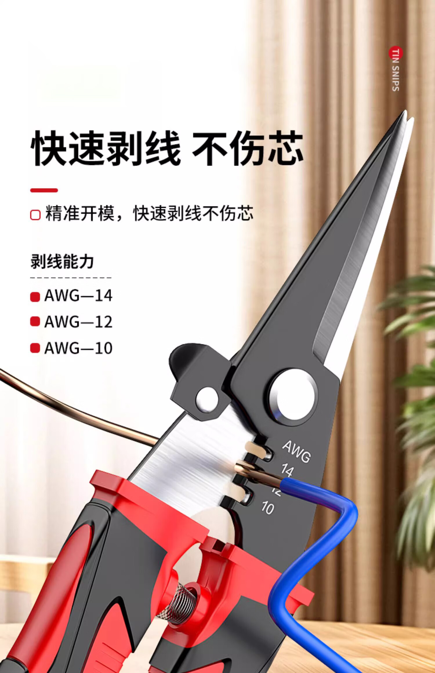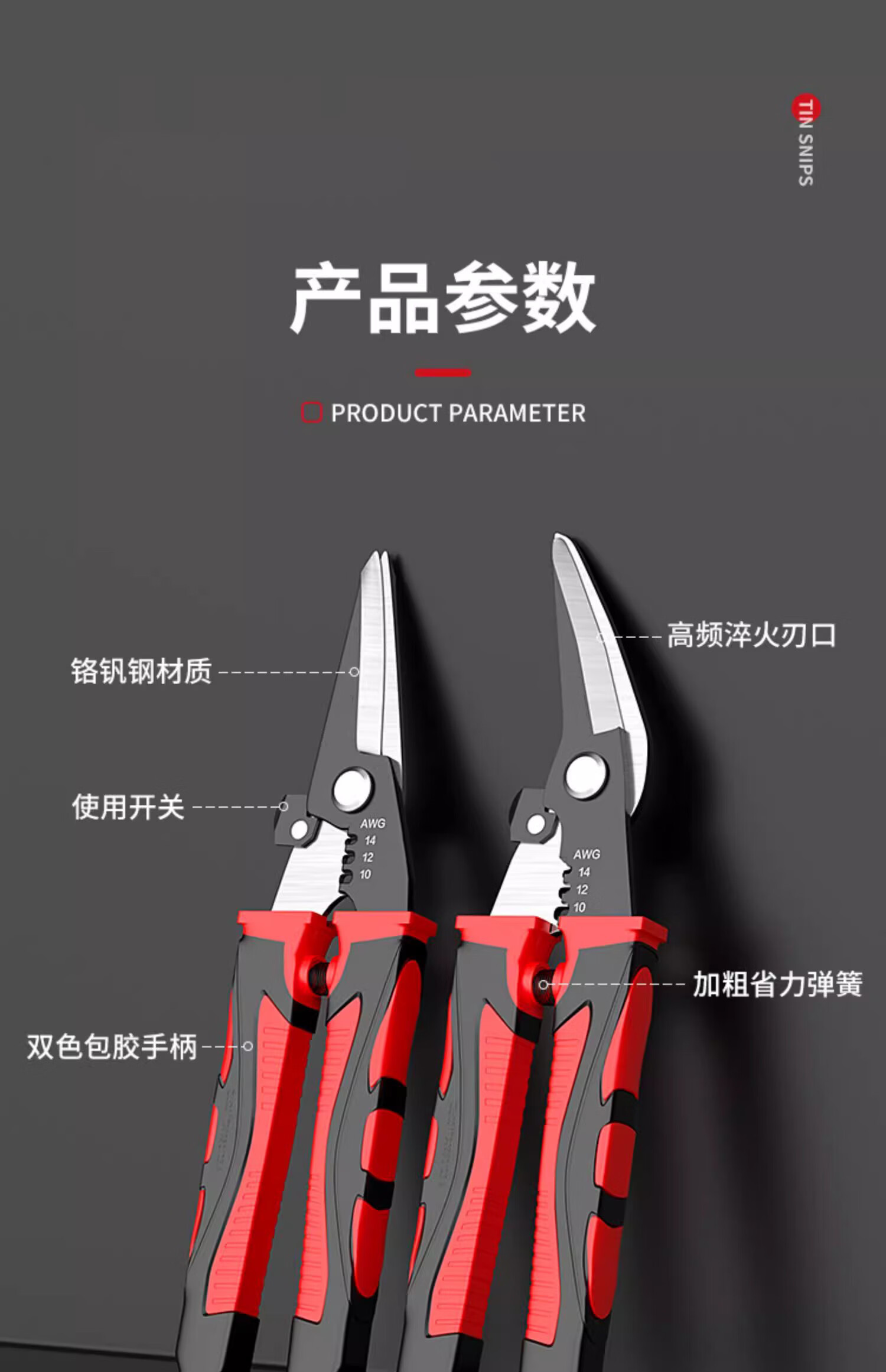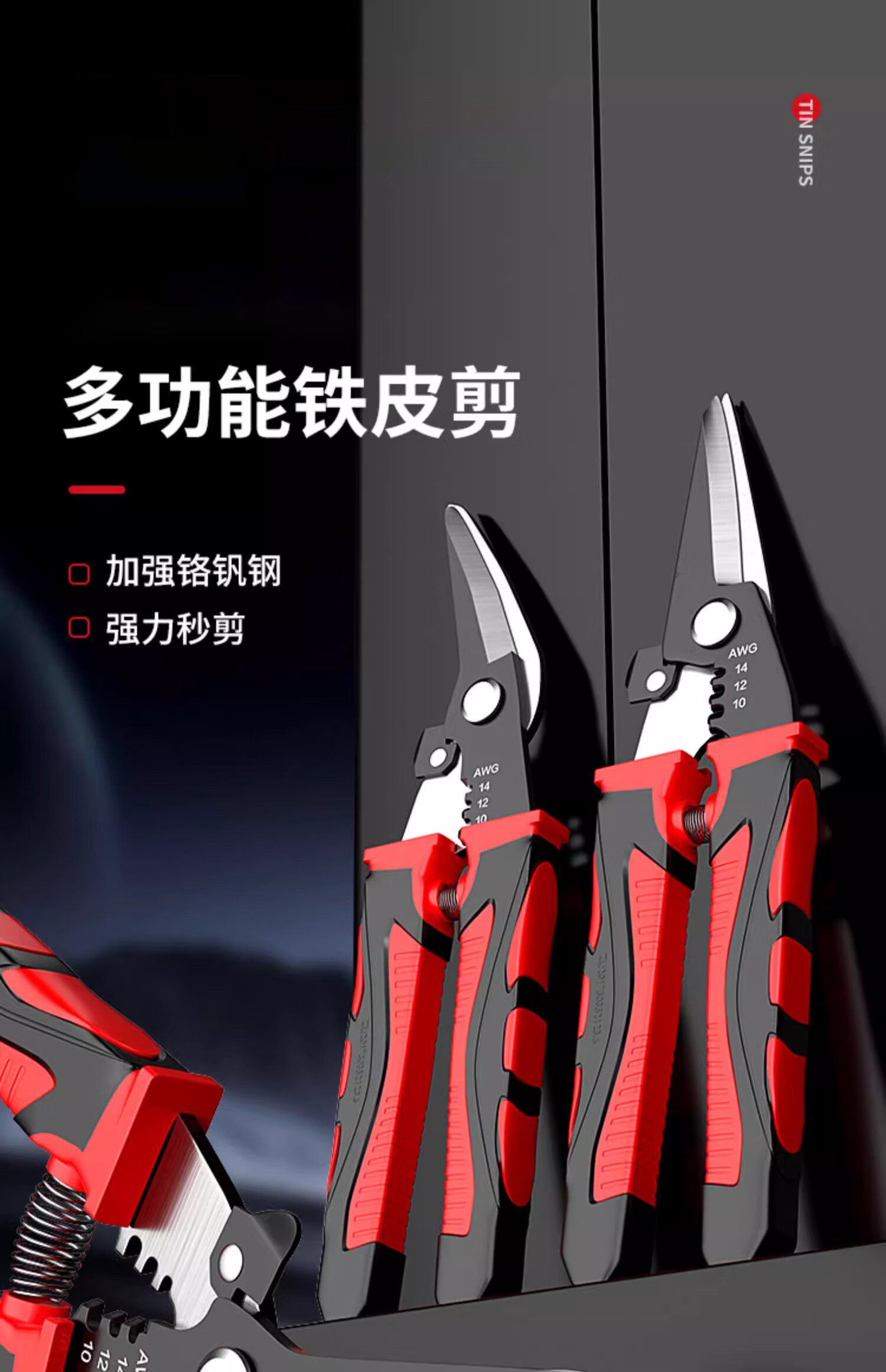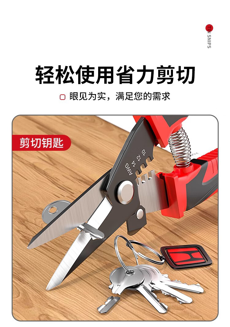 Iron sheet scissors, powerful multi-functional iron sheet scissors, wire trough shears, stainless steel strip scissors, iron sheet shears, colored steel tile industrial scissors, strippable wire straight iron sheet scissors (1 set)
