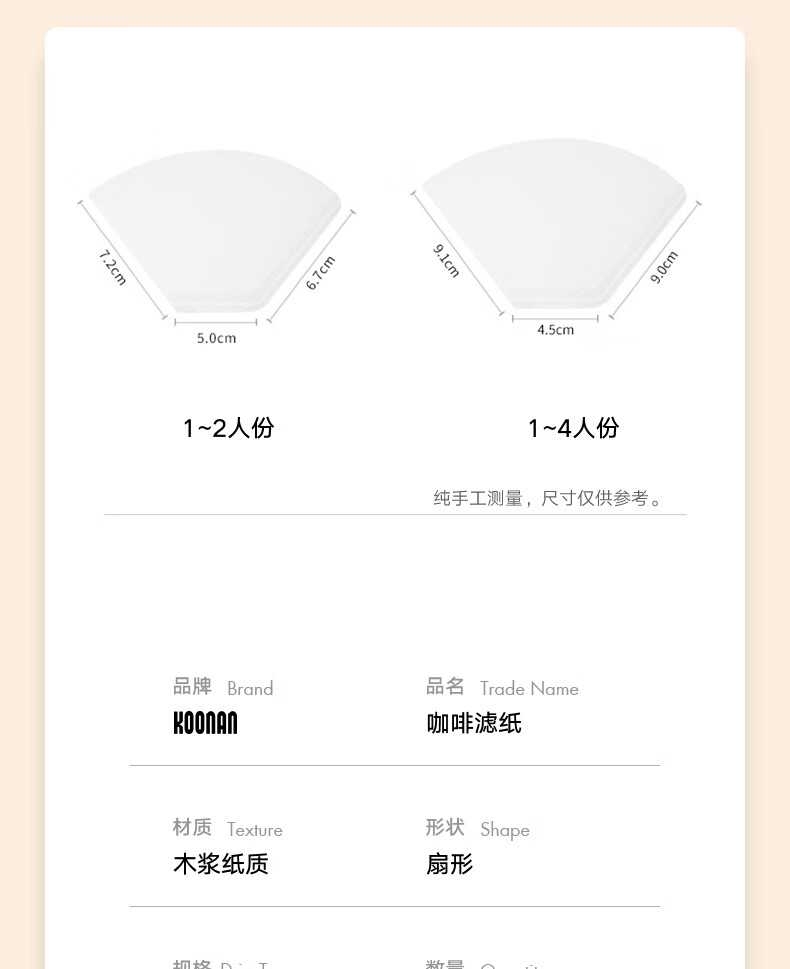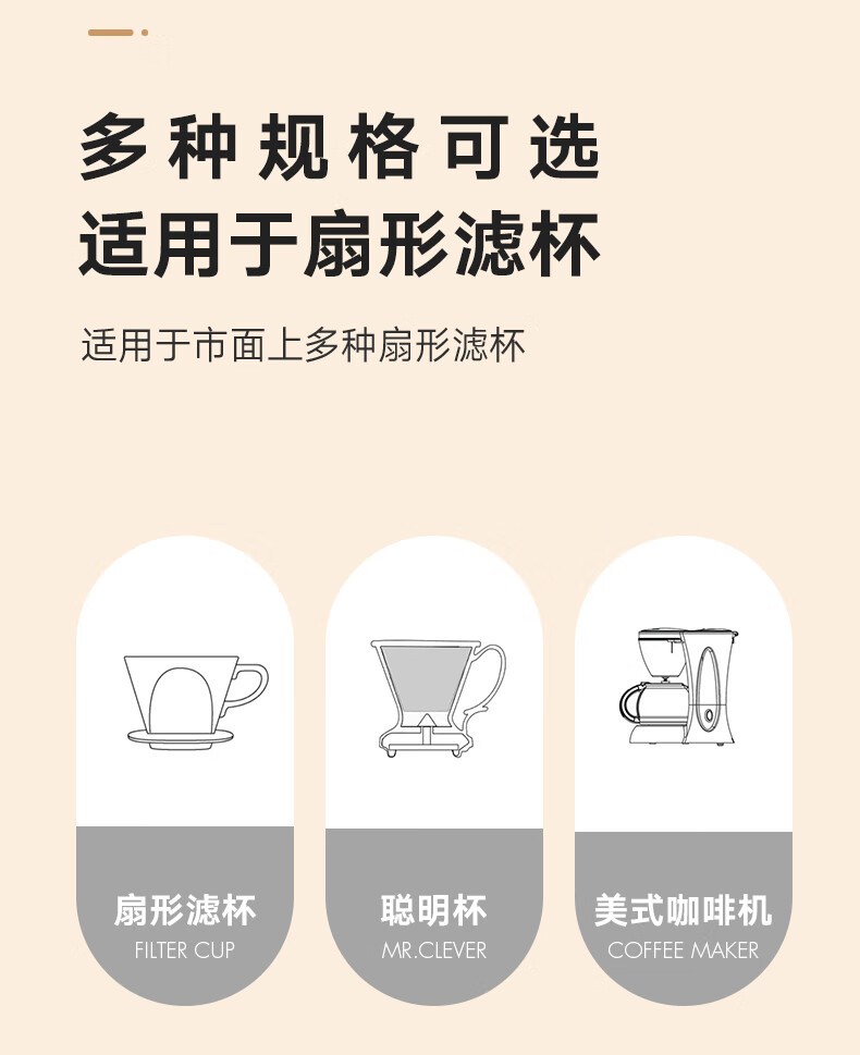 XJkoonan coffee filter paper hand-pour pot coffee filter household drip type fan-shaped American coffee machine filter 102 boxed without bleaching
