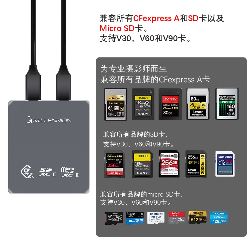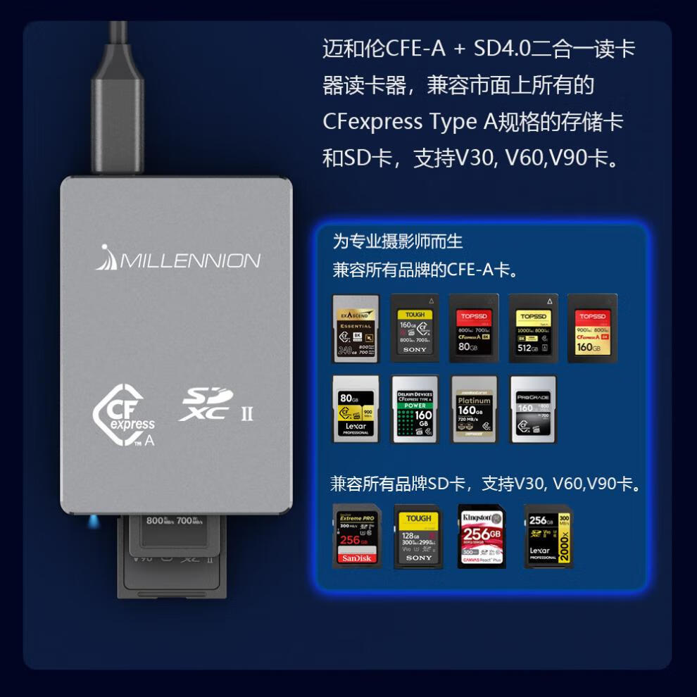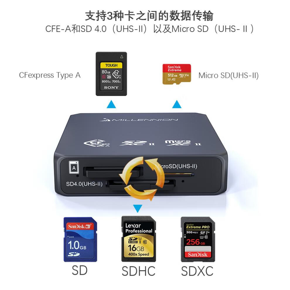 Maiheran cfa three-in-one CFexpress Type A/SD/TF card reader USB 10G adapts to a7m4 three-in-one card reader) suitable for CFB+SD+TF USB3.2 Gen 2
