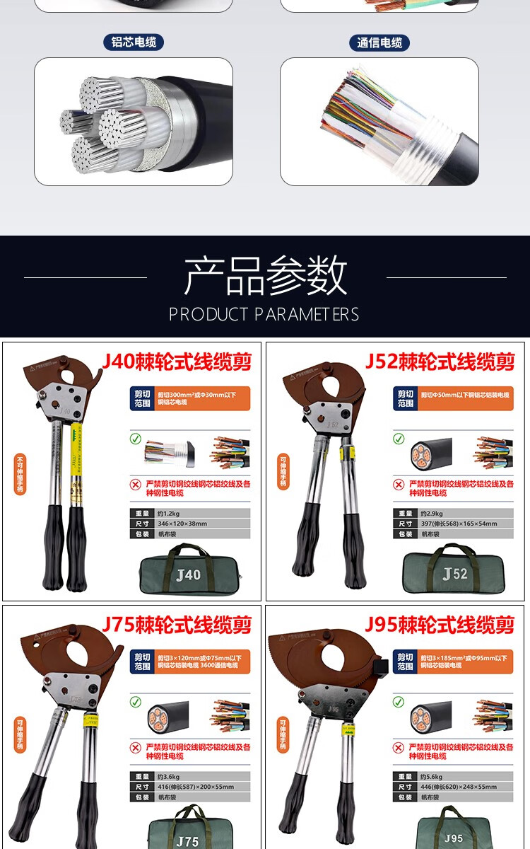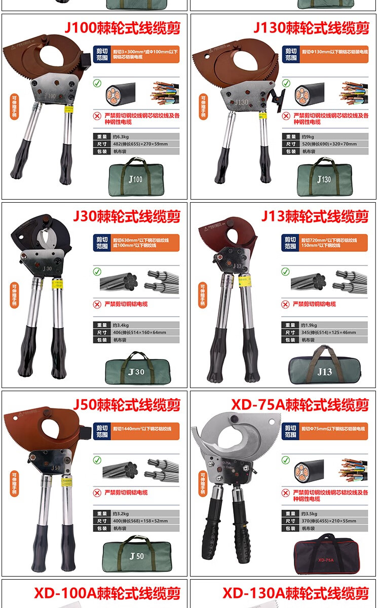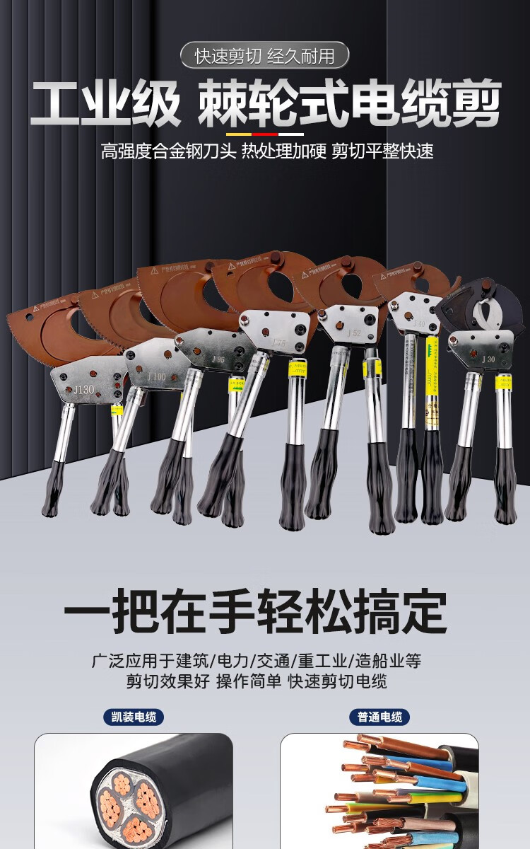 Cable cutter J40J52J30J75J95J100 gear cutter Copper and aluminum cable ratchet cutter J75 (cutting 75mm diameter cable