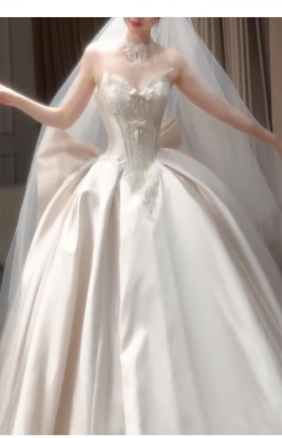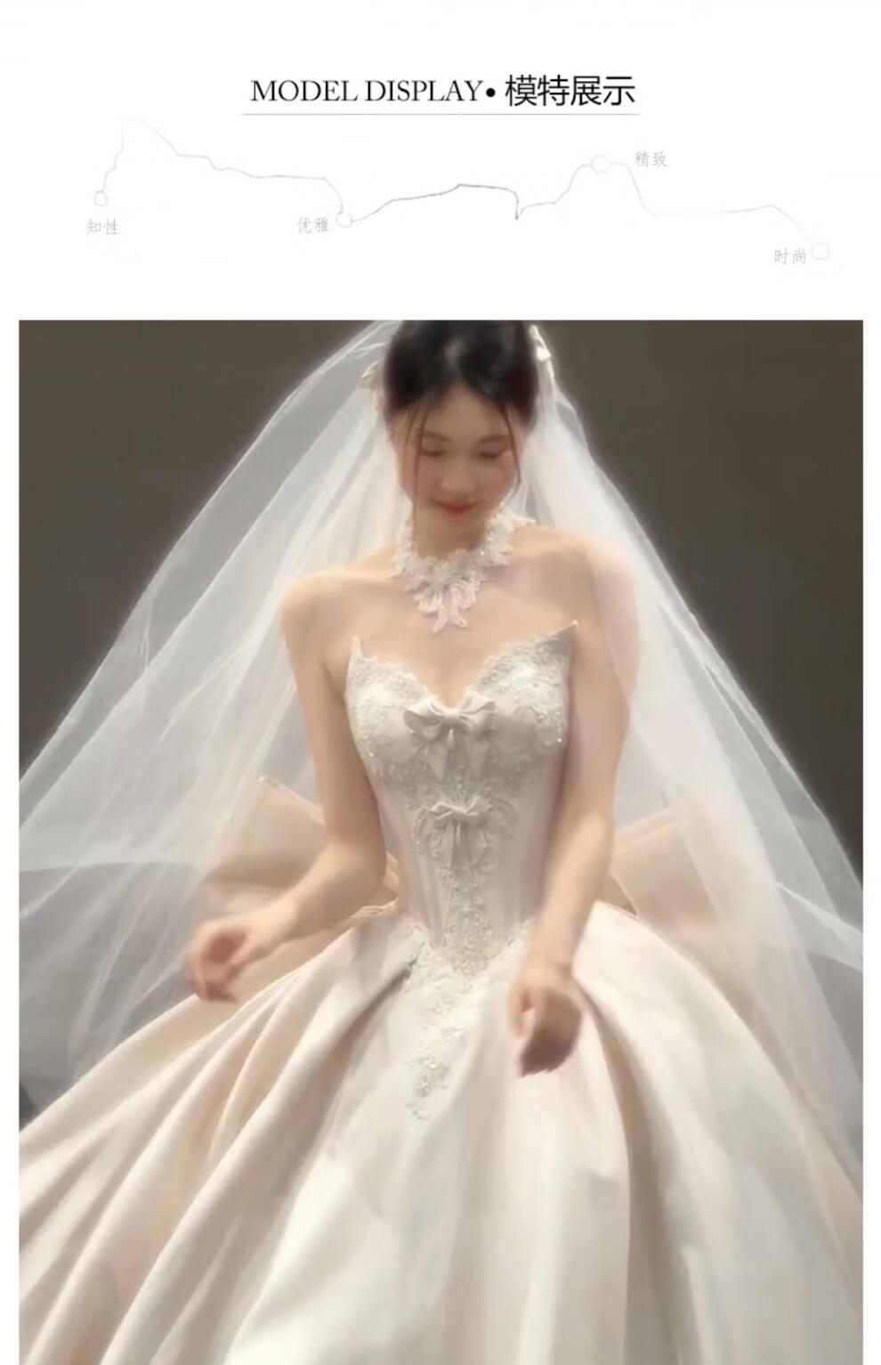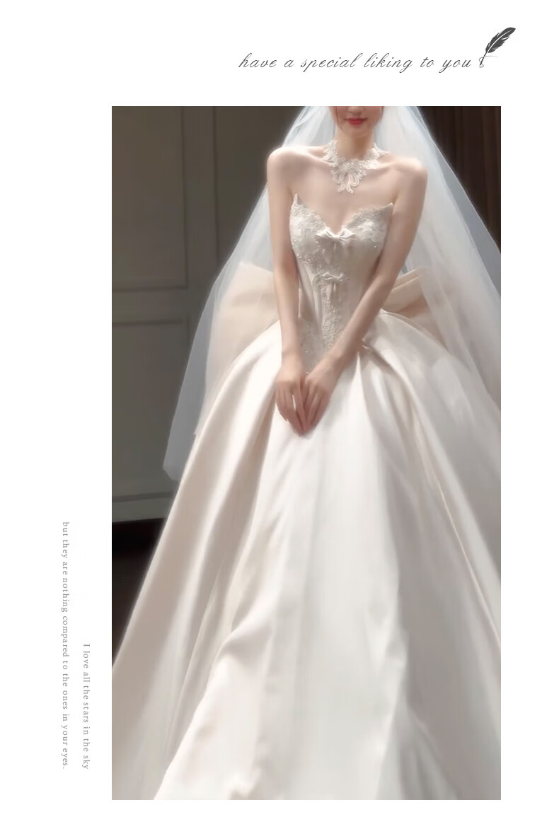 Wutuo wedding dress light gauze French satin tube top 2025 new bridal texture style small heavy industry main yarn white floor-length + vest (plus three-piece set) M