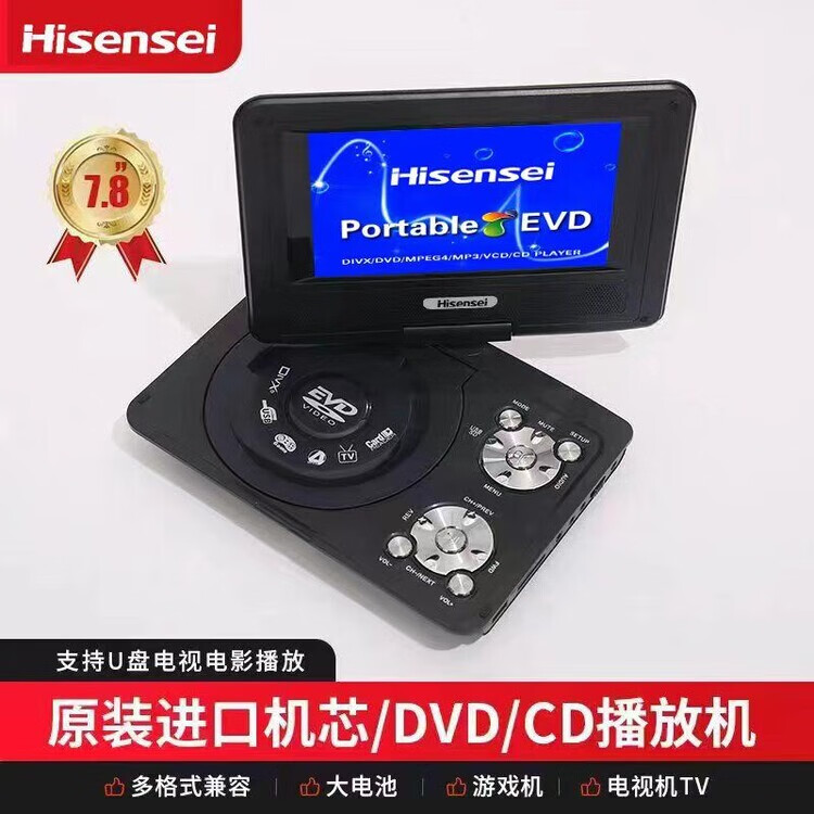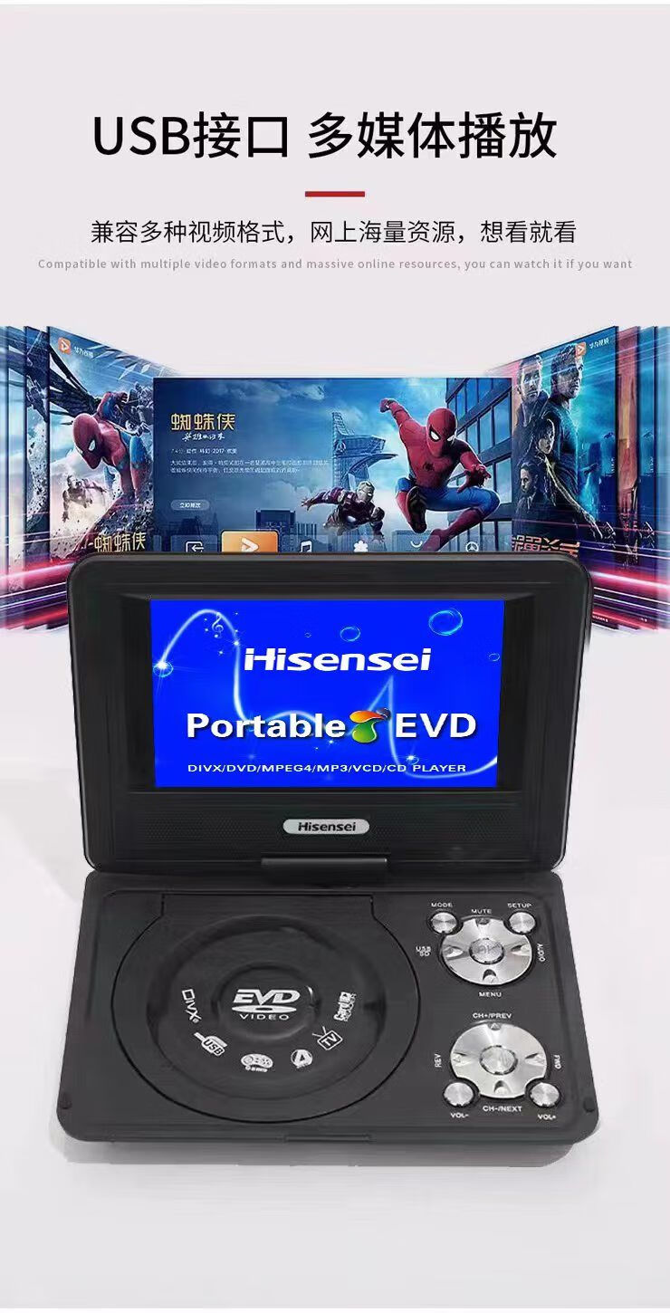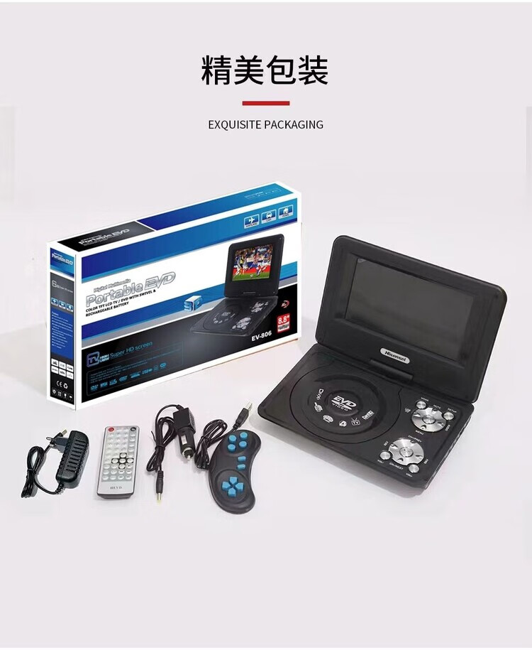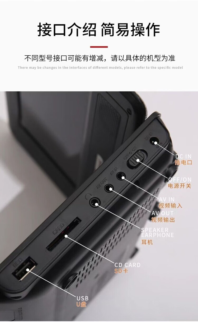 XIXS 7-inch high-definition portable DVD player for the elderly, multi-functional small TV, new folding DVD player, optical disc player, 7-inch screen height 88mm, length 155mm