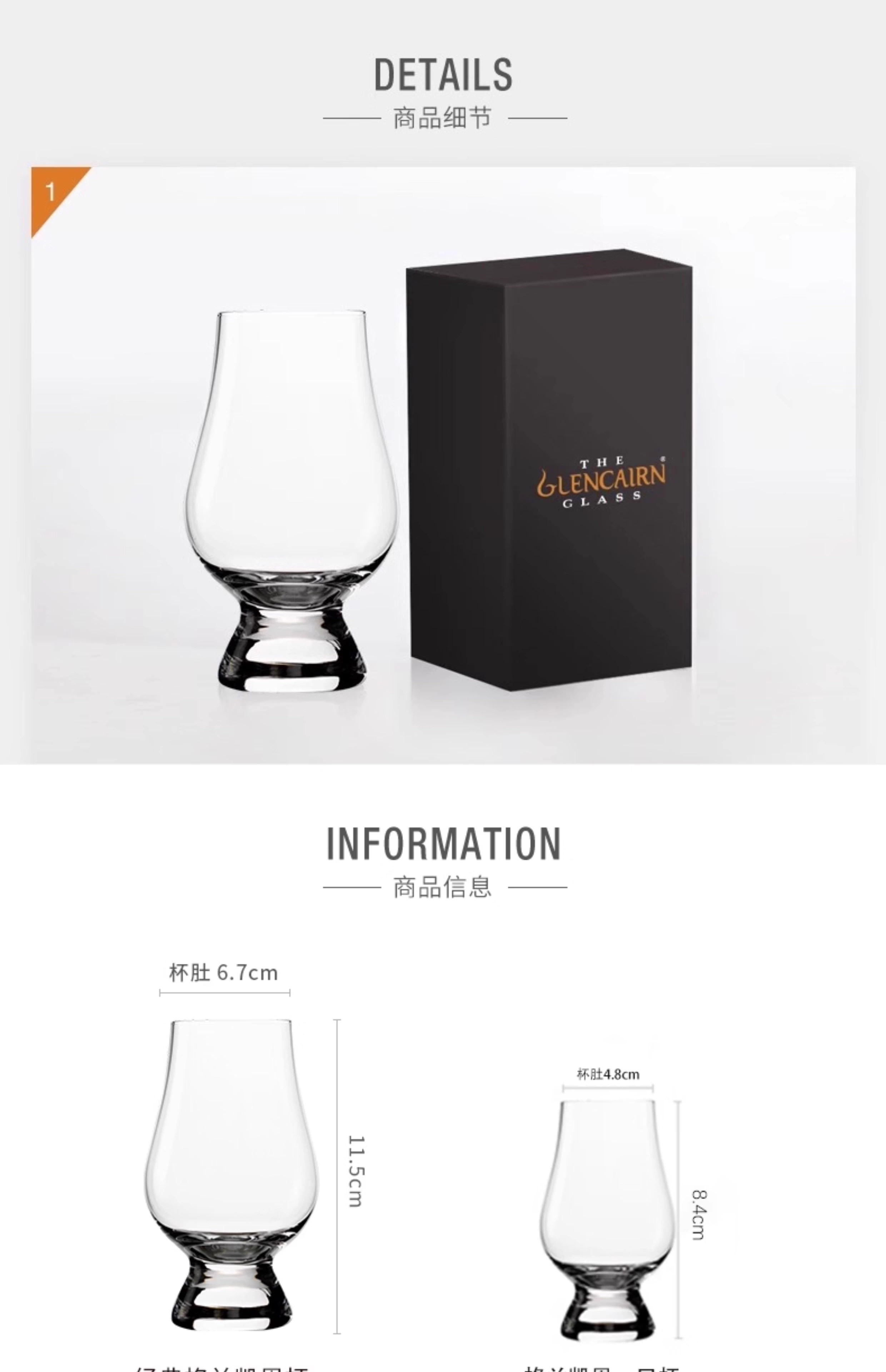 Glencairn imported crystal whiskey glass Glencairn cup professional tasting tulip smelling cup classic whiskey cup 190ml single pack