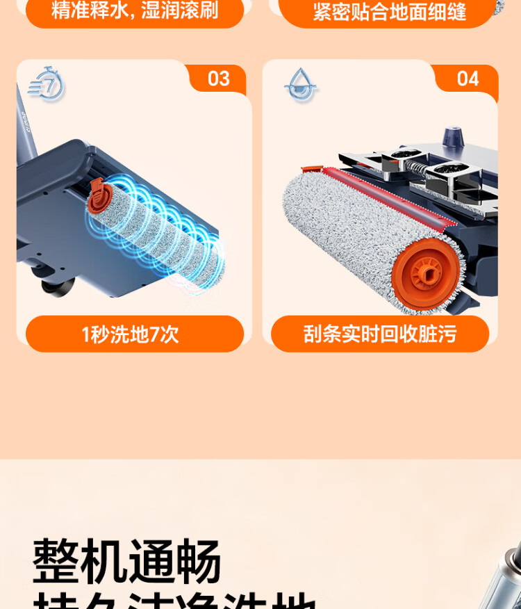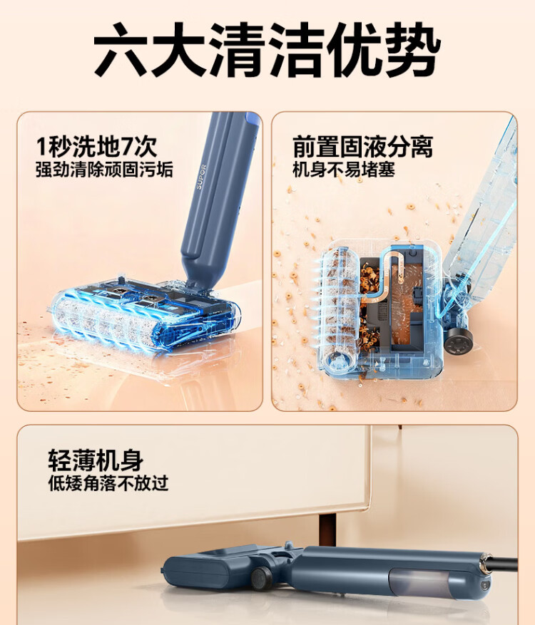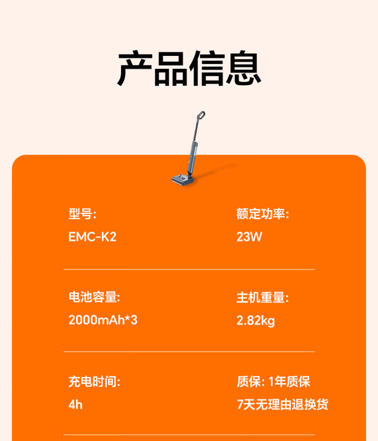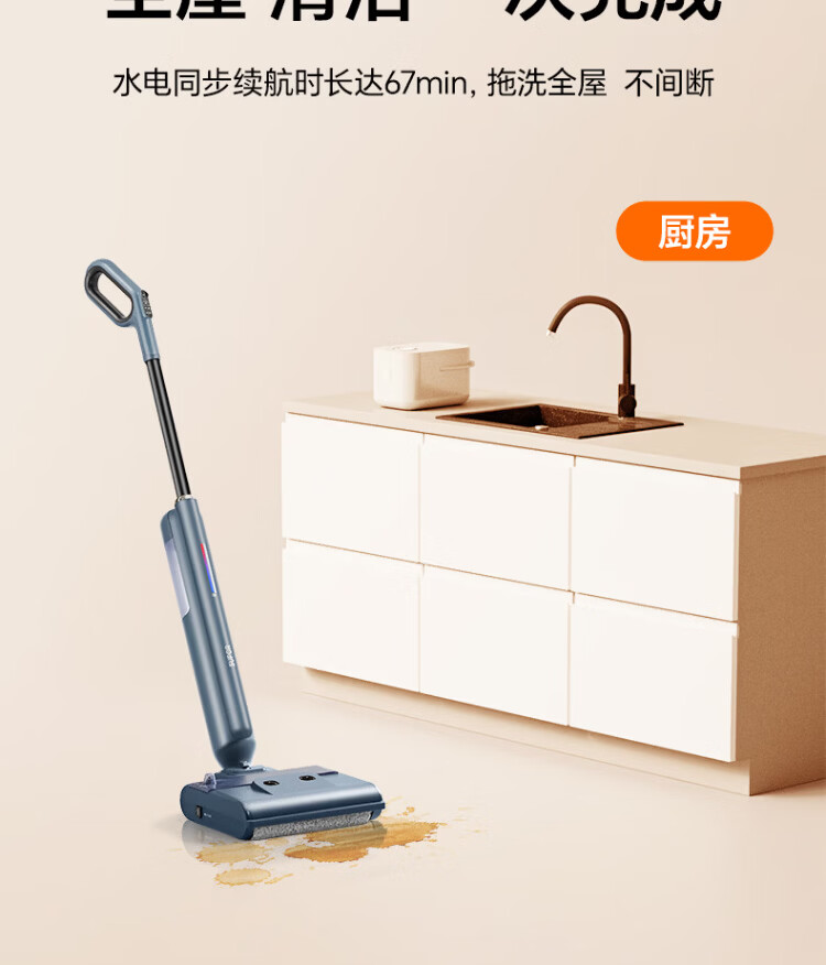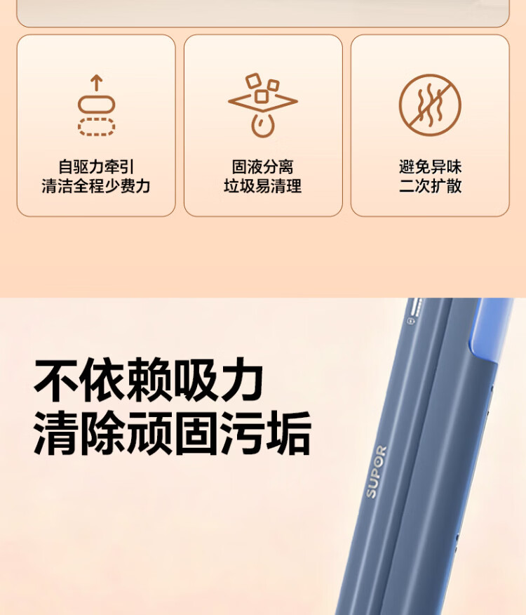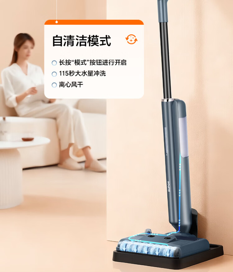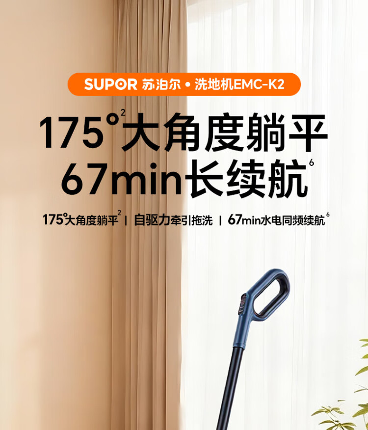 Supor floor washing machine, washing and mopping all-in-one mopping machine, household automatic cleaning, solid-liquid separation, no odor, light sound, lightweight self-traction electric mop EMC-K2 o water stains o tangled hair wireless floor mop