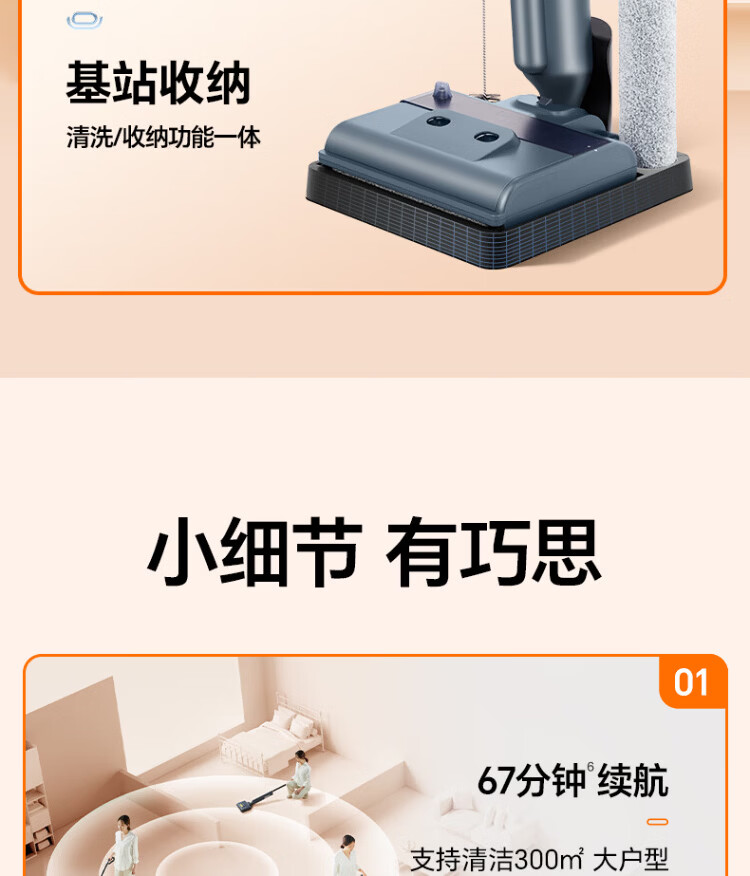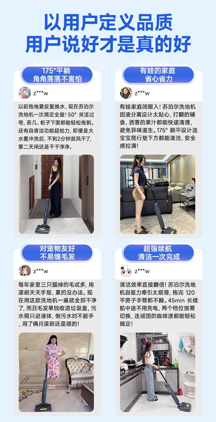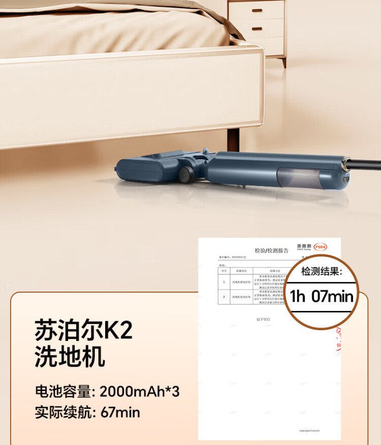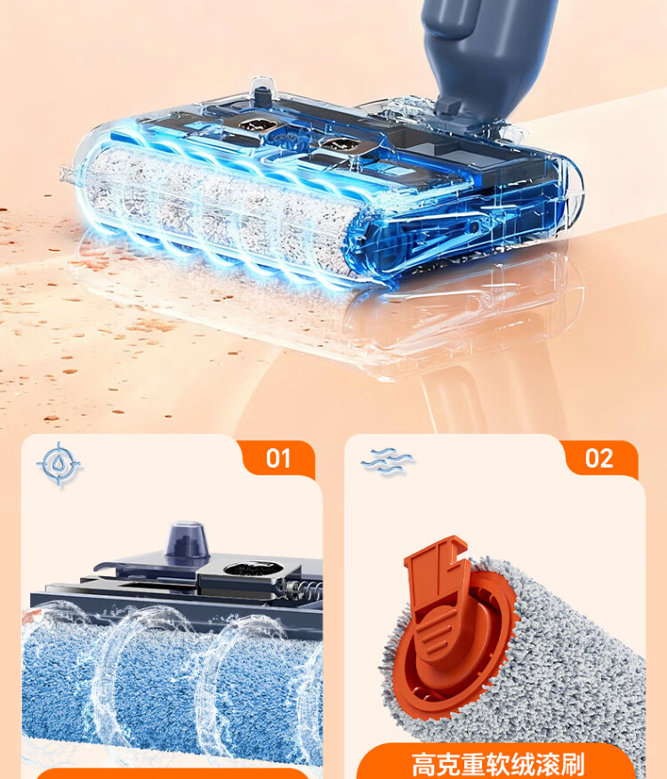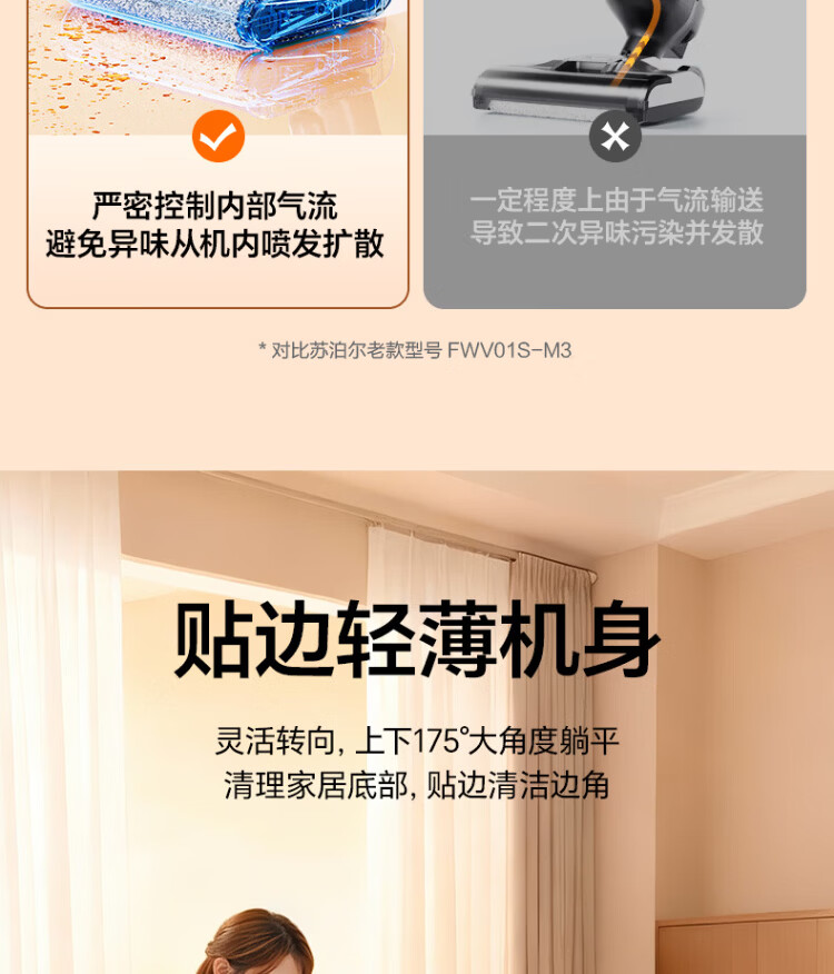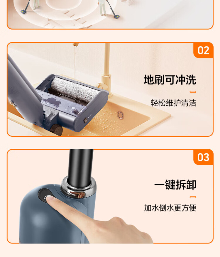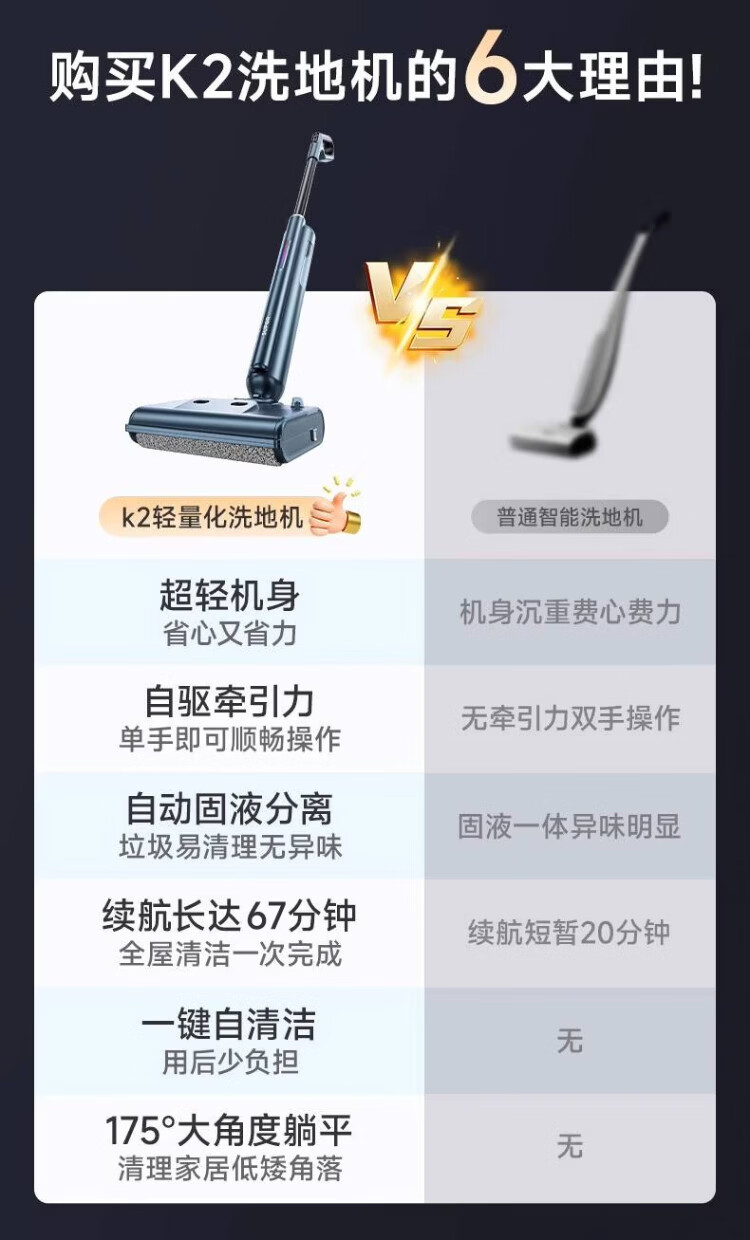 Supor floor washing machine, washing and mopping all-in-one mopping machine, household automatic cleaning, solid-liquid separation, no odor, light sound, lightweight self-traction electric mop EMC-K2 o water stains o tangled hair wireless floor mop