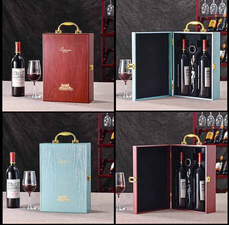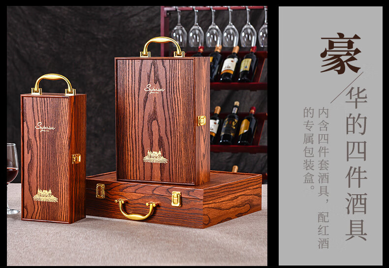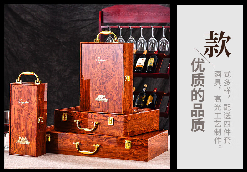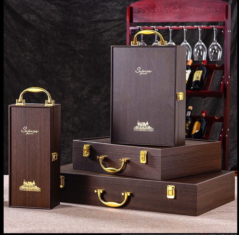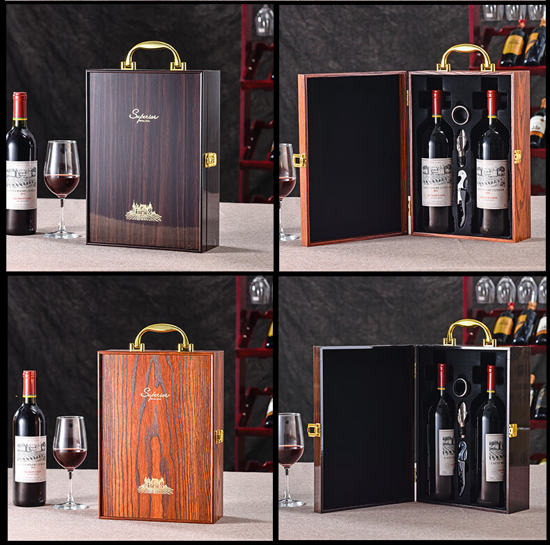 Yaowanxi red wine packaging box gift box wooden box piano paint gift box box double wine wine accessories brown
