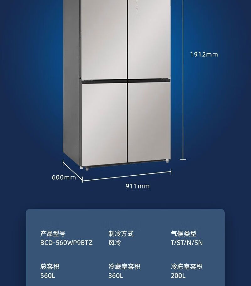 Meiling refrigerator BCD-560WP9BTZ embedded four-door cross door frequency conversion automatic ice making large capacity 560WP9BTZ glazed seal