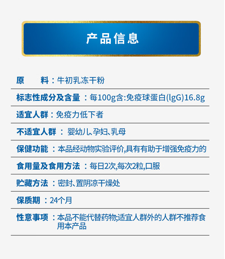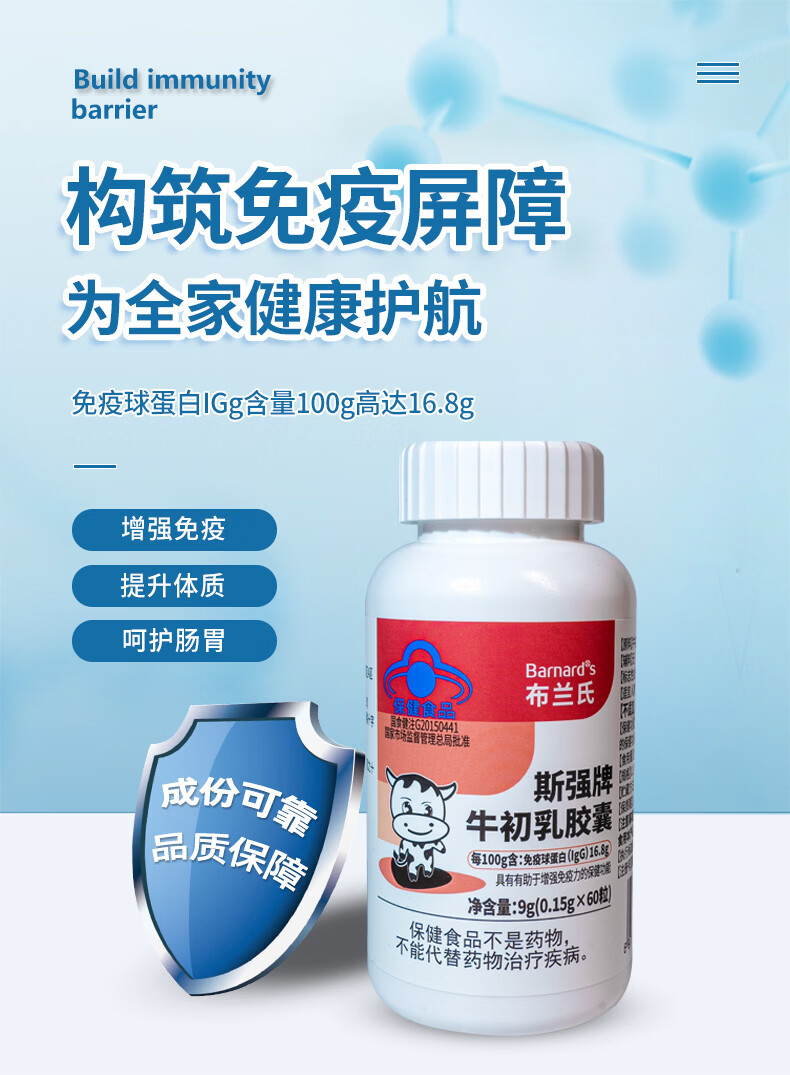 Brand's bovine colostrum capsule immune globulin improves immunity for children, resistance for men, women, adults and the elderly, enhances immunity 60 capsules * 1 bottle